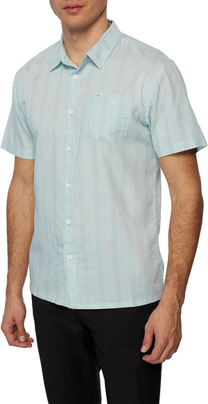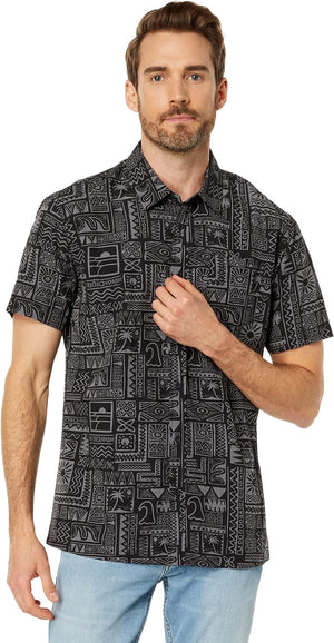 This is a classically styled button-up shirt that's great for any casual occasion. It has an allover print design, straight bottom hem and fits relaxed in the body and sleeves.