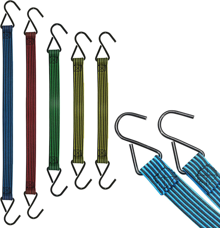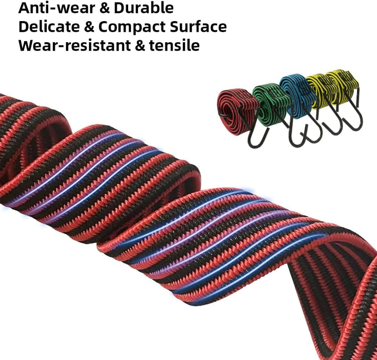 OneNine 5PCS Flat Bungee Cord Set, (Widen and Thicken) Elastic Straps with Hooks, Heavy-Duty Cord for Camping, Tarps, Bike Rack, Tent, Truck, etc