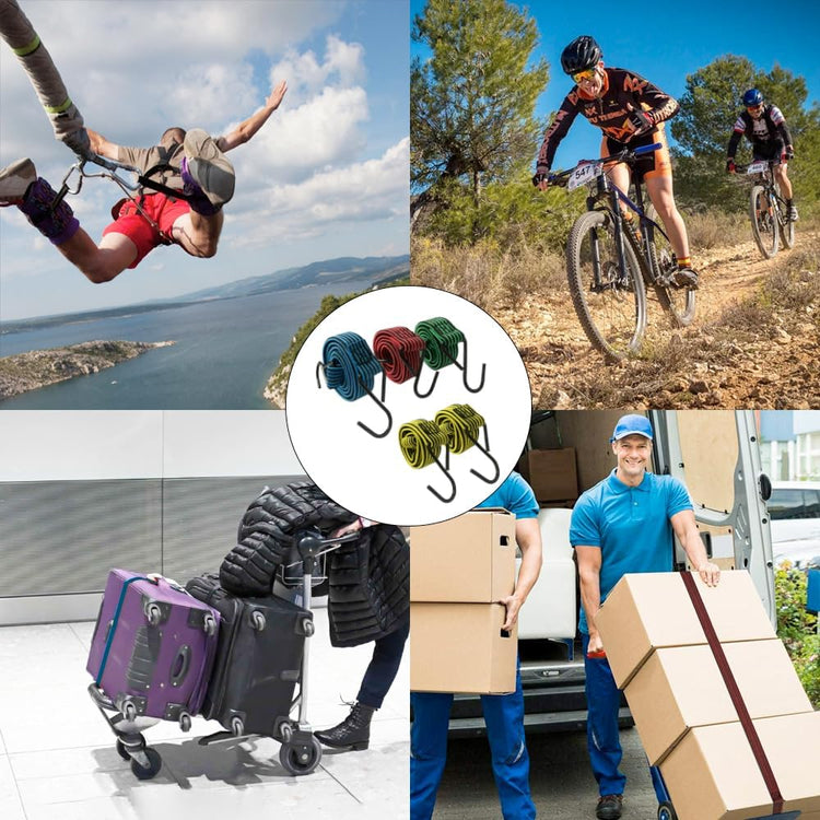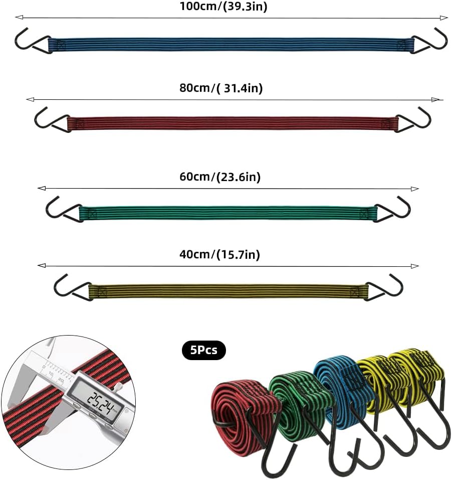 - Colored bungee cord set: you will receive 5 flat elastic cords with hooks (1 piece 39.3 in/100cm, 1 piece 31.4 in/80 cm, 1 piece 23.6in/60cm, 2 pieces 15.7in/40cm); you can Share these elastic bands with others.
