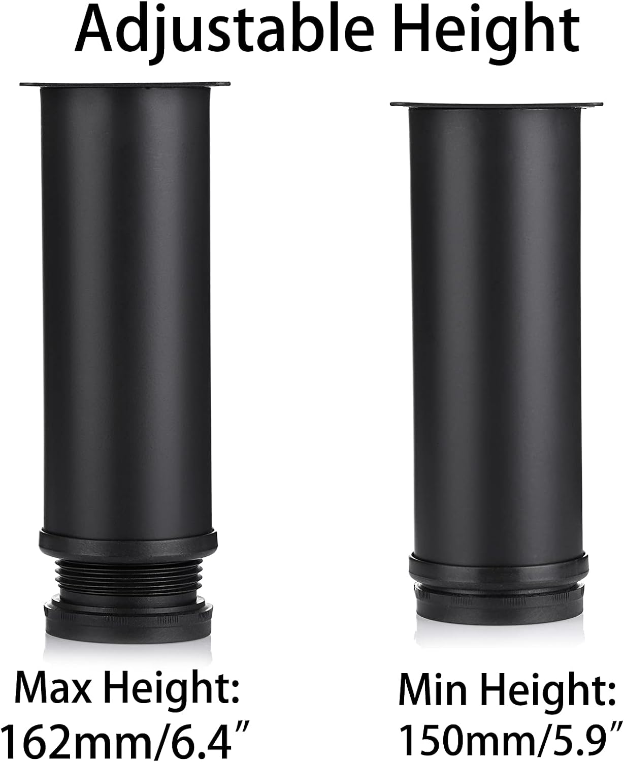 - Superior Material: Made of solid stainless steel mounting plate + aluminium alloy pipe + ABS base with surface black plated, this set of metal cabinet legs is durable and sturdy, has strong dust & rust resistance, heavy duty and strong enough to support your furniture.