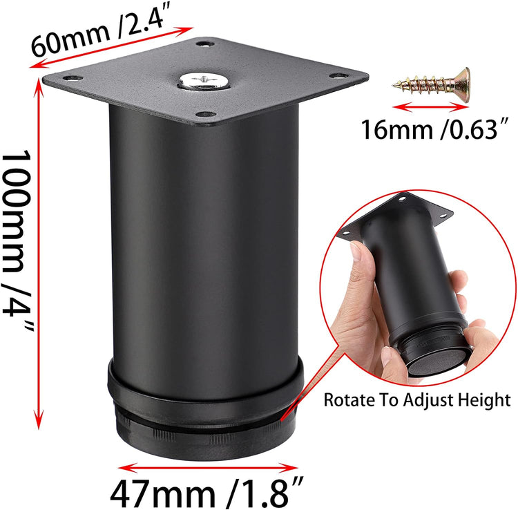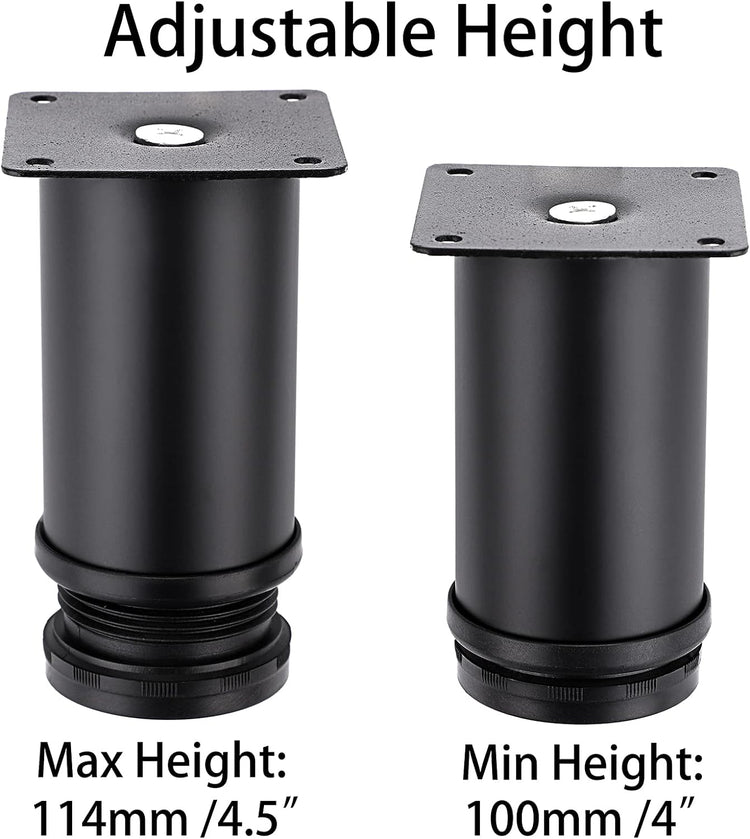 - Practical Design: Round furniture feet with top square installation design will make it assemble on furniture firmly, adjustable ABS base allows this table leg to be adjusted from 10cm / 4 inches to 11.4cm / 4.5 inches, and make it stand stably and protect your floor from scratch or damage.