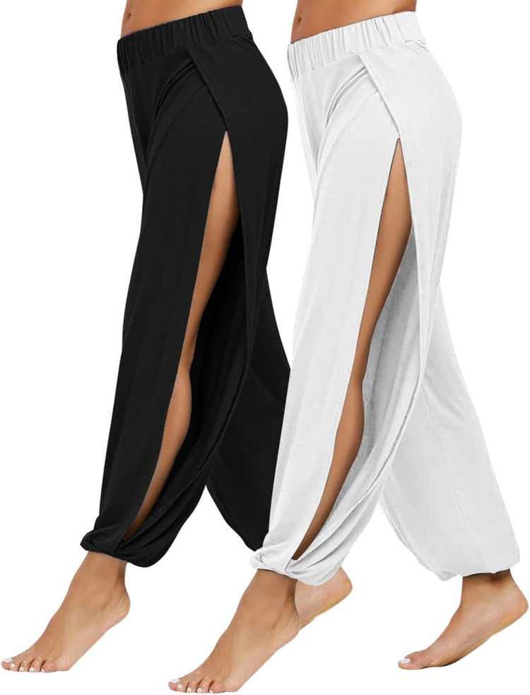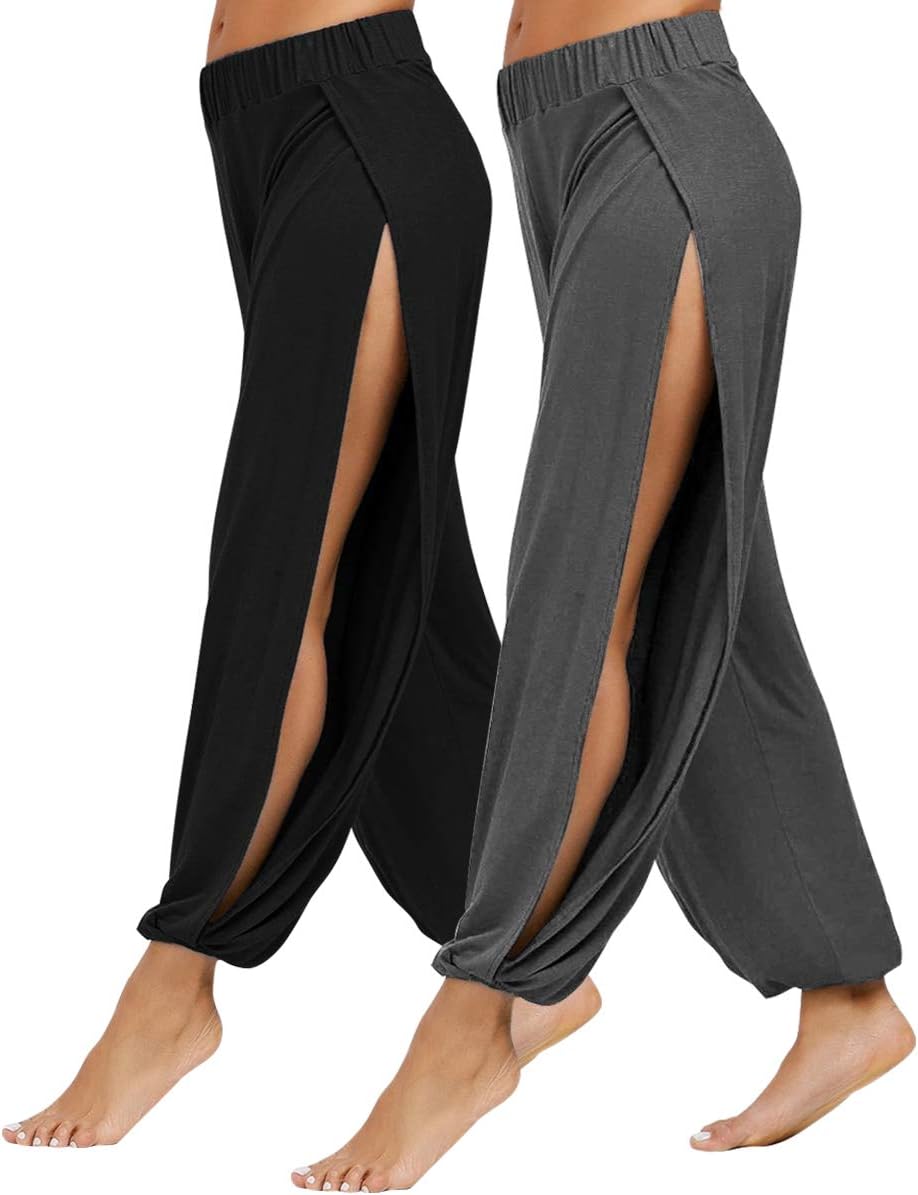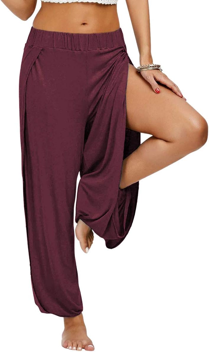 ⛳PACBREEZE Women's Yoga Harem Pants Side Slit Joggers Workout Sweatpants.