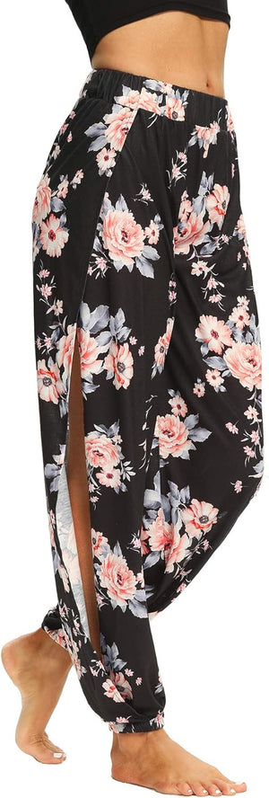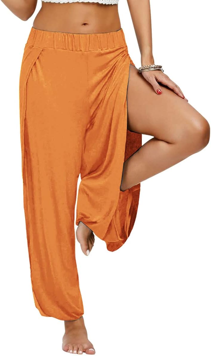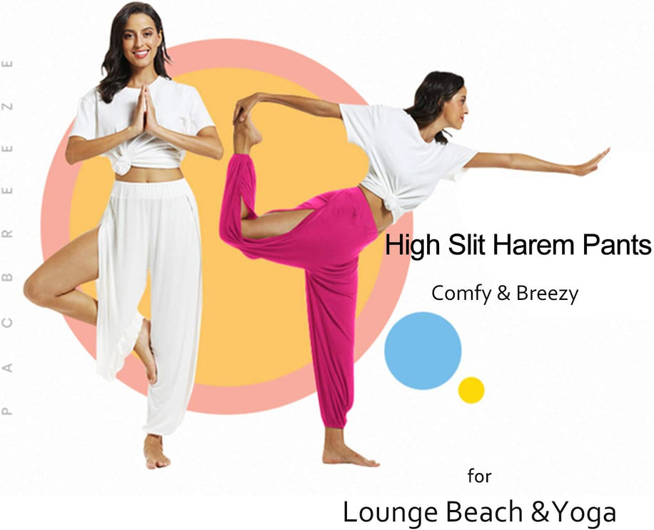 PACBREEZE Women's Yoga Harem Pants Side Slit Joggers Active Workout Sweatpants Beach Cover-up Pants