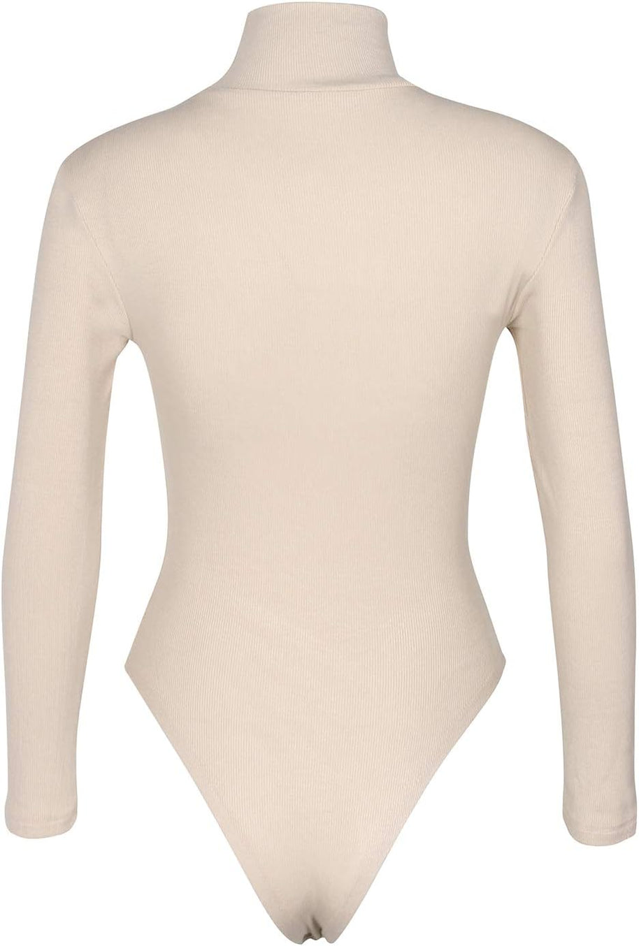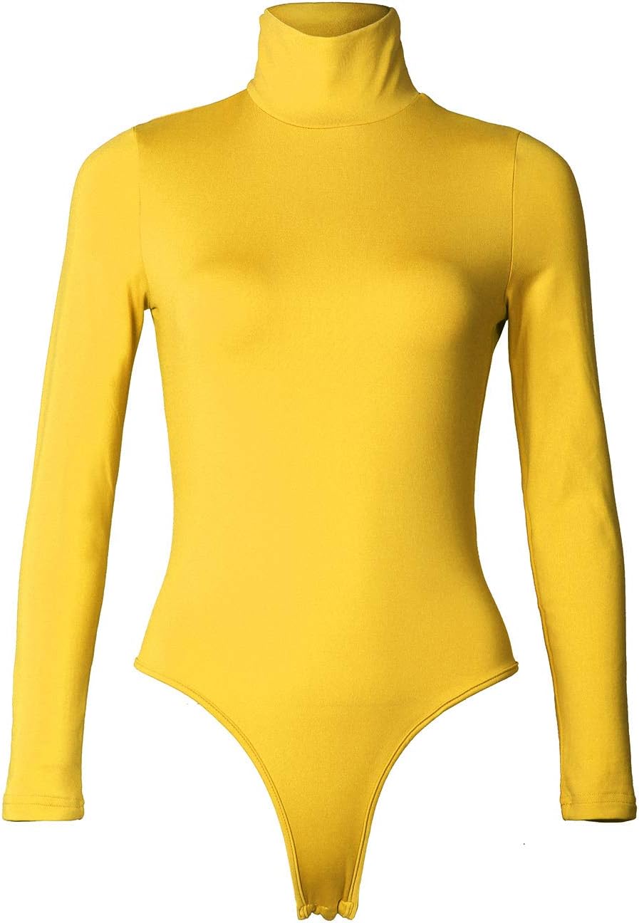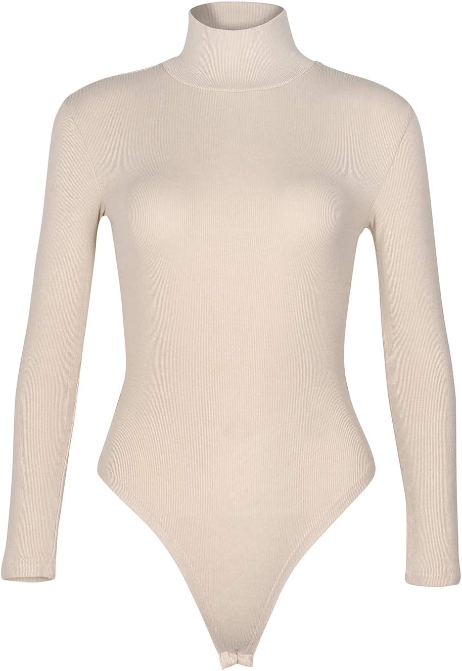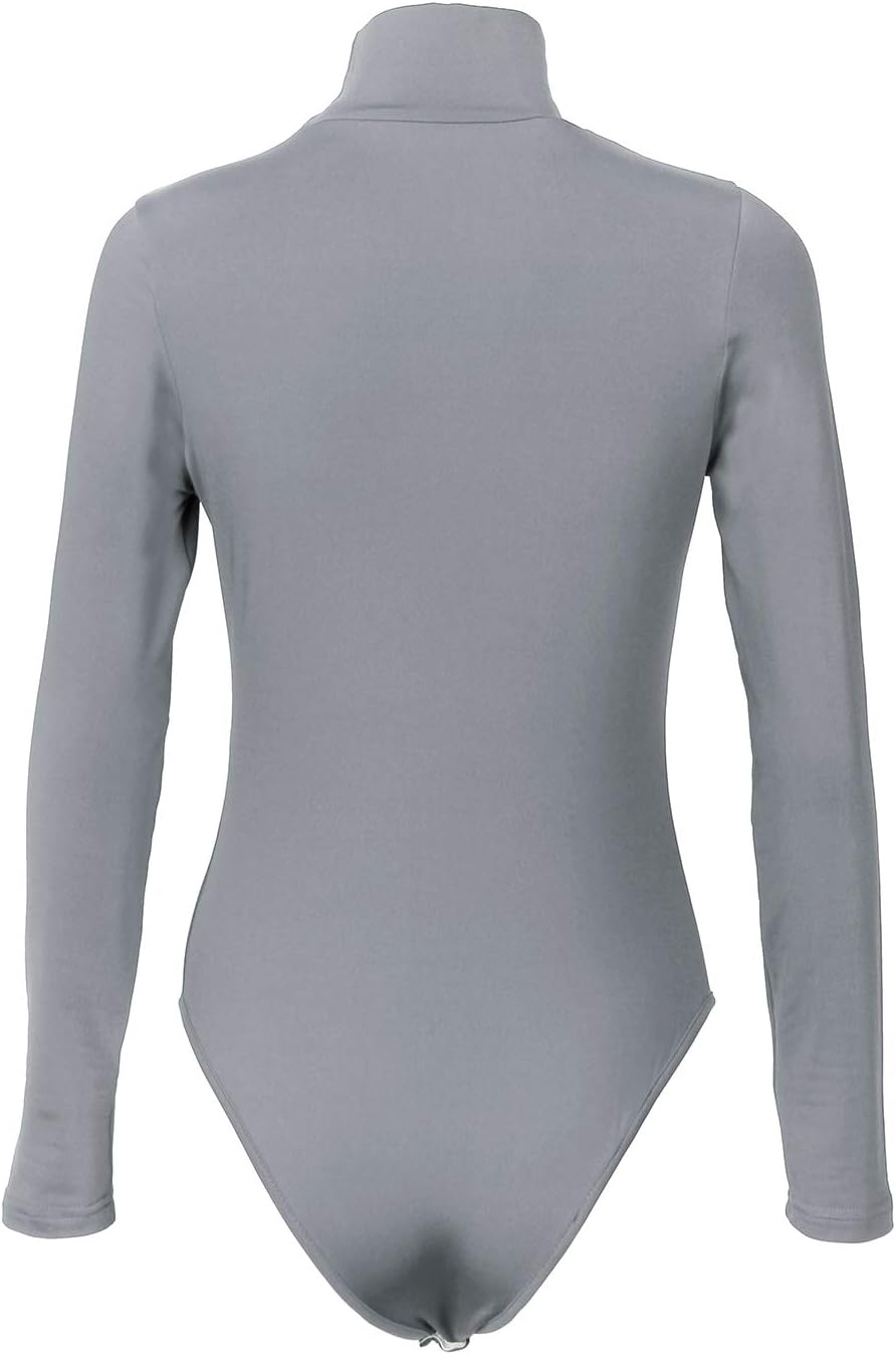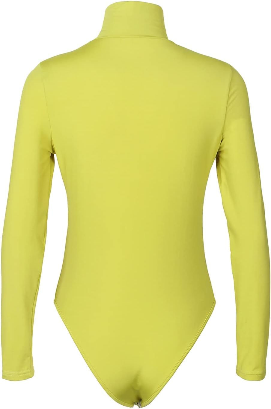PALINDA Women's Long Sleeve Striped Basic Solid Round Neck Bodysuit Stretchy Leotards