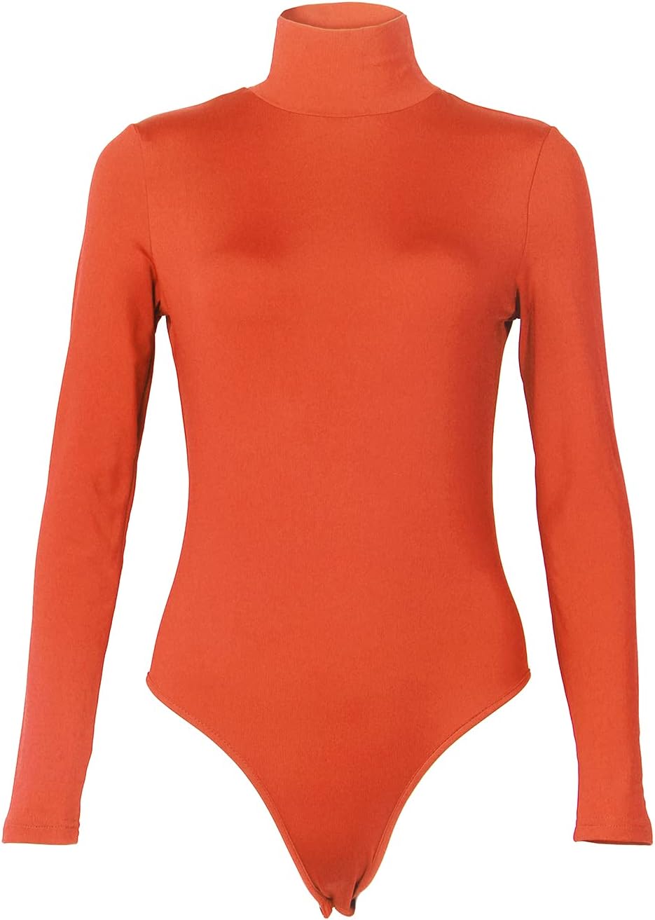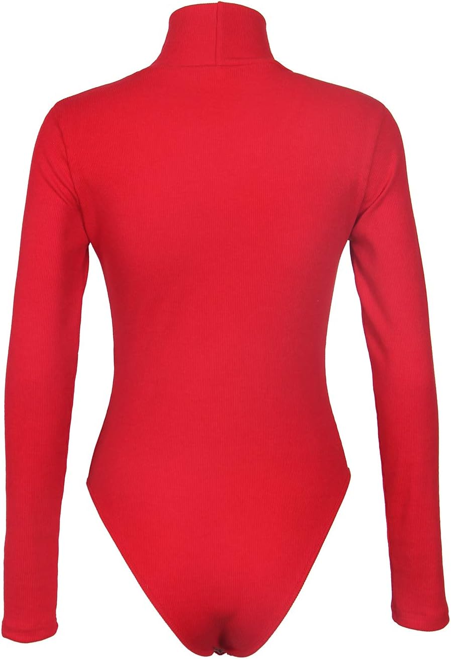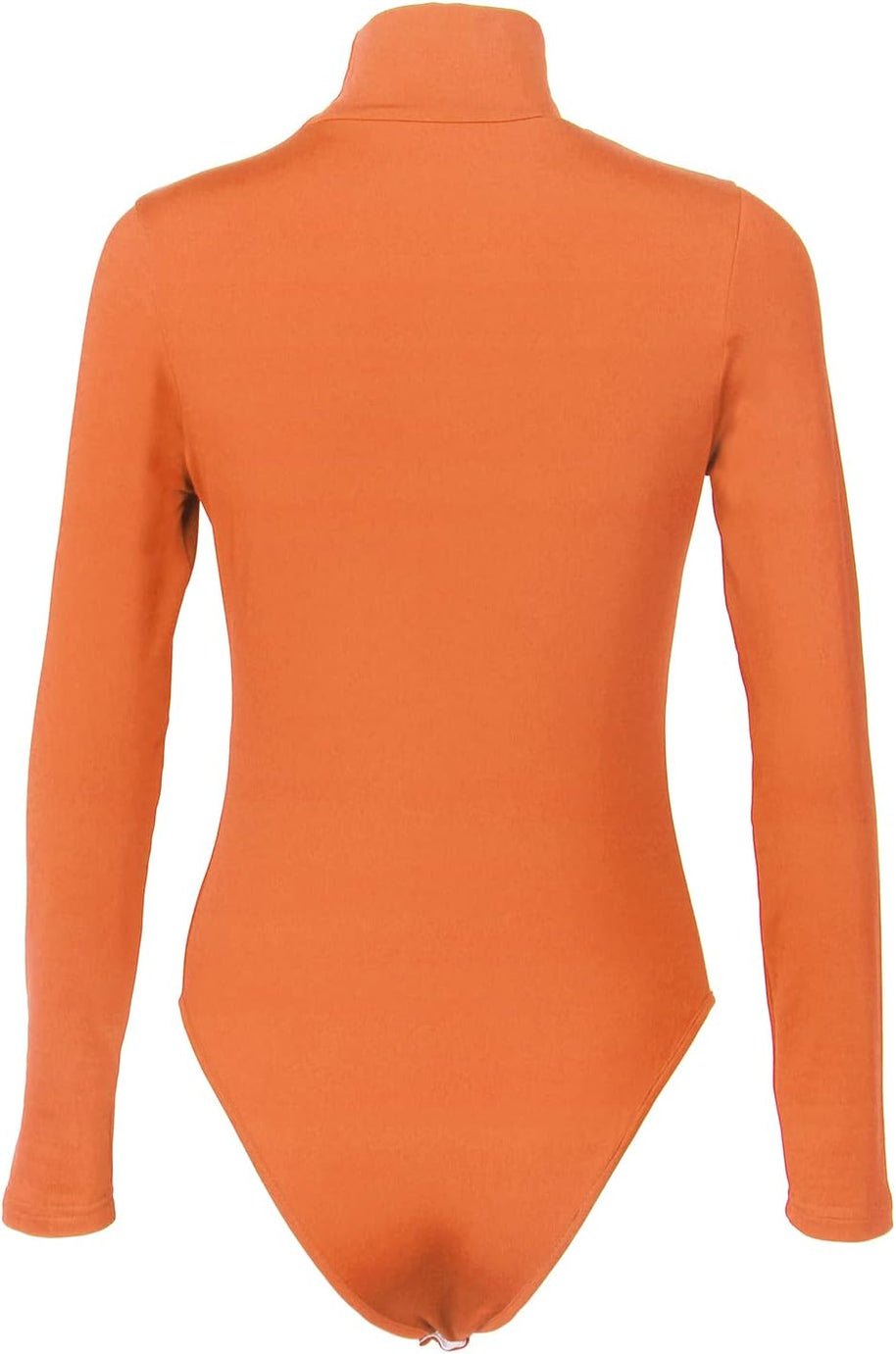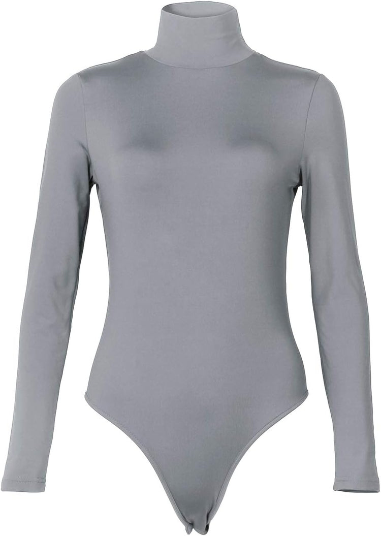 PALINDA Women's Long Sleeve Striped Basic Solid Round Neck Bodysuit Stretchy Leotards