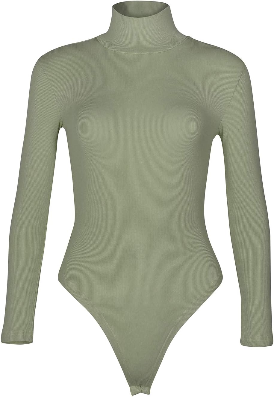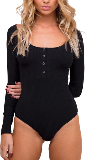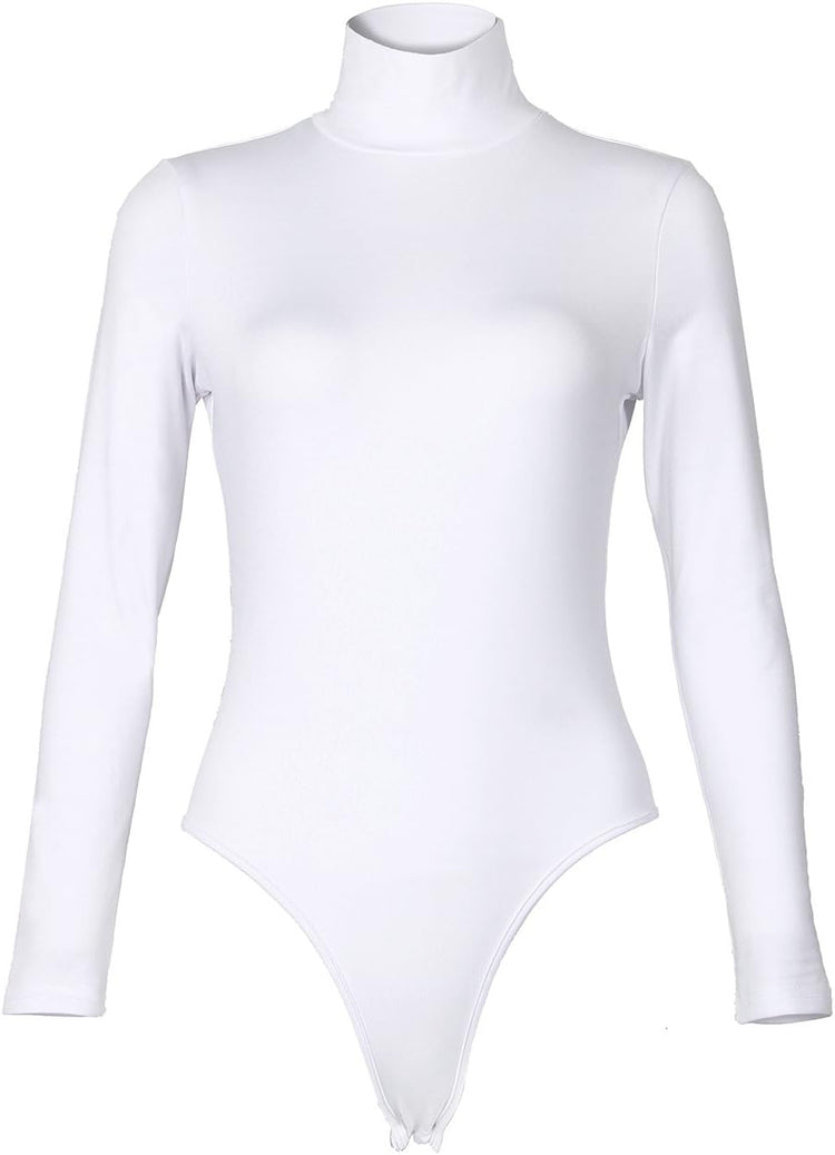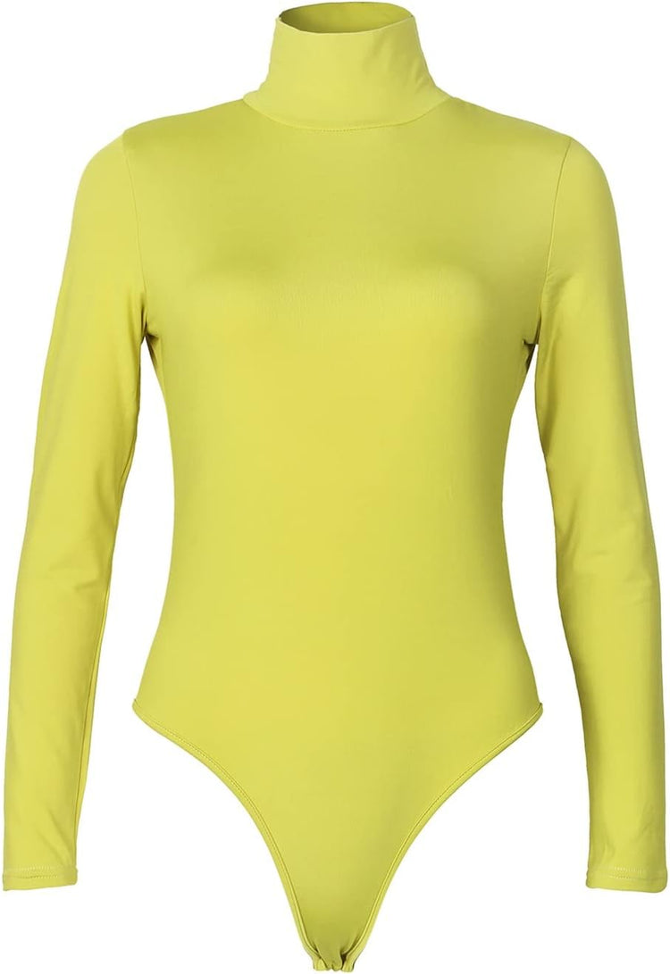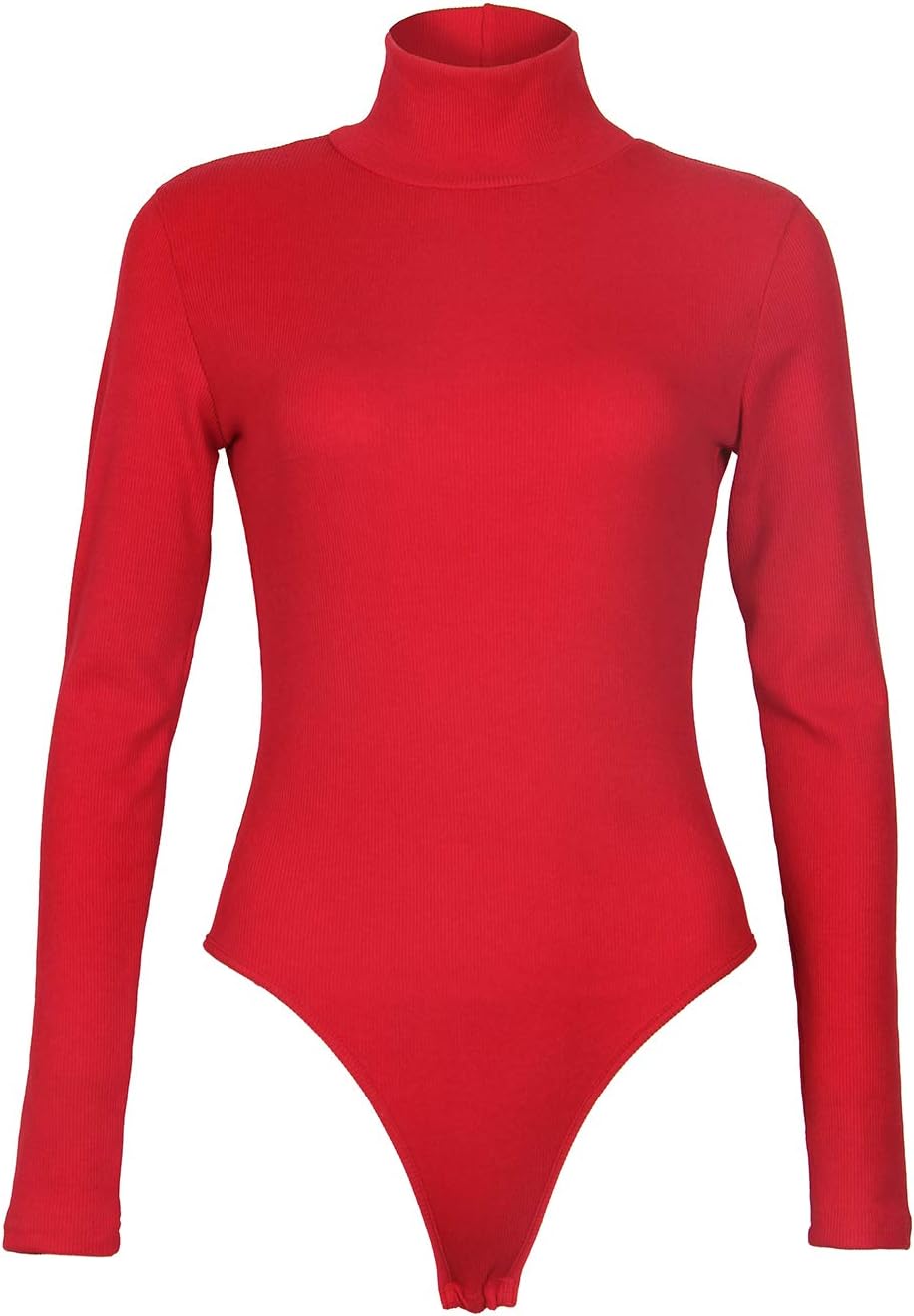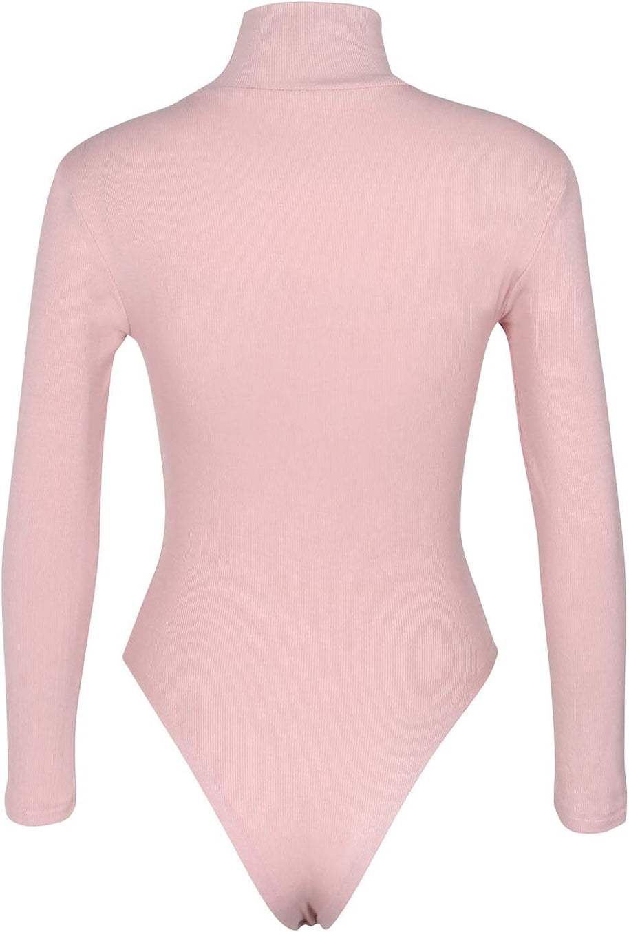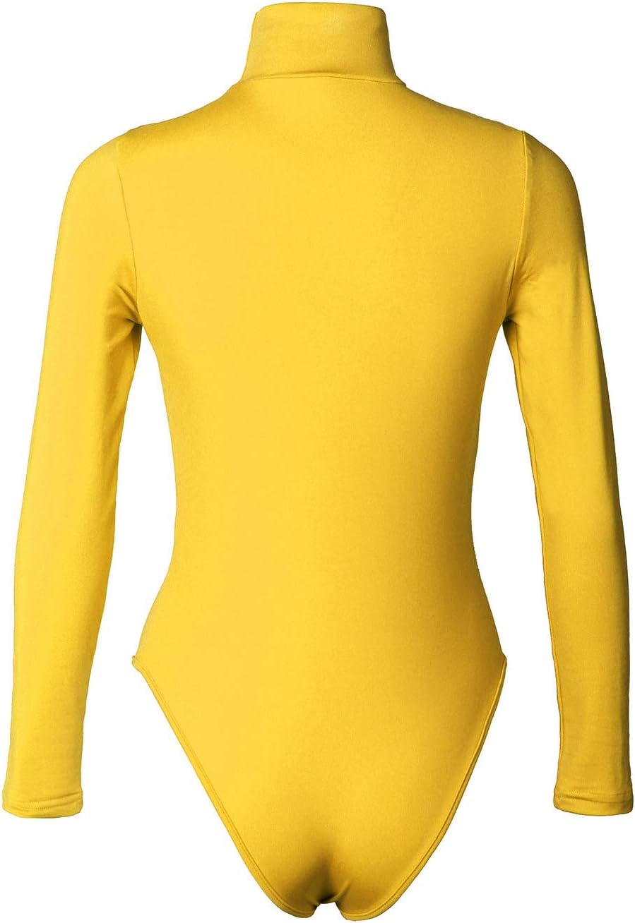 PALINDA Women's Long Sleeve Striped Basic Solid Round Neck Bodysuit Stretchy Leotards