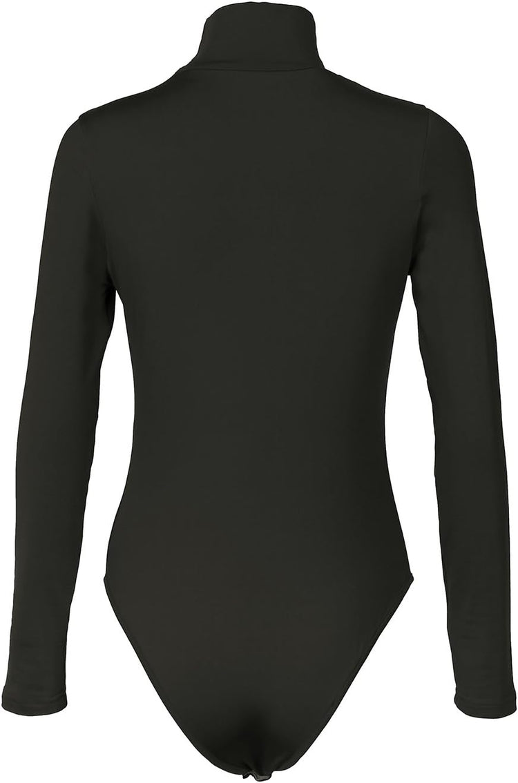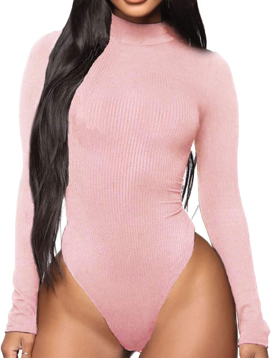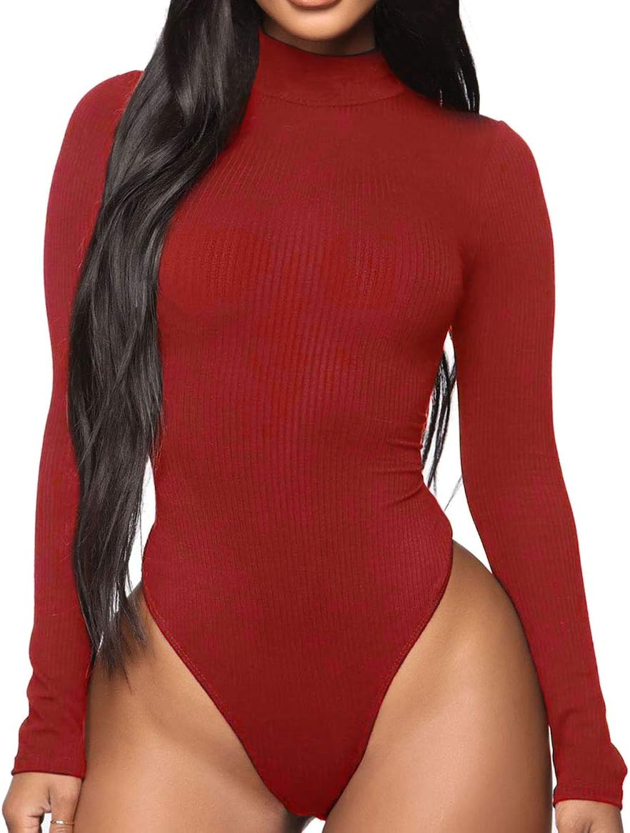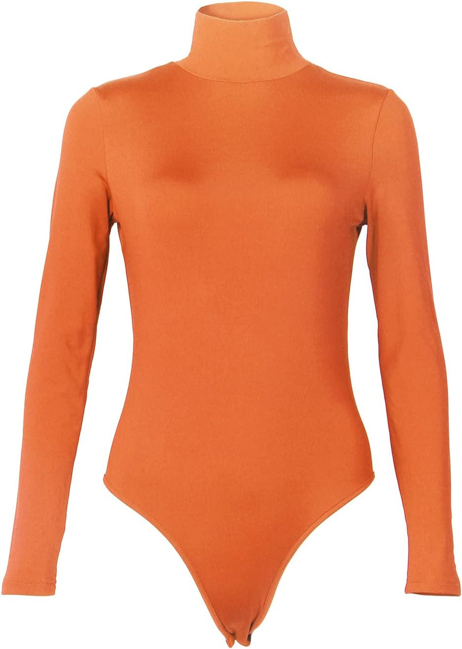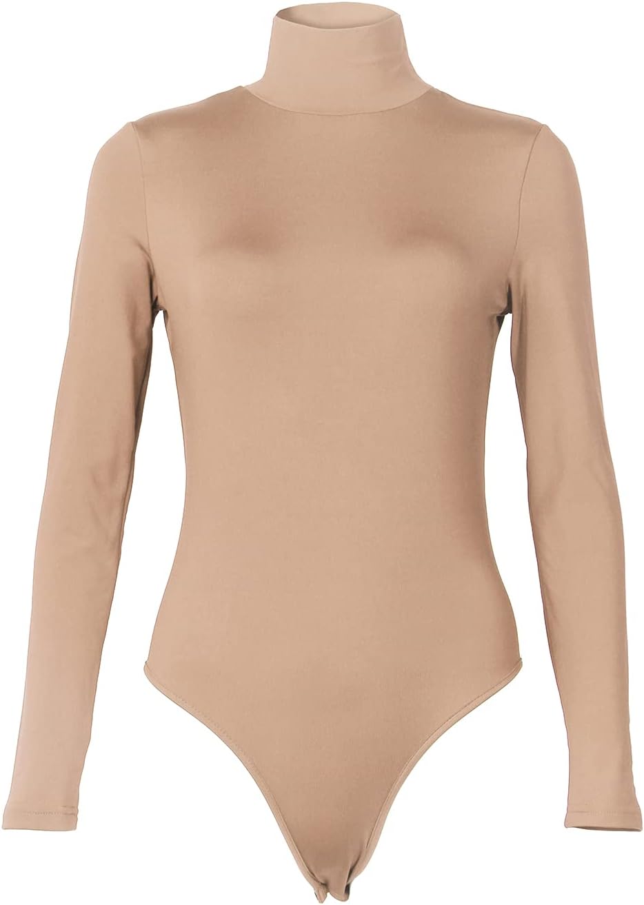 PALINDA Women's Long Sleeve Striped Basic Solid Round Neck Bodysuit Stretchy Leotards