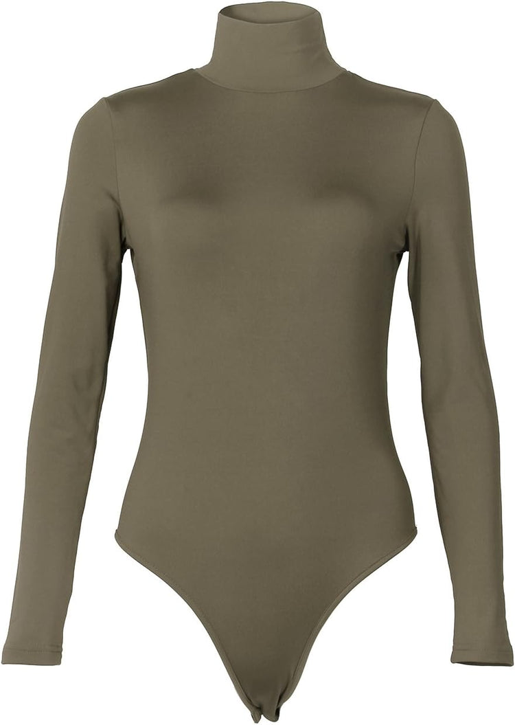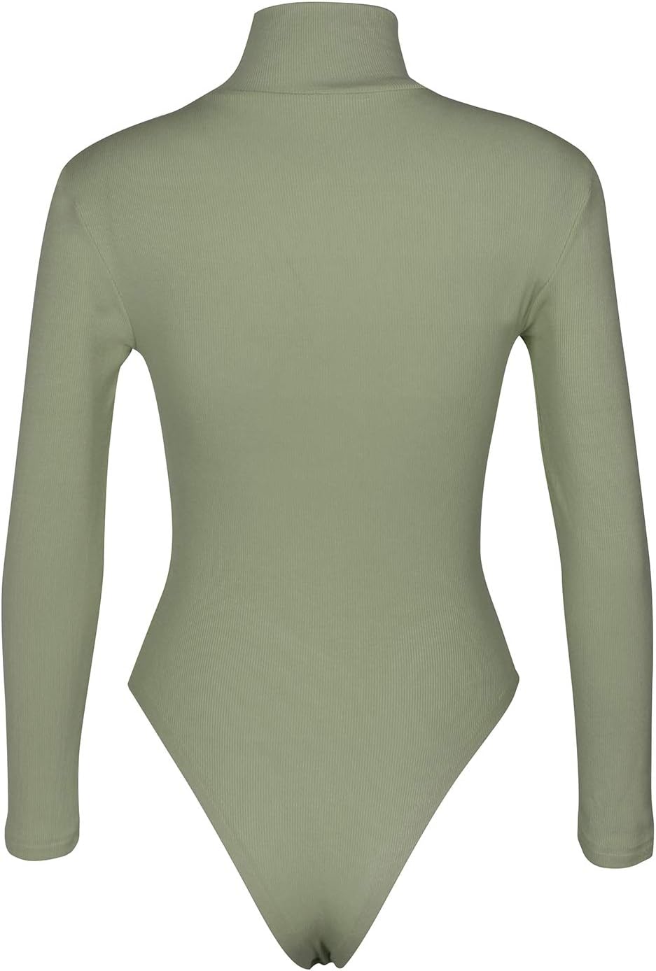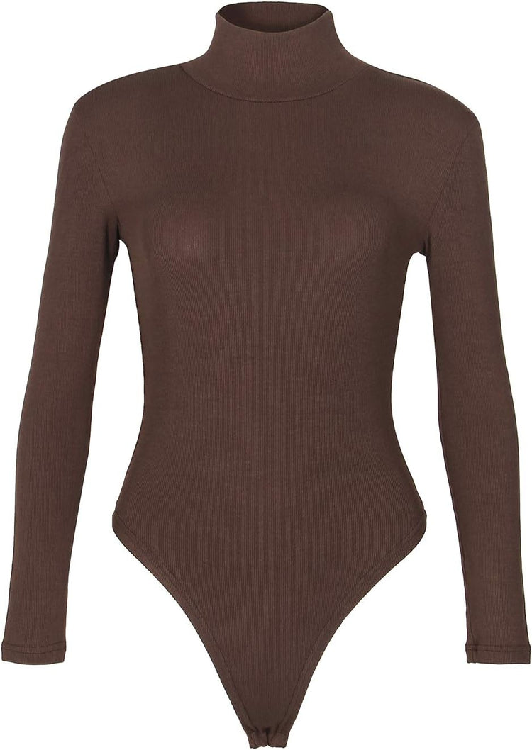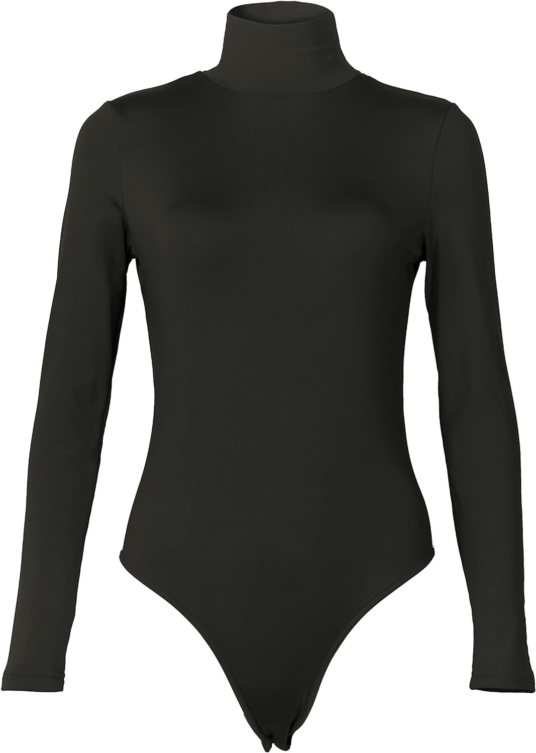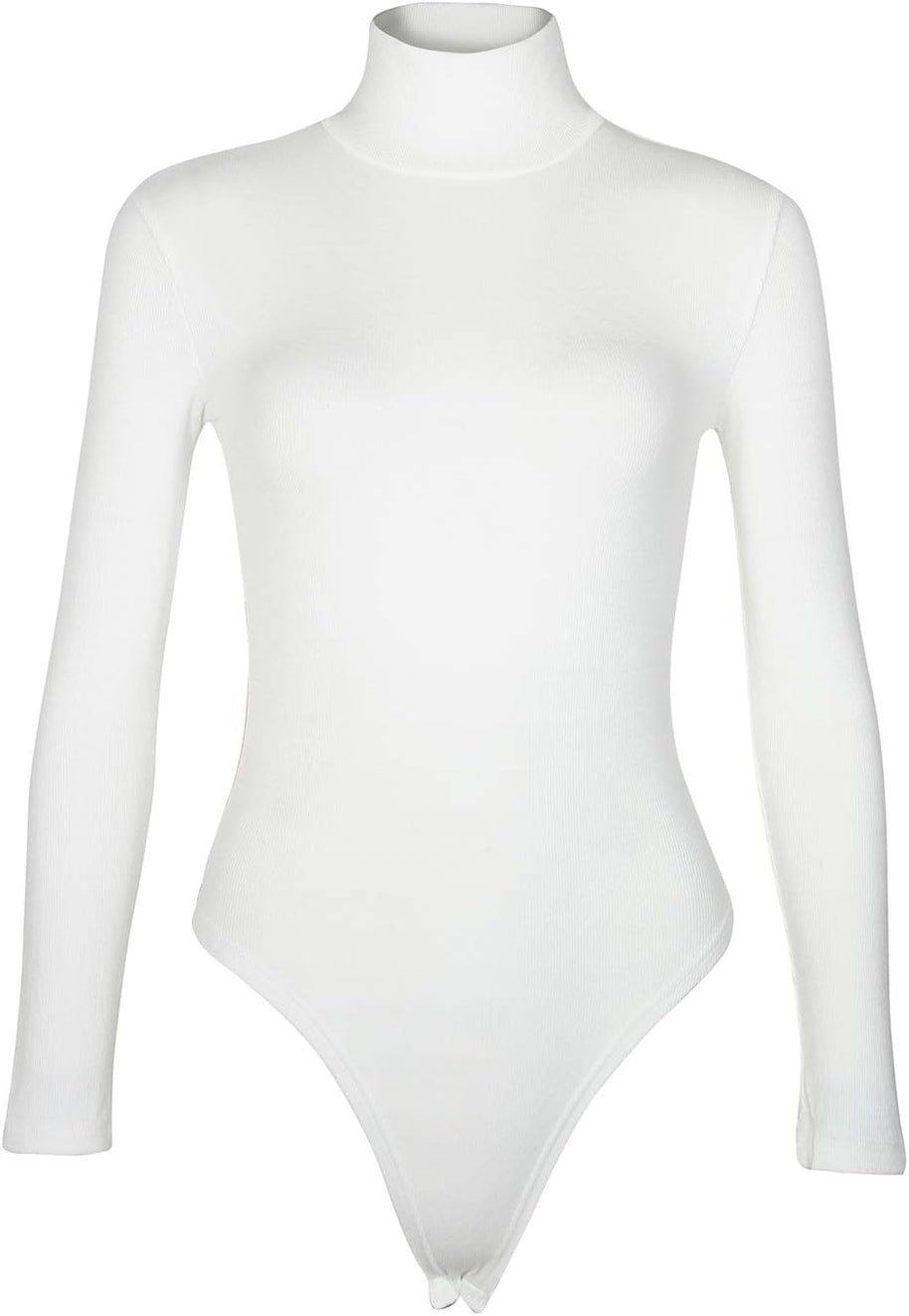 PALINDA Women's Long Sleeve Striped Basic Solid Round Neck Bodysuit Stretchy Leotards