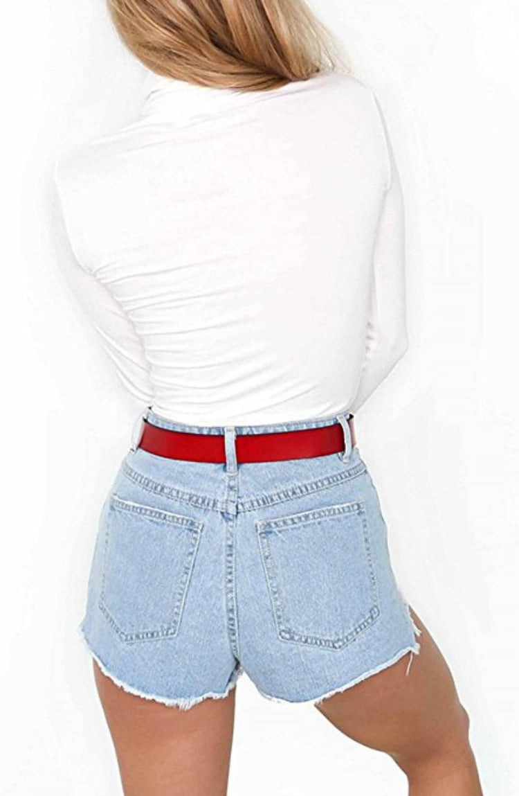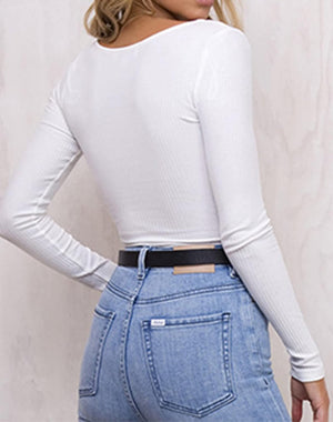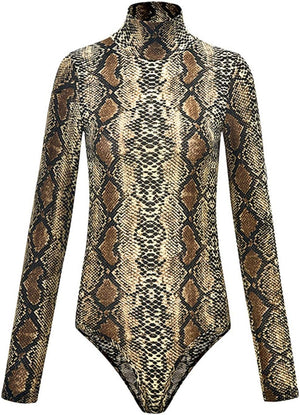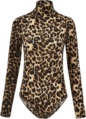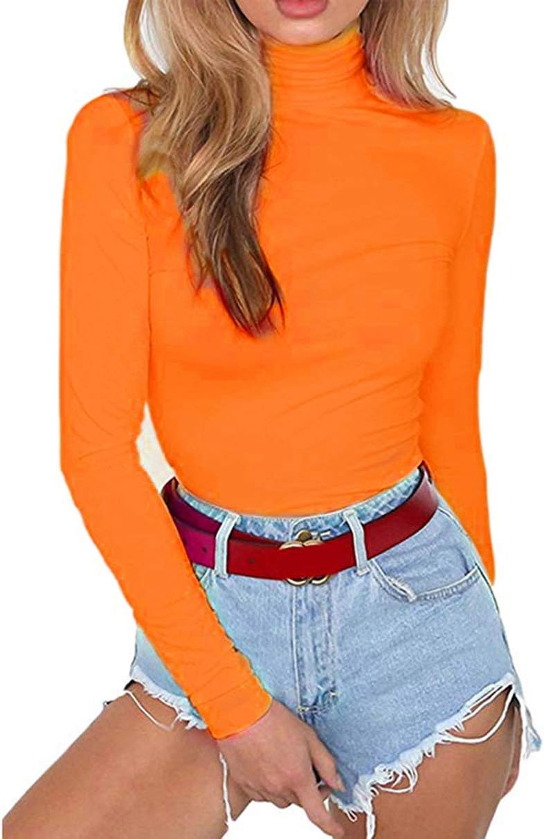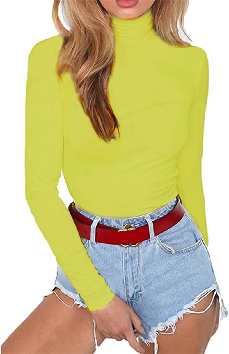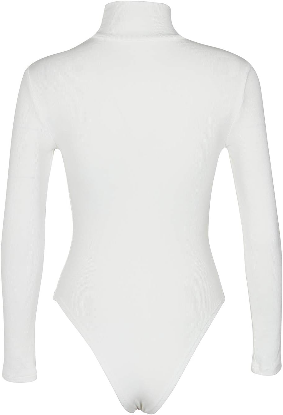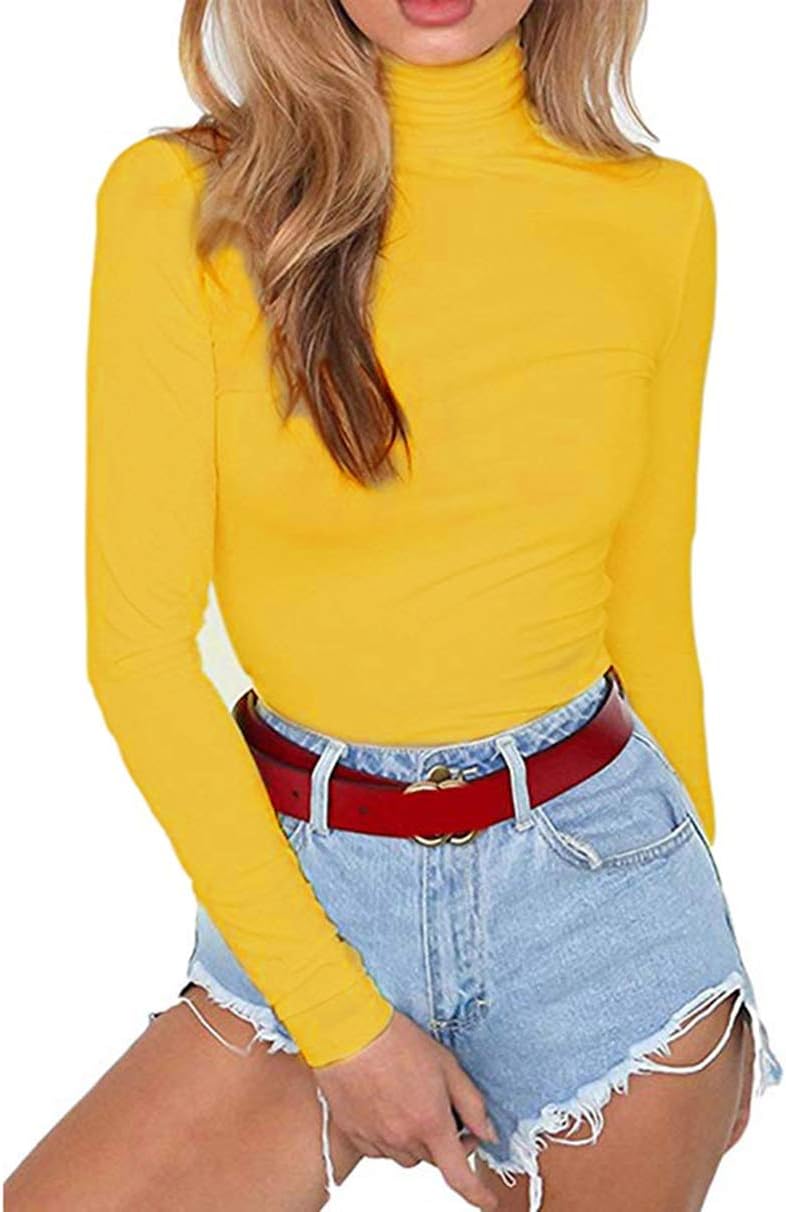PALINDA Women's Long Sleeve Striped Basic Solid Round Neck Bodysuit Stretchy Leotards
