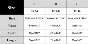 L : Bust- 87cm/34.3"---- Sleeve-58cm/22.8"---- Waist 75cm/29.5"---- Length-75cm/29.5"