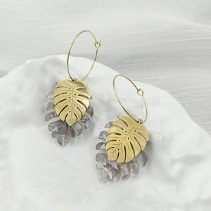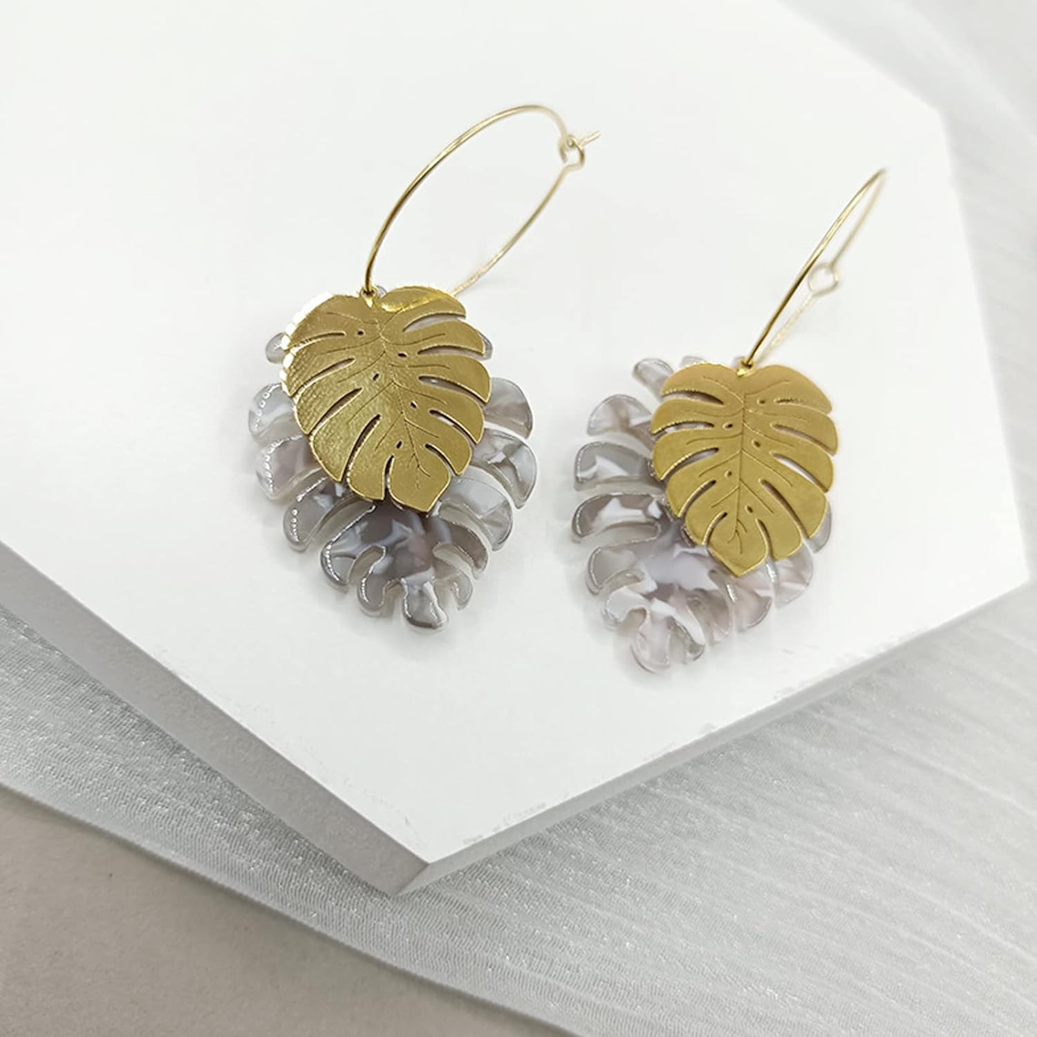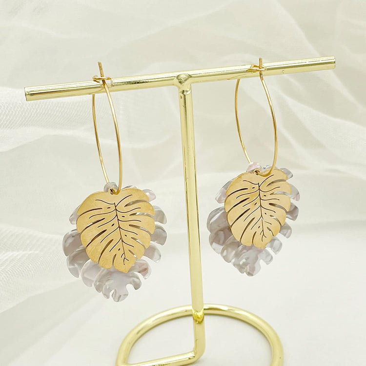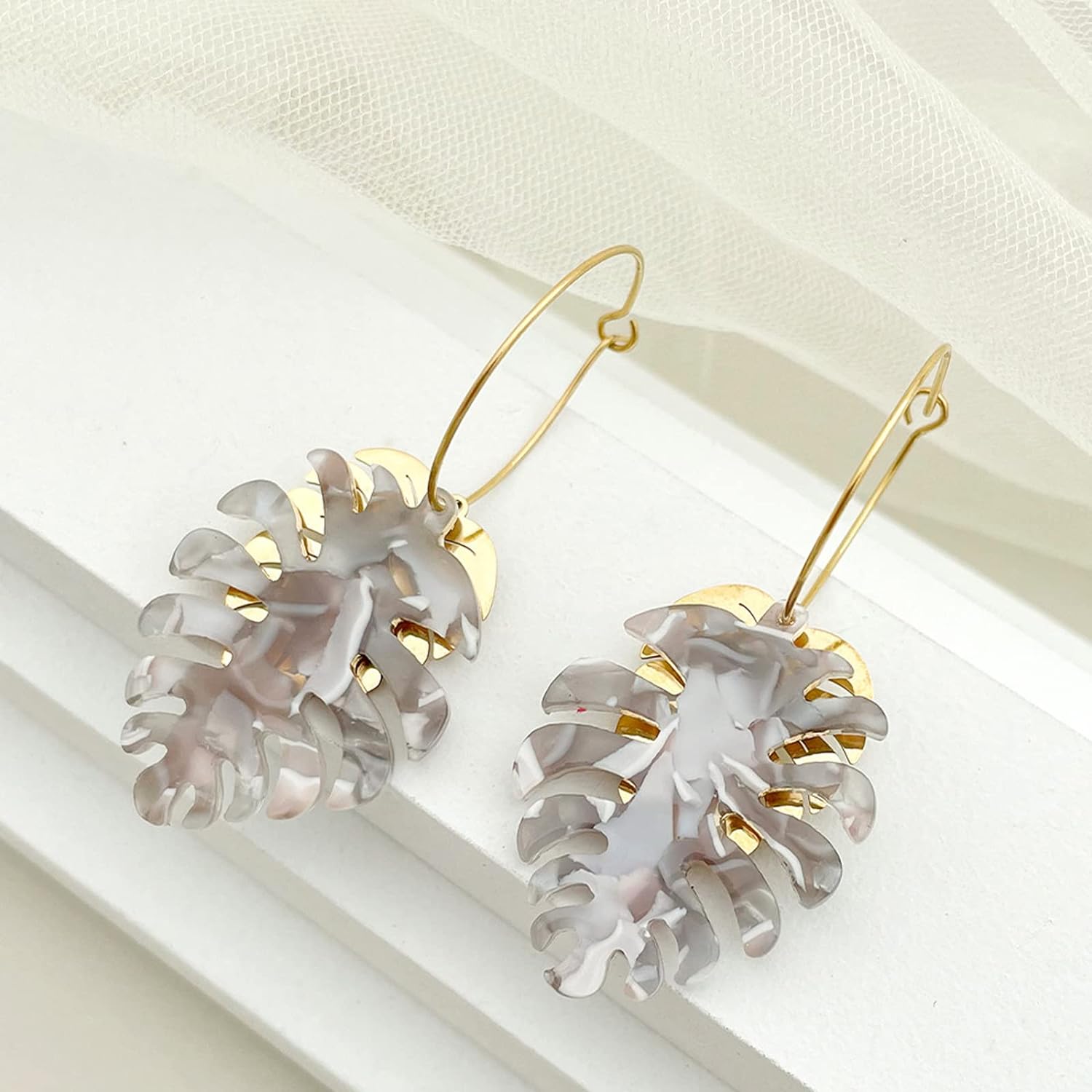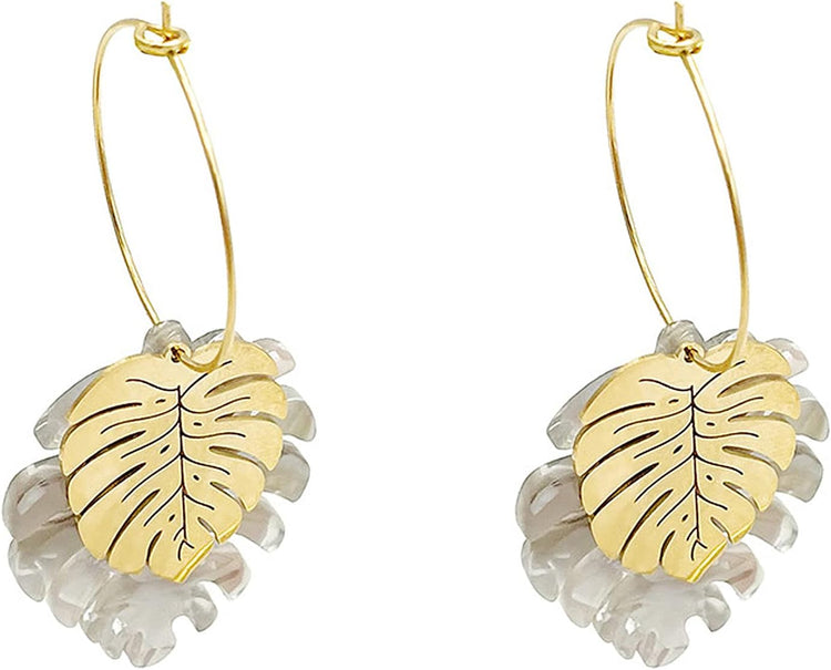 Palm Leaf Earrings for Women, Monstera Earrings for Women, Gold Palm Leaf Dangle Earrings Tropical Plant Earrings for Women, Stainless Steel Hoop Earrings Bohemian Summer Jewelry Gift for Women Girls