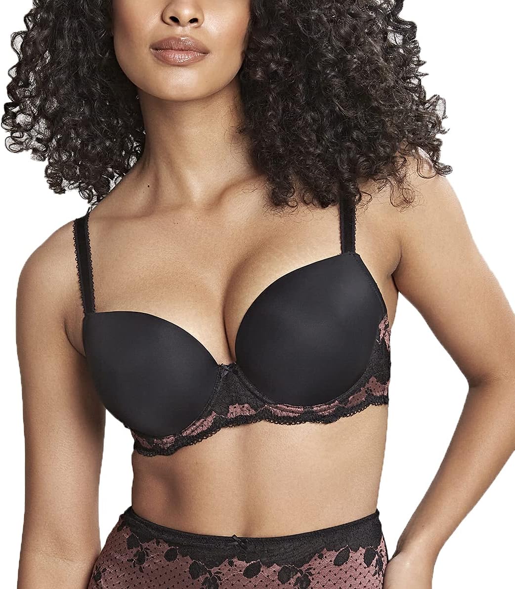 The Panache Clara Molded Sweetheart Underwire Bra (7251) features smooth molded cups that provide a seamless look under clothing. The striking two tone lace wings are lined with mesh and the scoop shape creates a smooth fit around your body. The back hook & eye closure and fully adjustable straps offer a custom fit and feel. This stunning style adds a touch of luxury to a versatile every day piece and pairs perfectly with the Panache Clara Matching Brief (7253), Panache Clara Matching High Waist Brief (7254) or Panache Clara Thong (7259), sold separately.