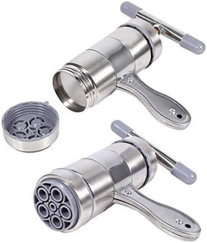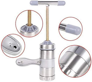 Pasta Noodle Maker, Portable Manual Operated Stainless Steel Pasta Maker Noodle Juicer Pressure Making Machine with 5 Molds