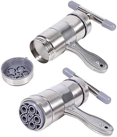 This item is made of high quality stainless steel material, anti-rust and corrosion-resistant, durable and sturdy to use. Coming with 5 mold heads, ideal for making your noodles in seconds.