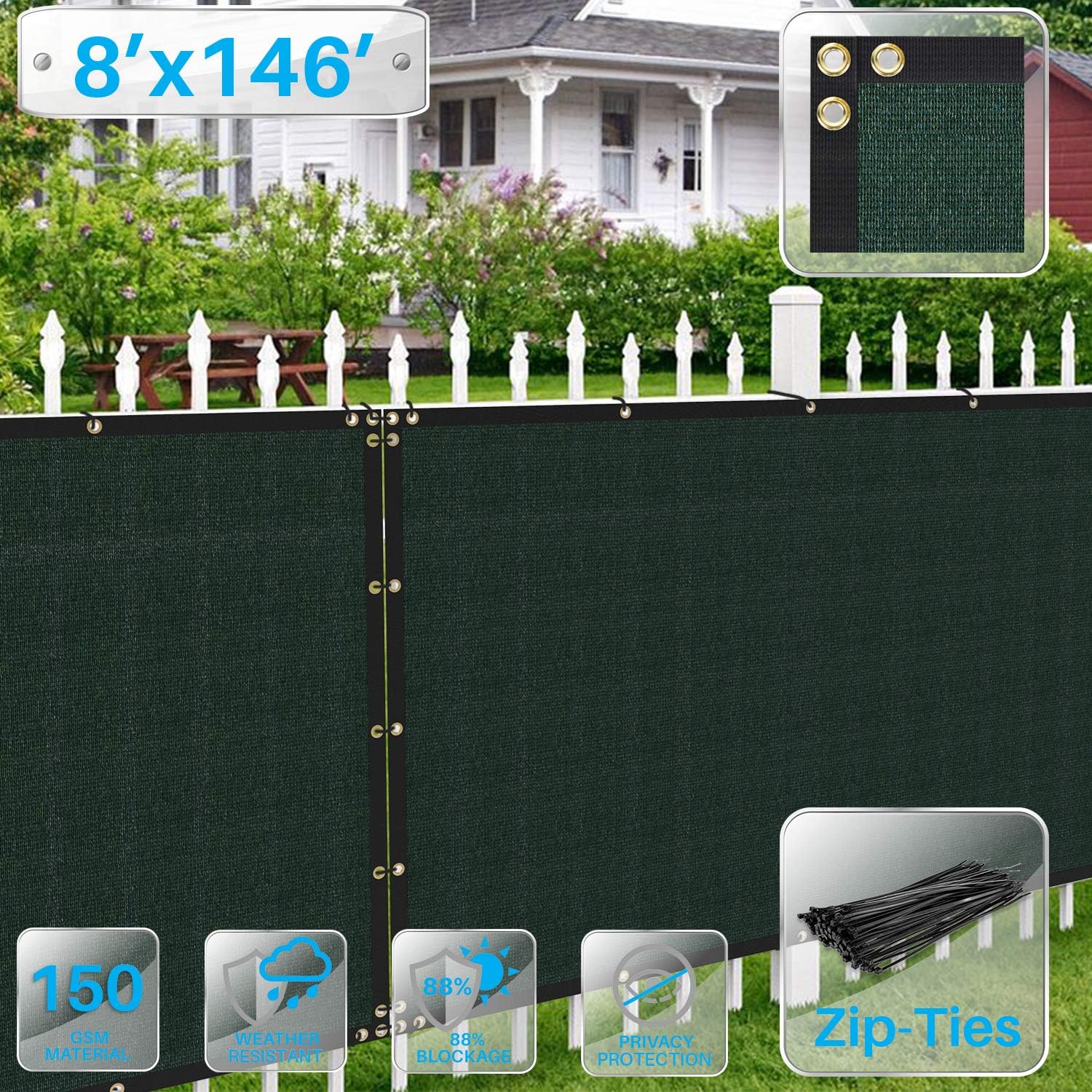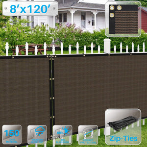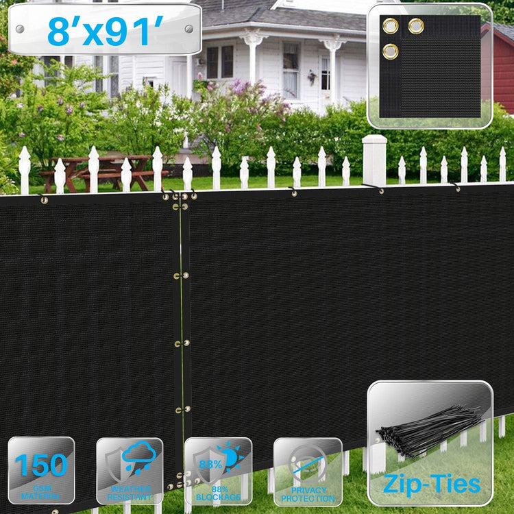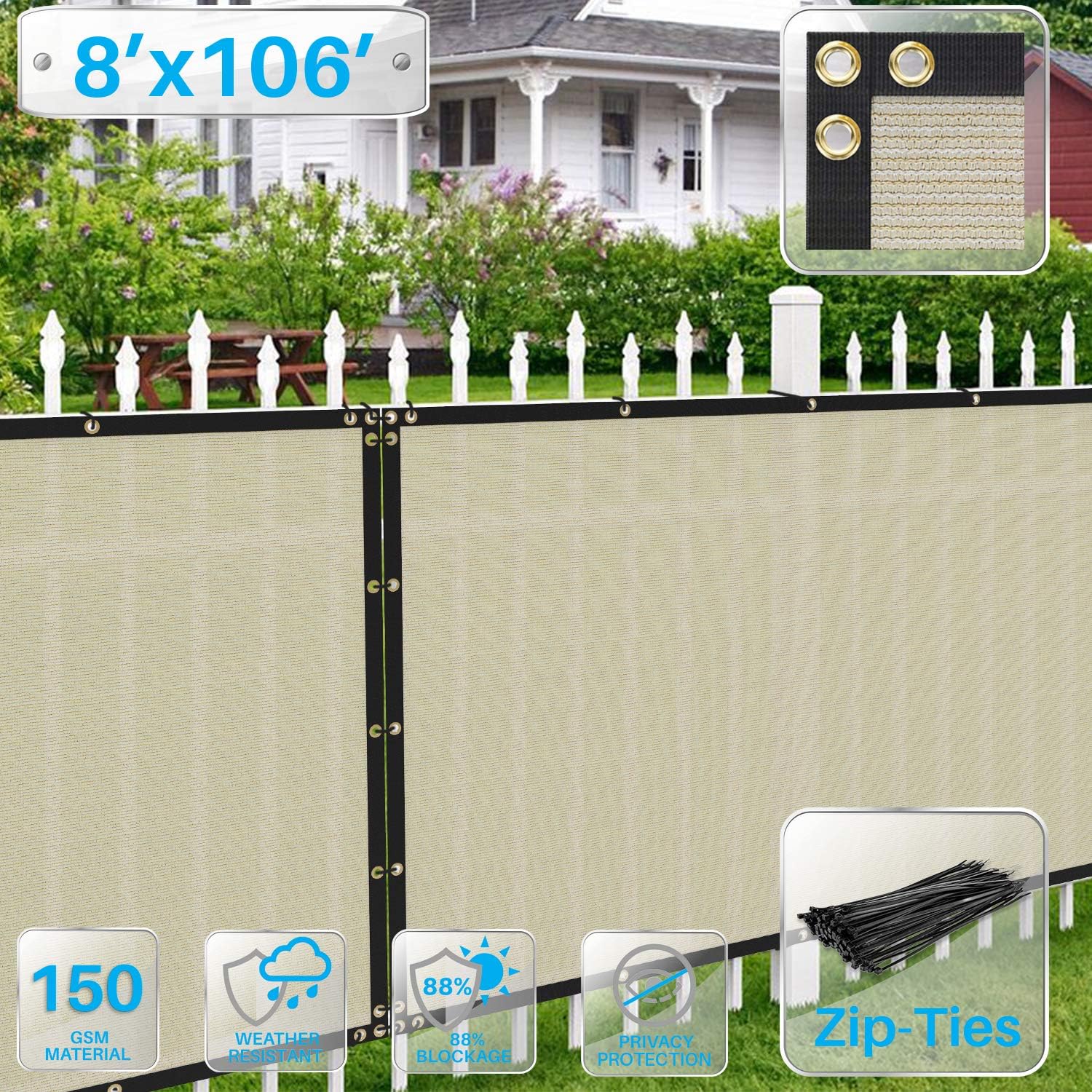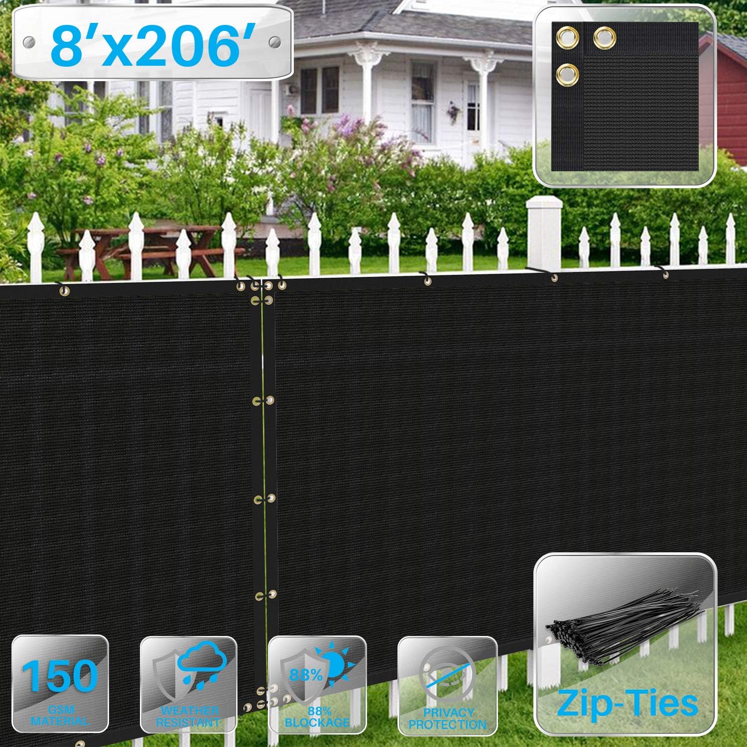 Patio 8' x 123' Fence Privacy Screen Black Commercial Grade Heavy Duty Outdoor Backyard Shade Windscreen Mesh Fabric with Brass Gromment - Custom with Zipties
