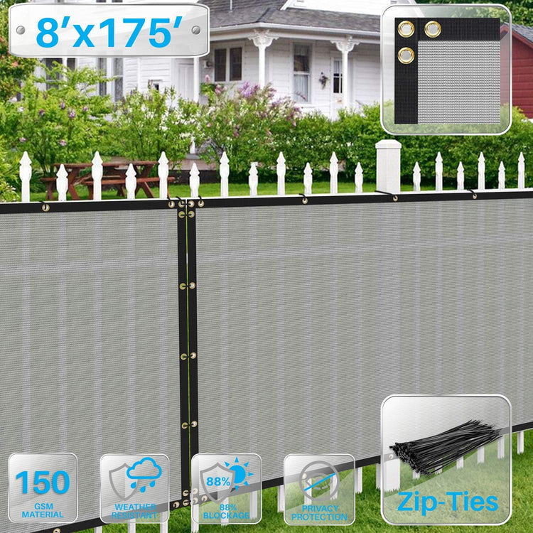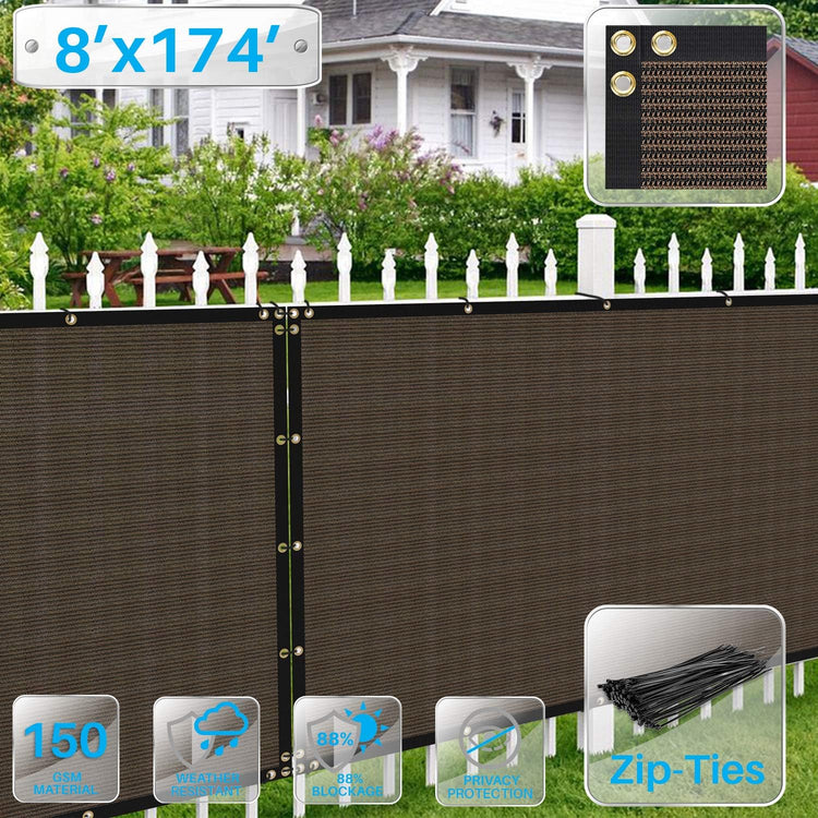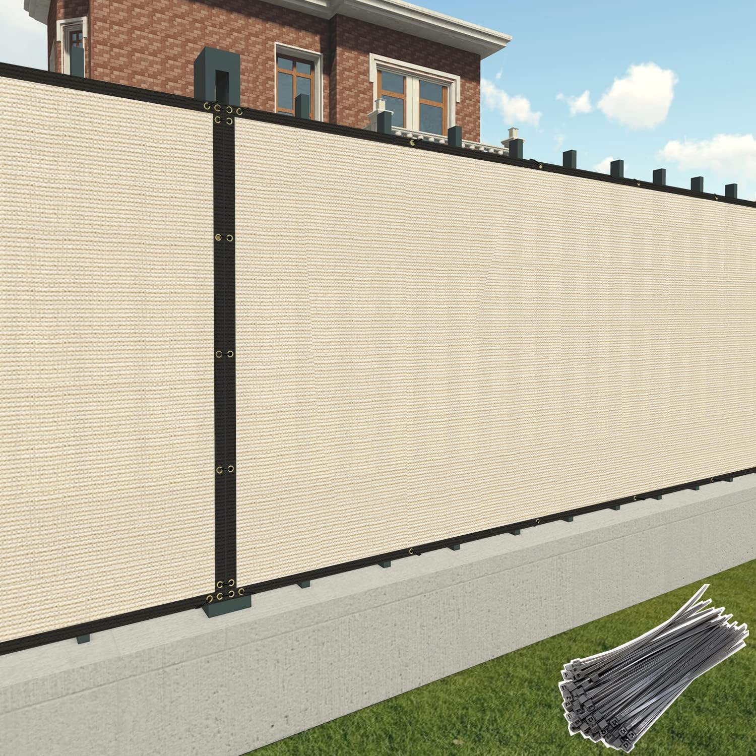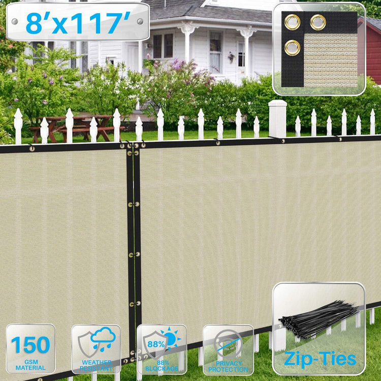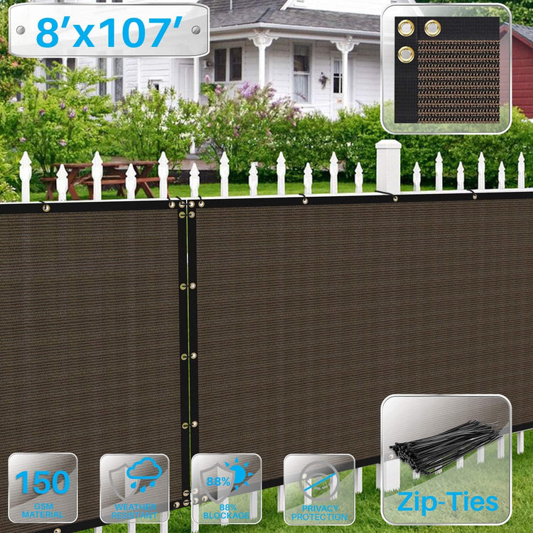 Patio 8' x 123' Fence Privacy Screen Black Commercial Grade Heavy Duty Outdoor Backyard Shade Windscreen Mesh Fabric with Brass Gromment - Custom with Zipties
