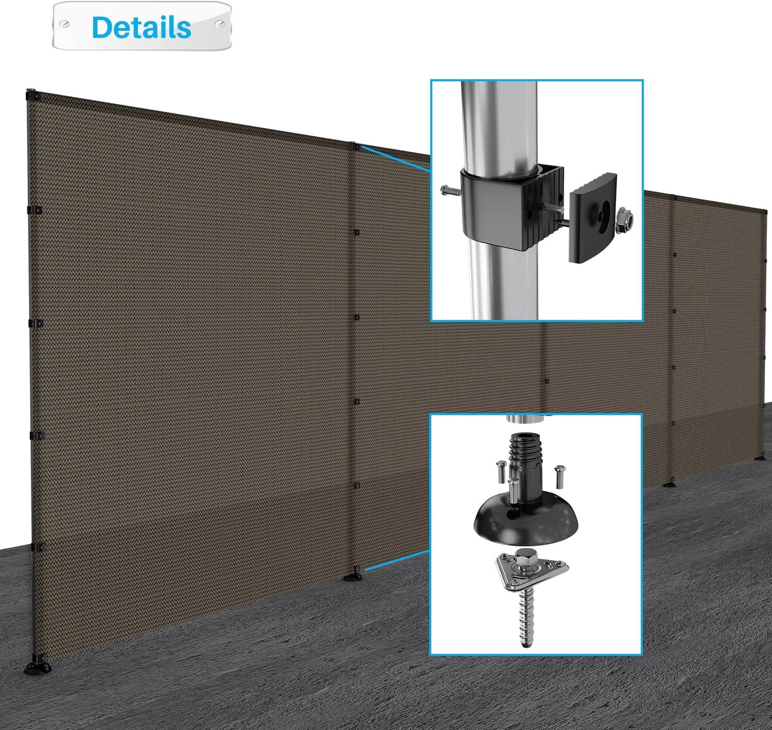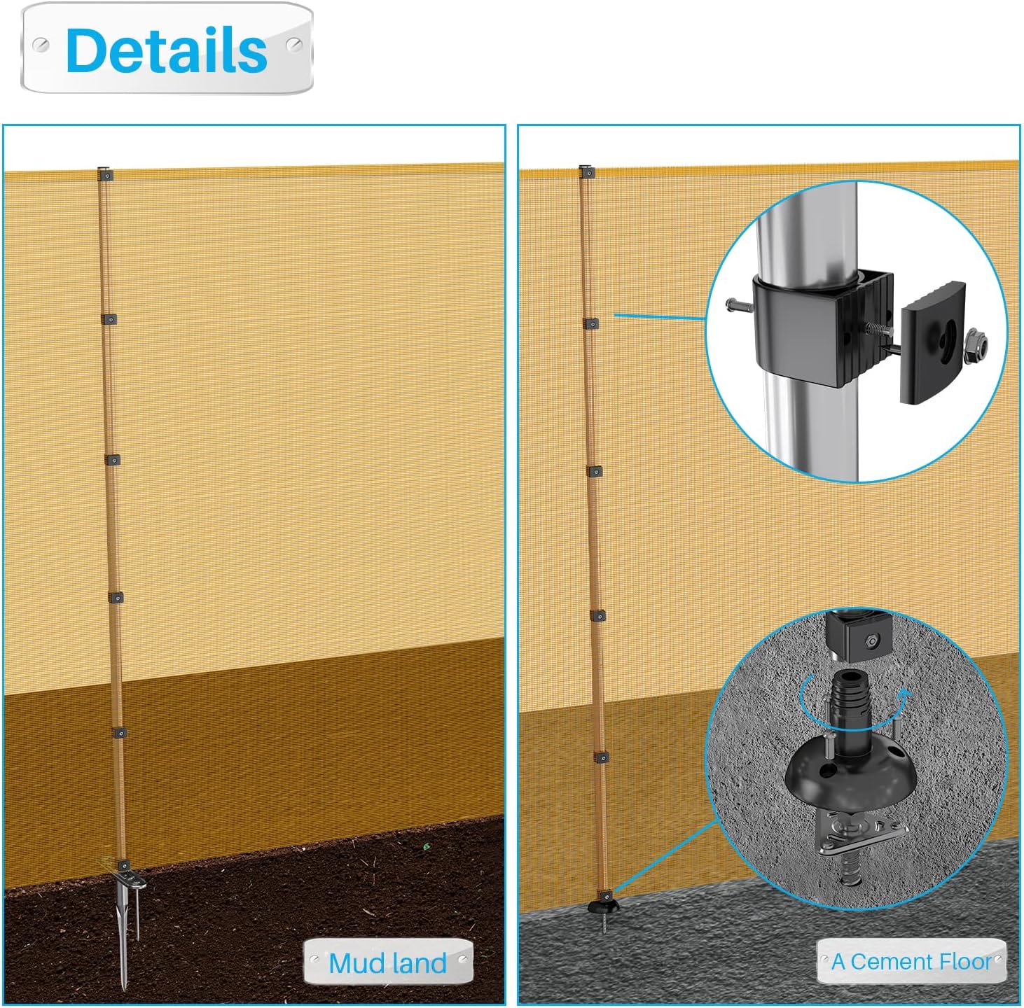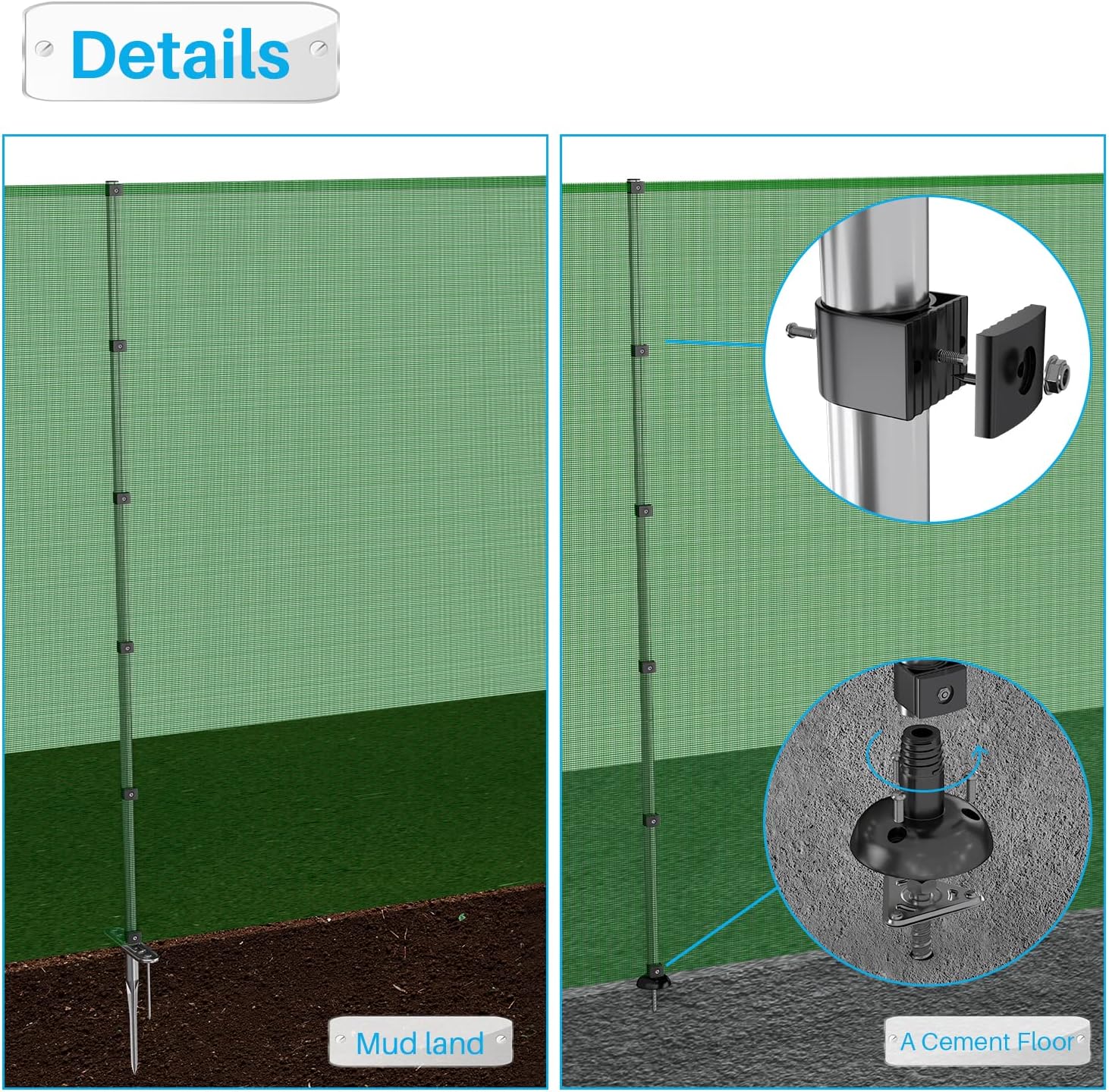 - Please note that Fence Fabric and Poles are unassembled, meaning that you can control the pole spacing. Simply attach Fence Fabric to the Poles with provided Clips.