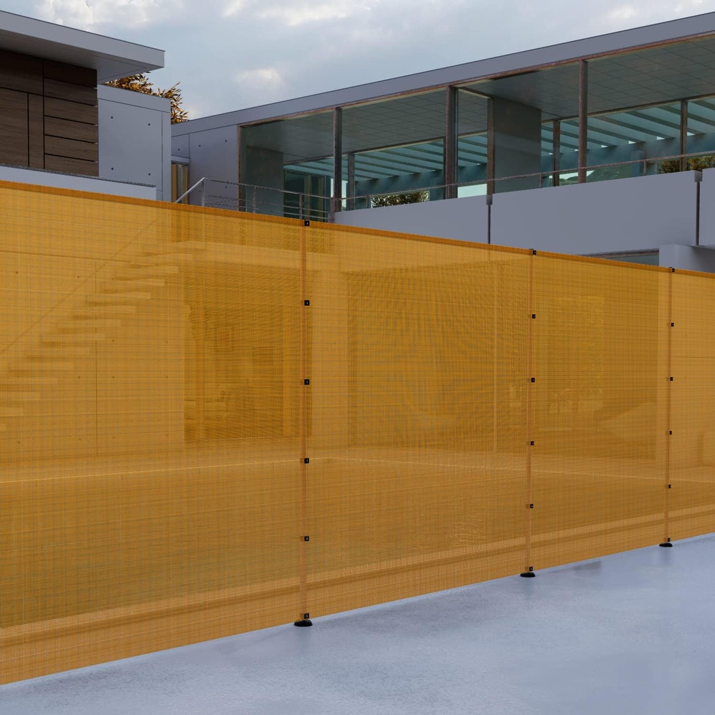 - Flexible fencing that suits any shape or size of outdoor area. Use this fencing to provide safety for your pool area, backyard, deck, or any other cement/ concrete or wooden ground. If you need to install fencing on soft ground, purchase our another fencing with ground spikes.