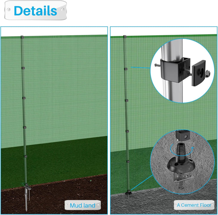- Upgraded reinforced outdoor fencing kit with Stainless Steel Poles for installation on cement, concrete, wooden ground. Fence Poles are made of Stainless Steel for extra strength and durability.