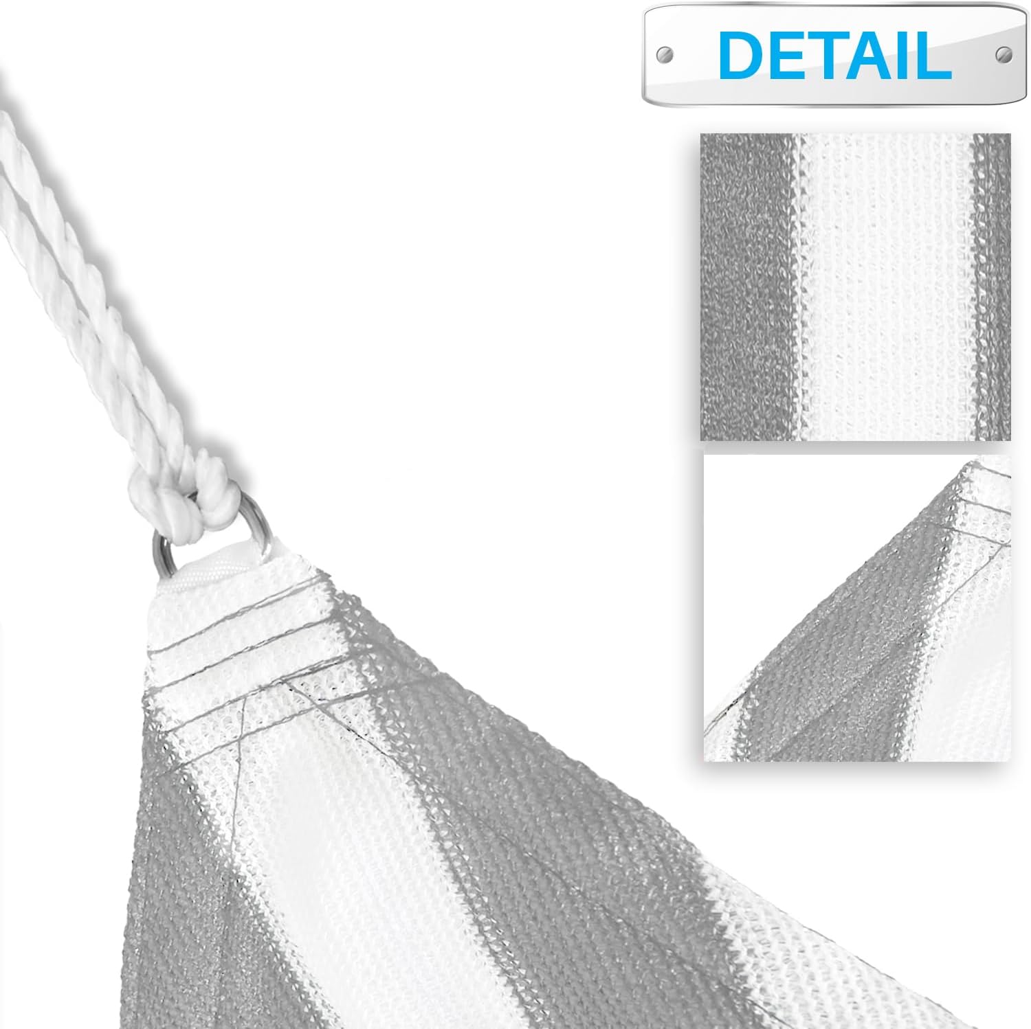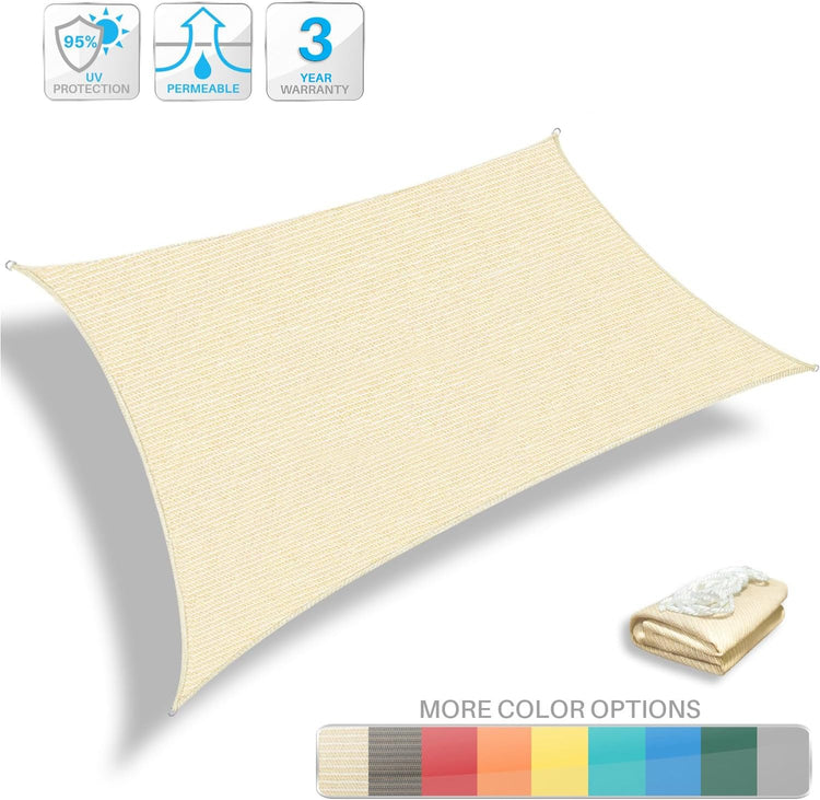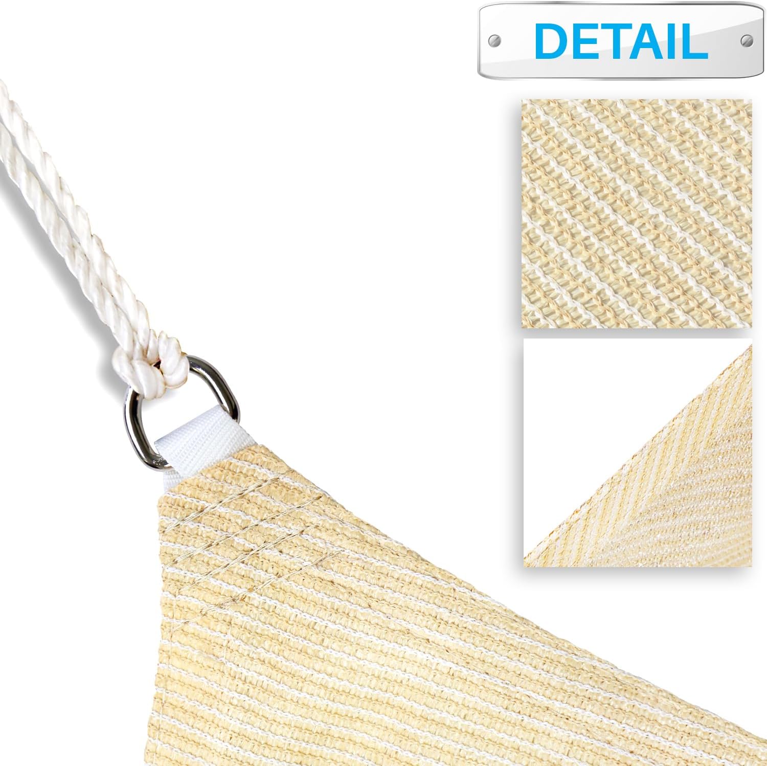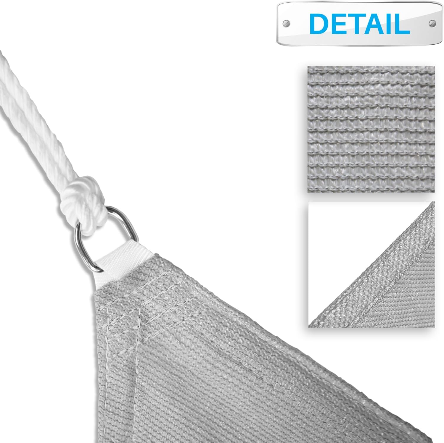 - ★【VIRGIN, UV STABILIZED COMPOUND & THICK MATERIAL】: Compared to other sun shade sails on the market, our virgin HDPE fabric undergoes 20000 hours of laboratory UV testing and it is proven to be 80% more durable than recycled HDPE under sun exposure. The fabric has been treated with a UV-stabilizing compound to prevent shade sails from drying out, tearing, and fading, significantly extending the lifespan.