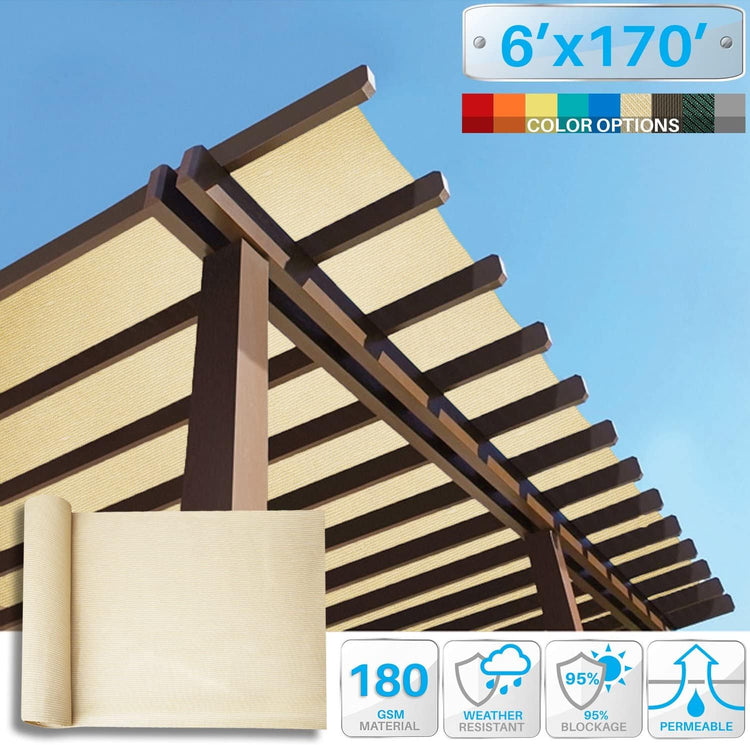 Patio Paradise 6' x 1' Sunblock Shade Cloth Roll,Brown Sun Shade Fabric 95% UV Resistant Mesh Netting Cover for Outdoor,Backyard,Garden,Plant,Greenhouse,Barn