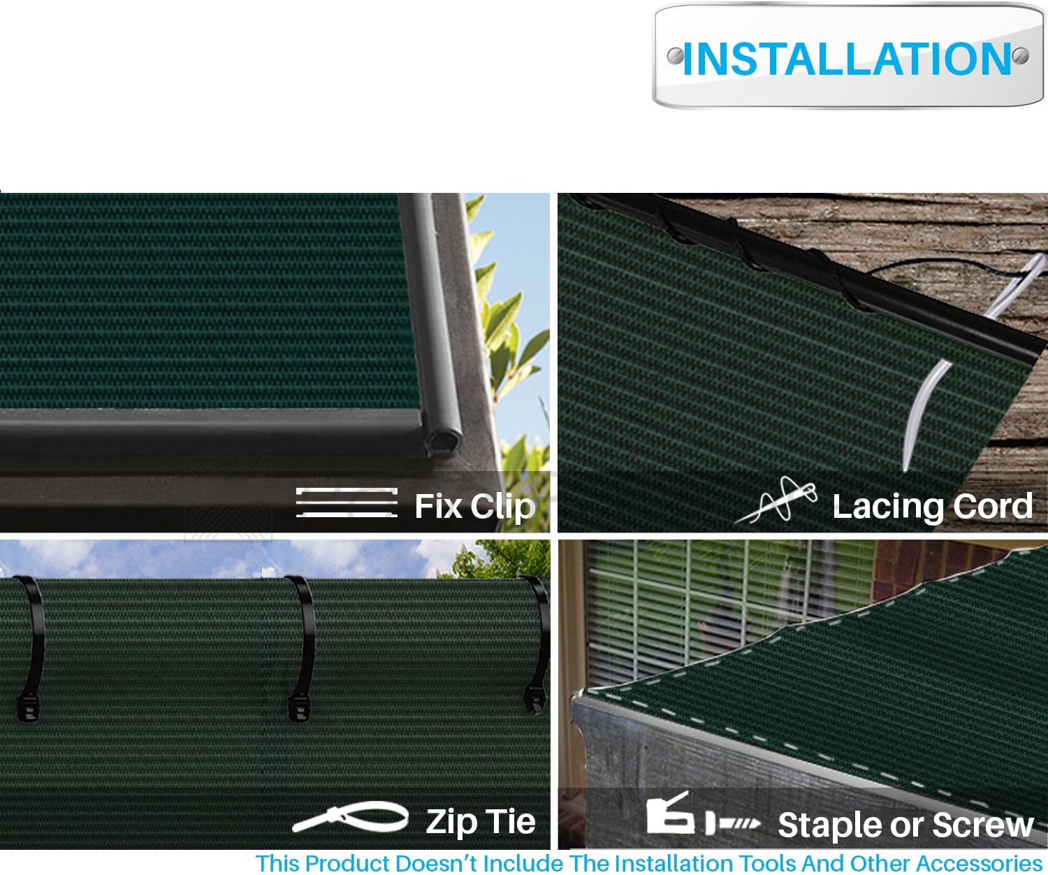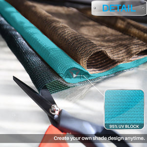 This is No Edge Taping Product. Our knitted shade cloth is made from 100% UV stabilized polyethylene. Its unique lock stitch construction will not unravel. Its light weight and durability make it a superior choice for all types of shade applications. Ideal for patios, courtyards, privacy screens, dog kennels, ferneries, caravan annexes, barbeque areas, carports, aviaries, pool covers and swimming pool shading. Shade cloth coverings for indoor plant and shrub nurseries, hydroponics, vegetables, fruit and flowers. It is also suitable as a windbreak. As safety enclosures and protection around industrial sites and building construction, hail protection for car yards and glasshouses, privacy and visual landscaping for factory and office complexes. Wind sheltering for tennis courts, shading for restaurants, resorts and surrounds for bowing greens. Cattle and livestock covers. Color Guide: Brown: multipurpose with greatest choice of shade values and widths. Ideal for every application. Naturally resists the sun s harmful UV radiation for years. Green:for nursery and other decorative and agricultural applications including windscreens, privacy screens, tennis courts and more.