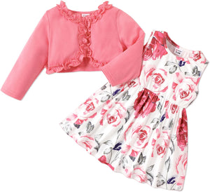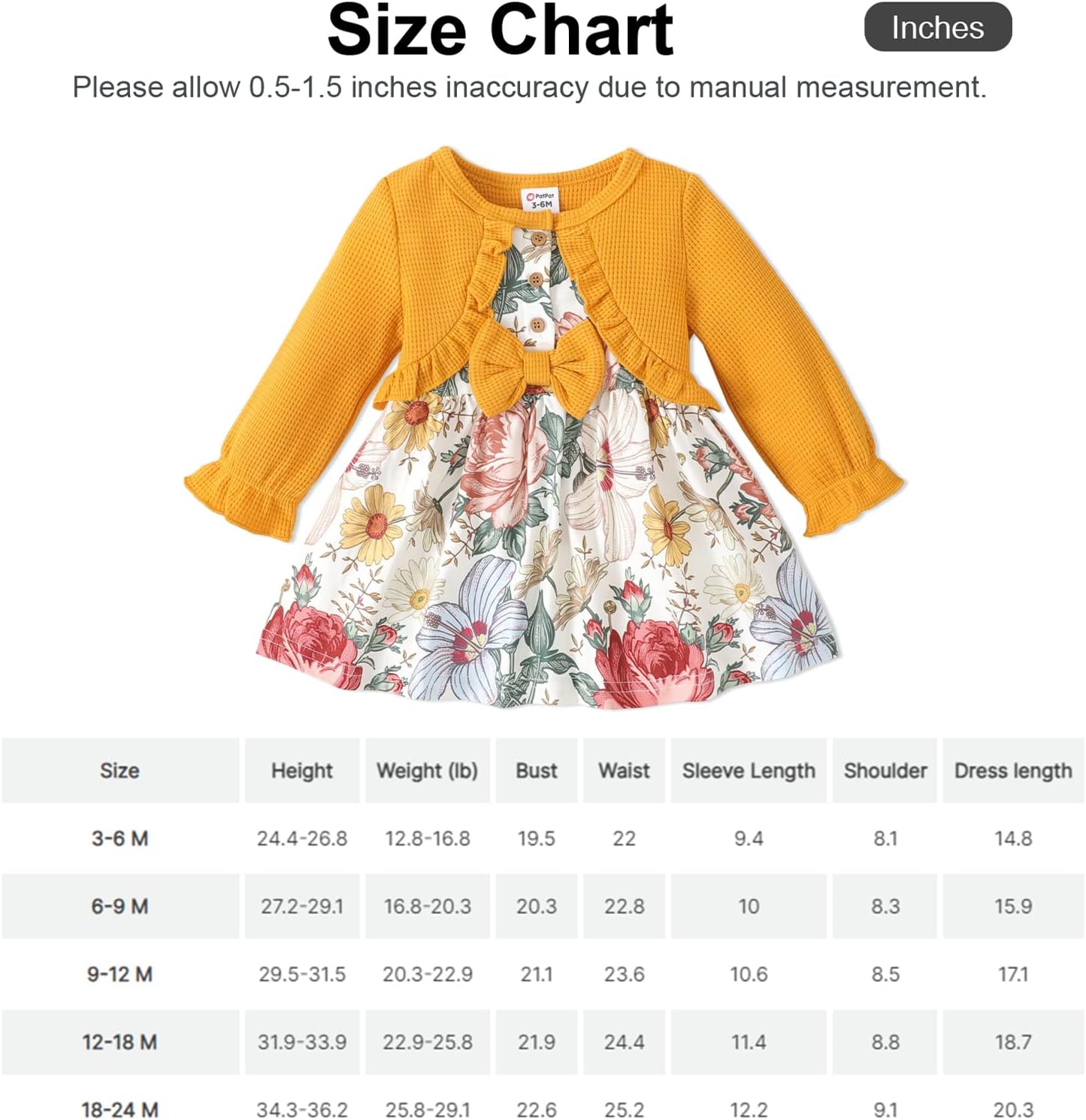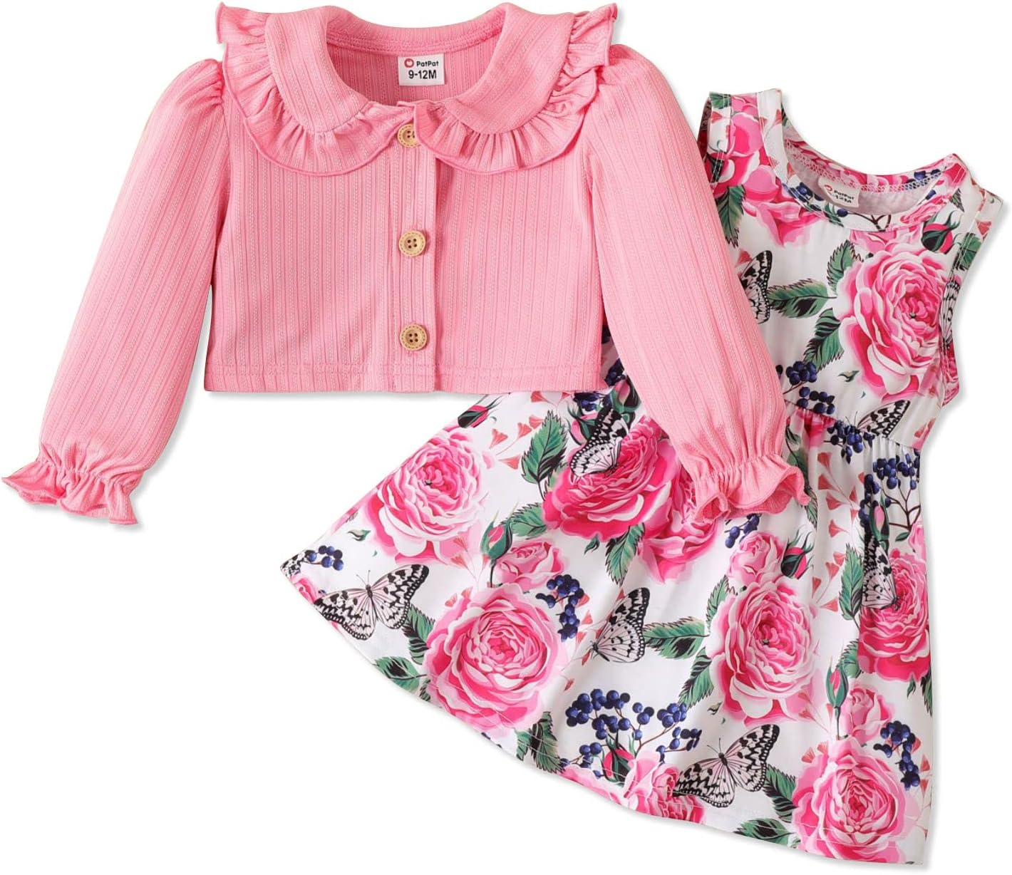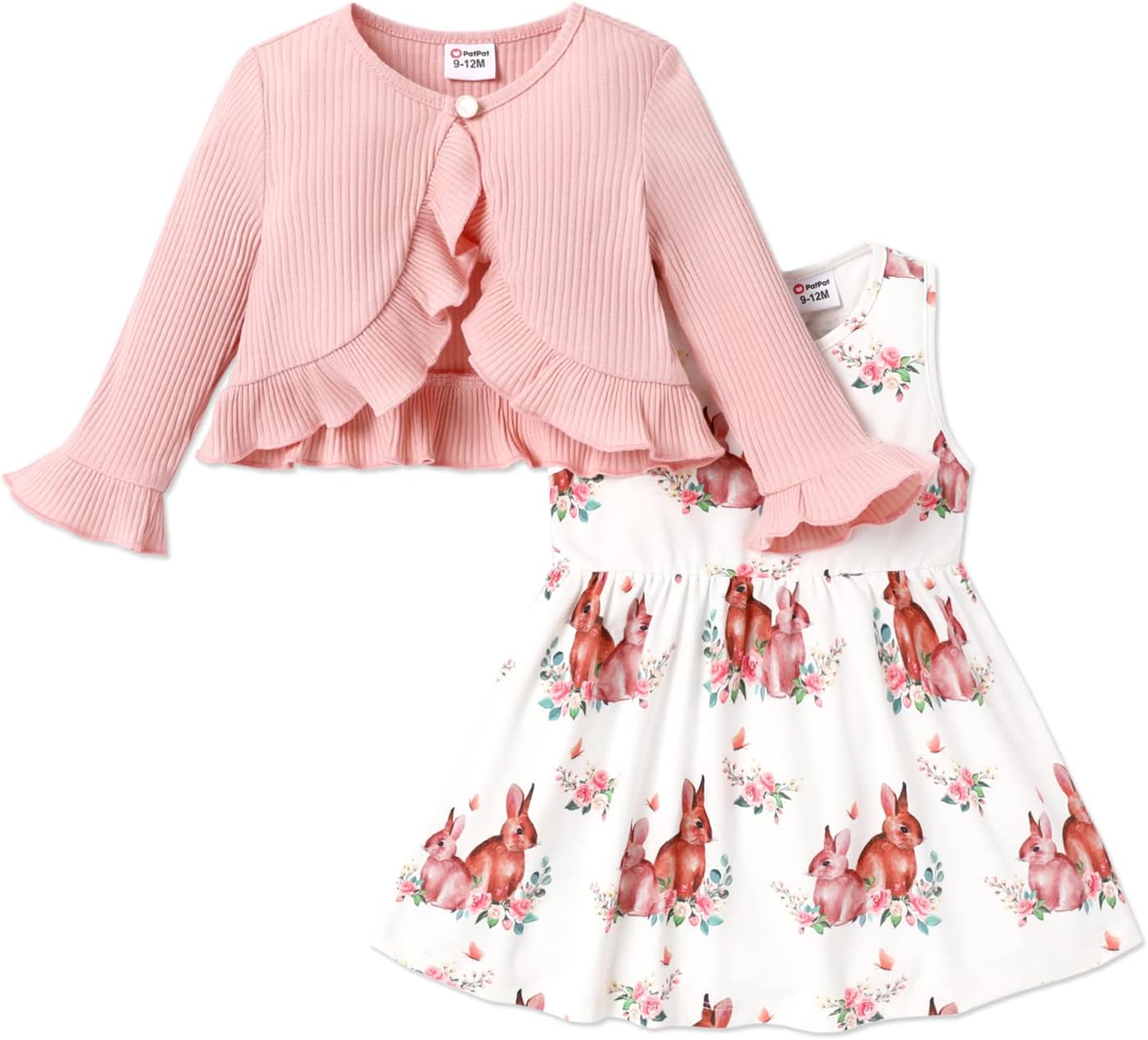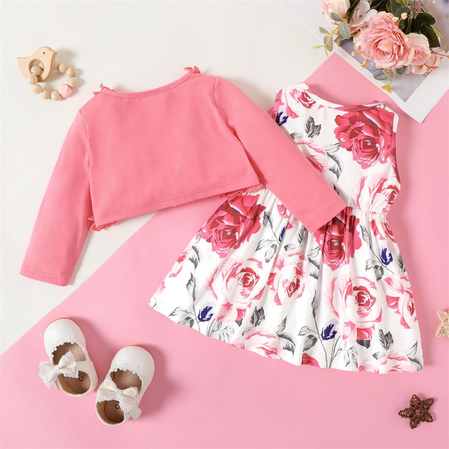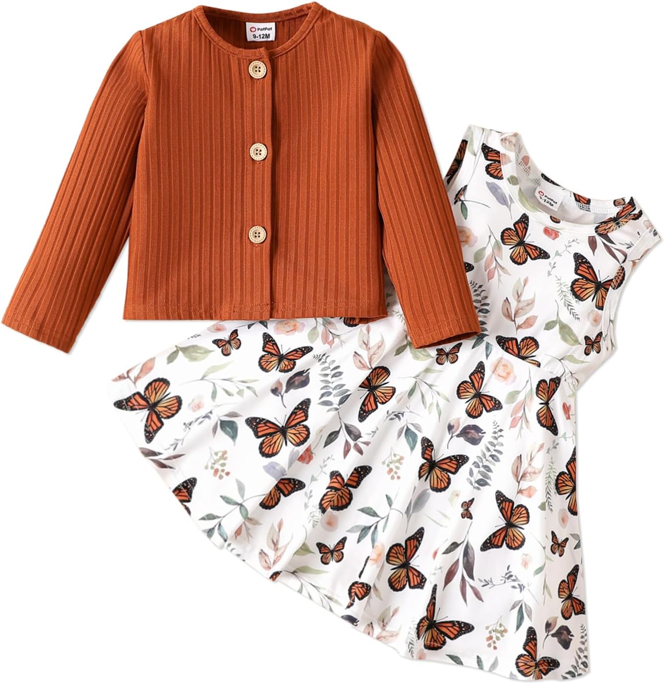 PATPAT Baby Girls Dress and Cardigan Sets 2 PCS Toddler Girl Sunflower Print Sleeveless Dress and Long Sleeve Cardigan Set