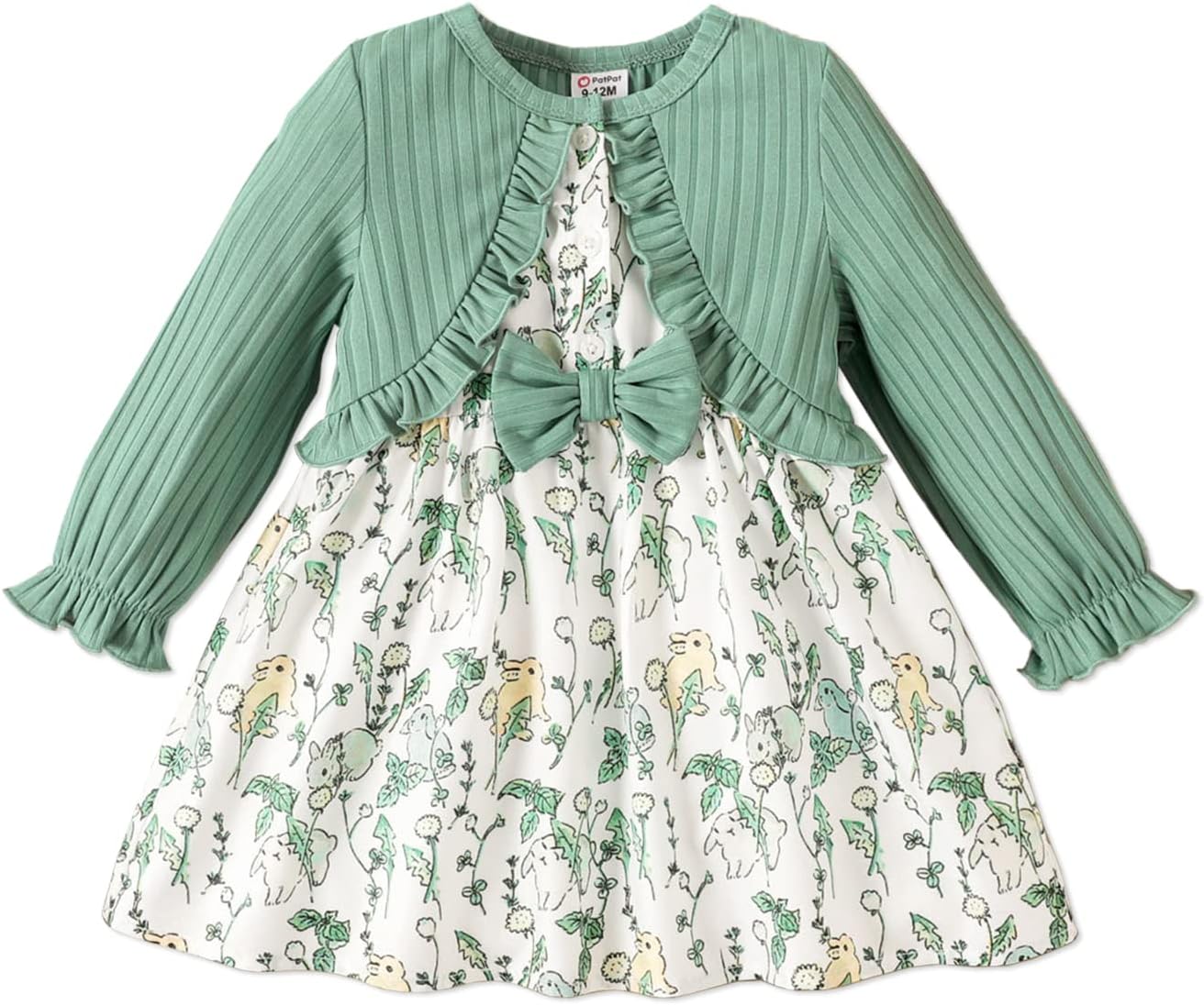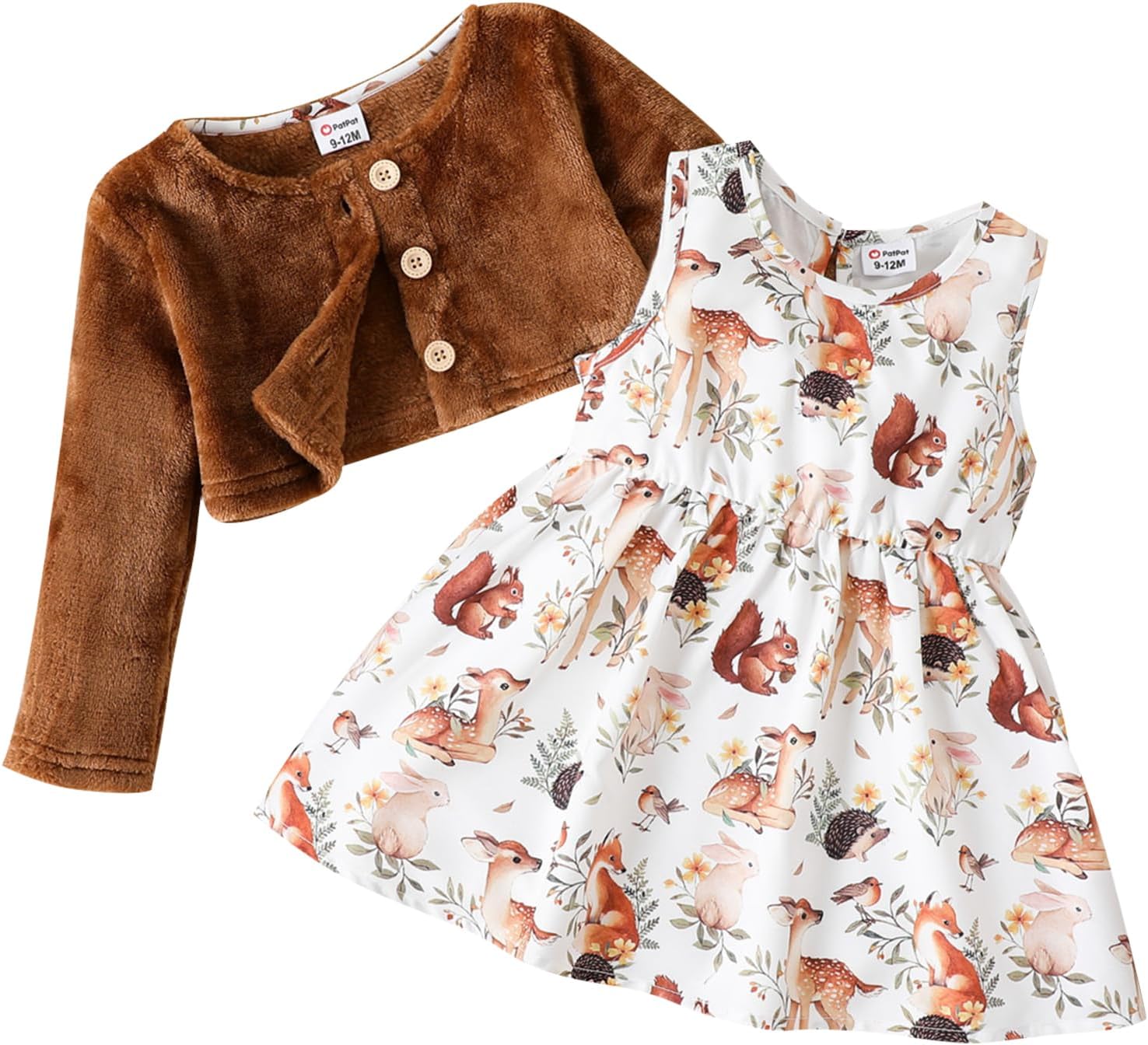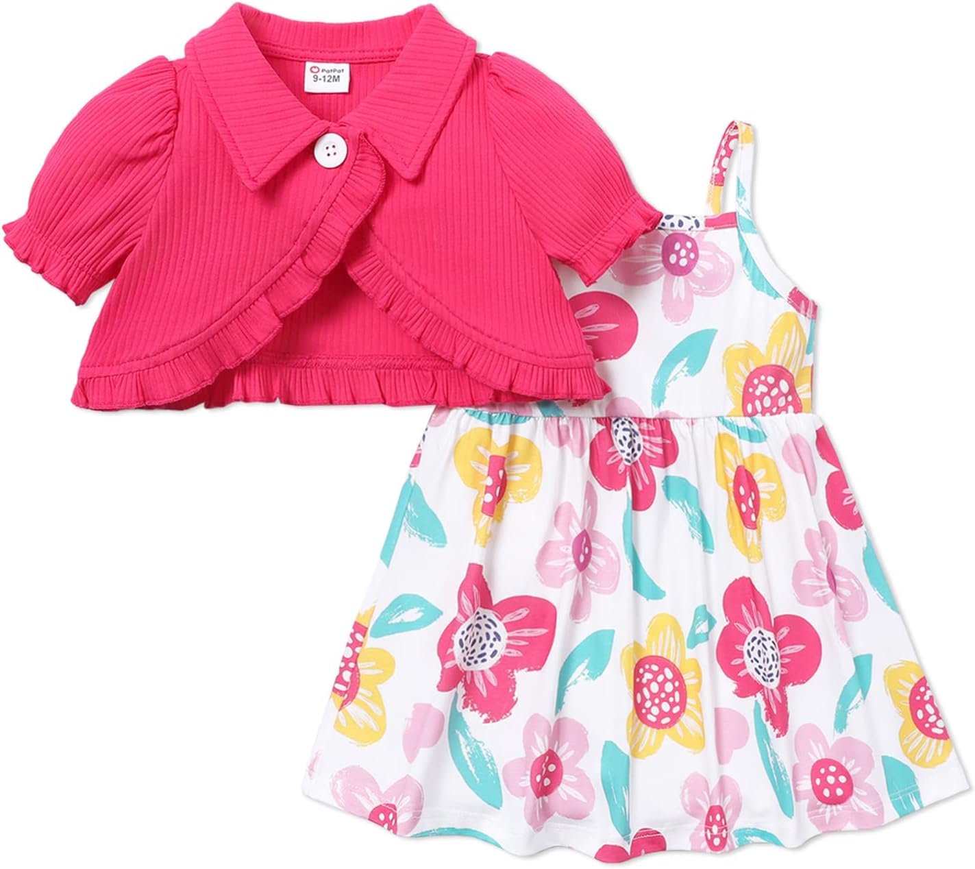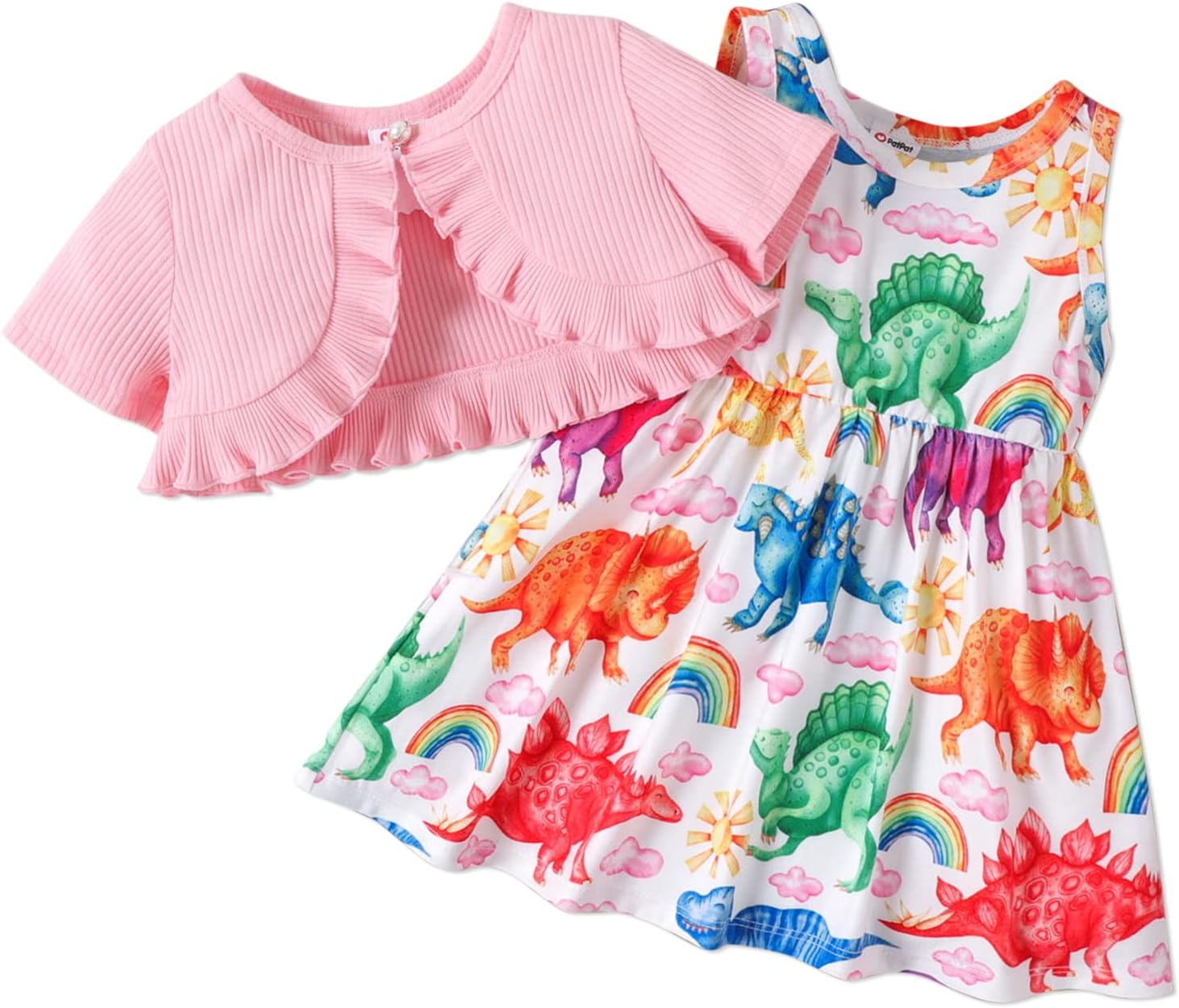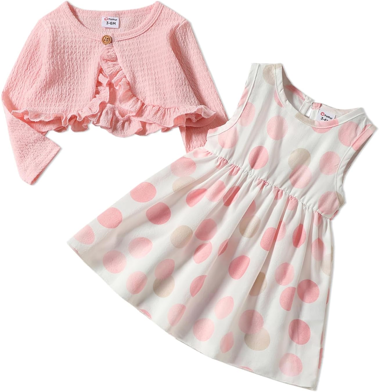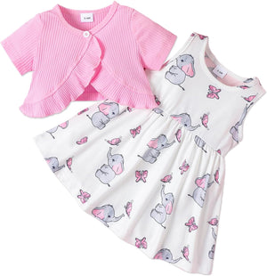 PATPAT Baby Girls Dress and Cardigan Sets 2 PCS Toddler Girl Sunflower Print Sleeveless Dress and Long Sleeve Cardigan Set