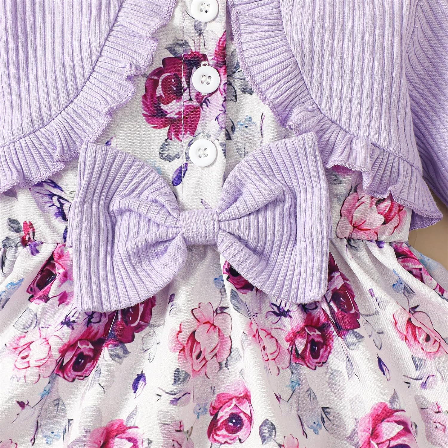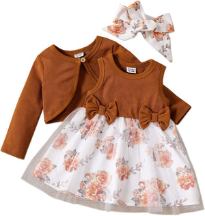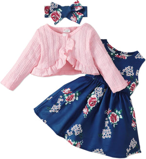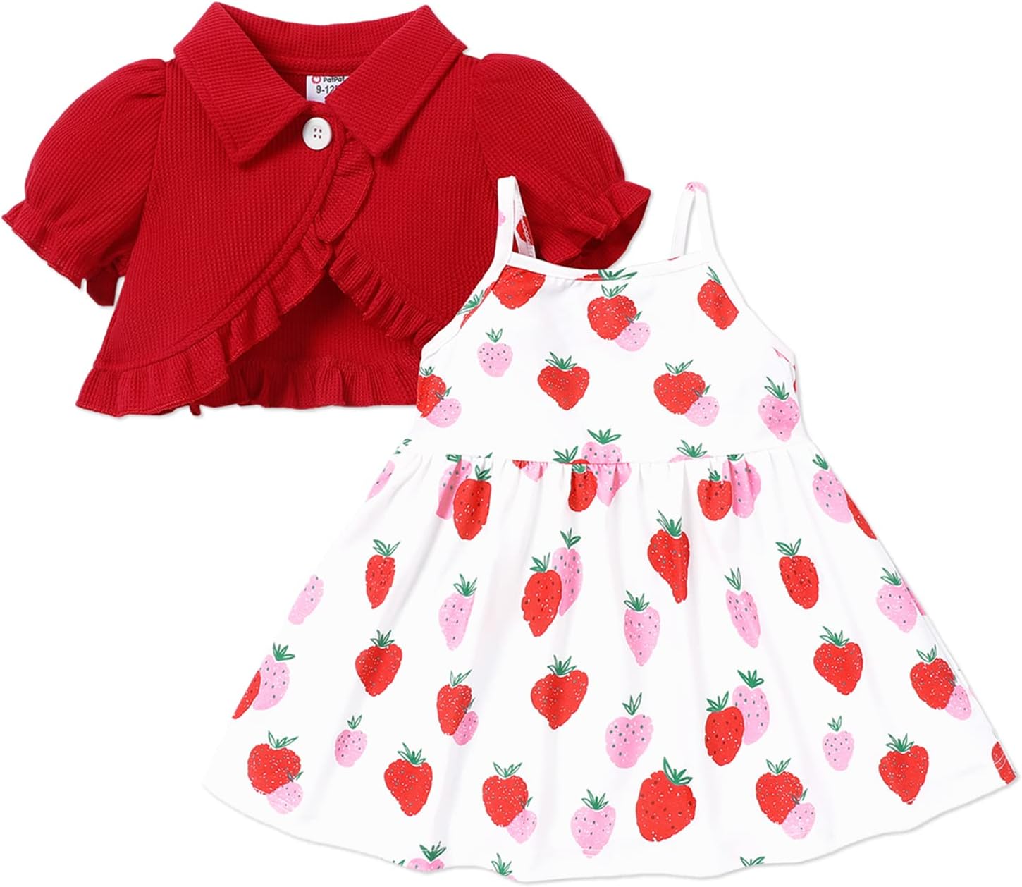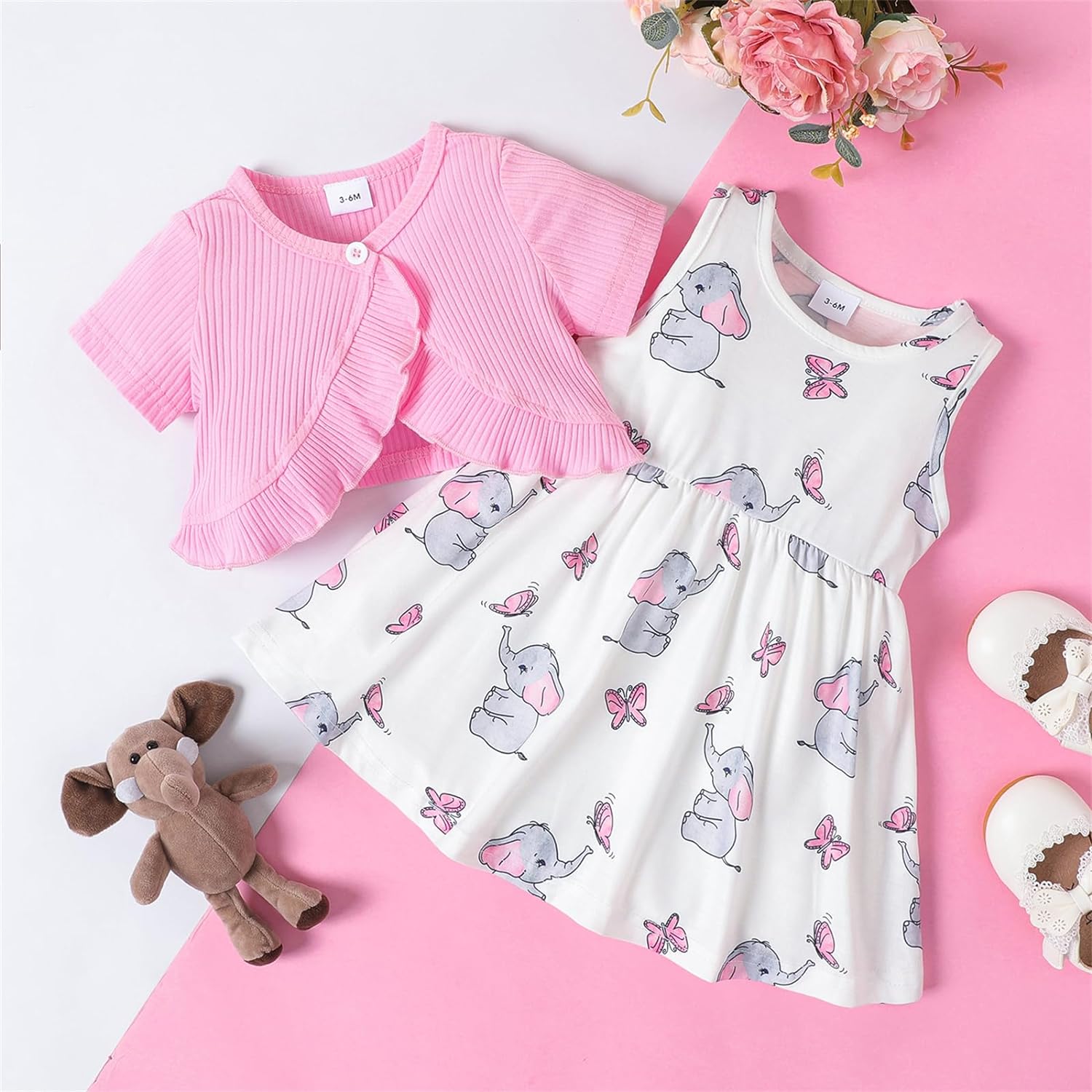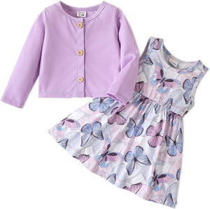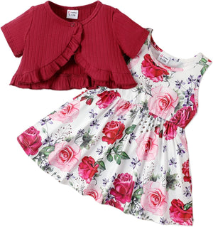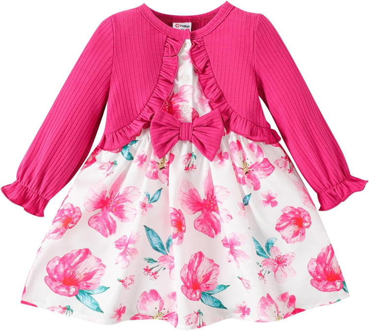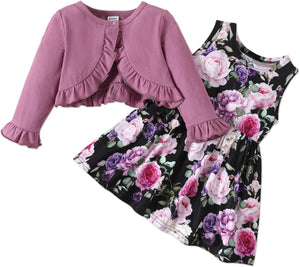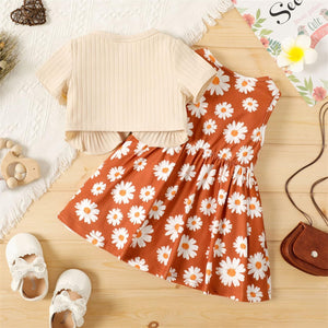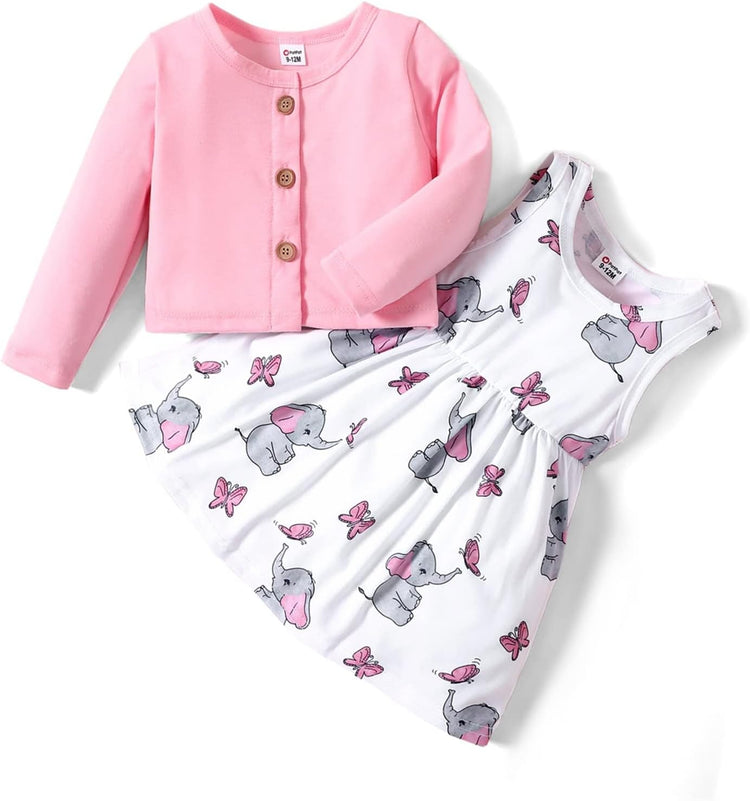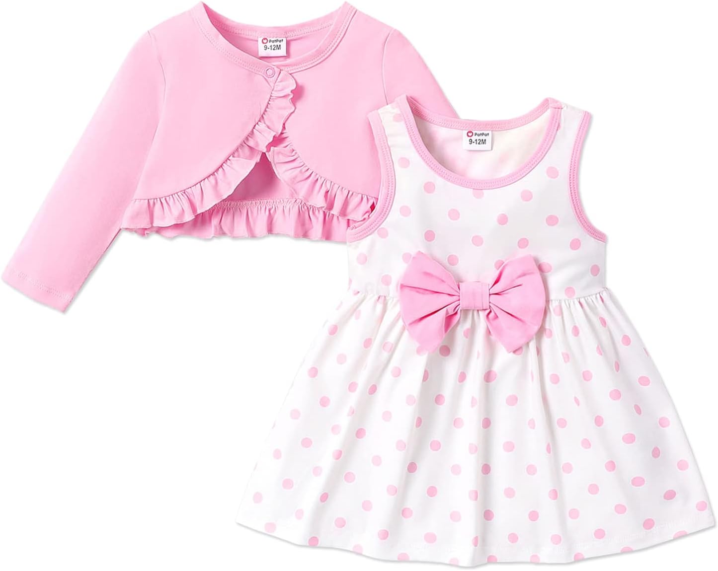PATPAT Baby Girls Dress and Cardigan Sets 2 PCS Toddler Girl Sunflower Print Sleeveless Dress and Long Sleeve Cardigan Set