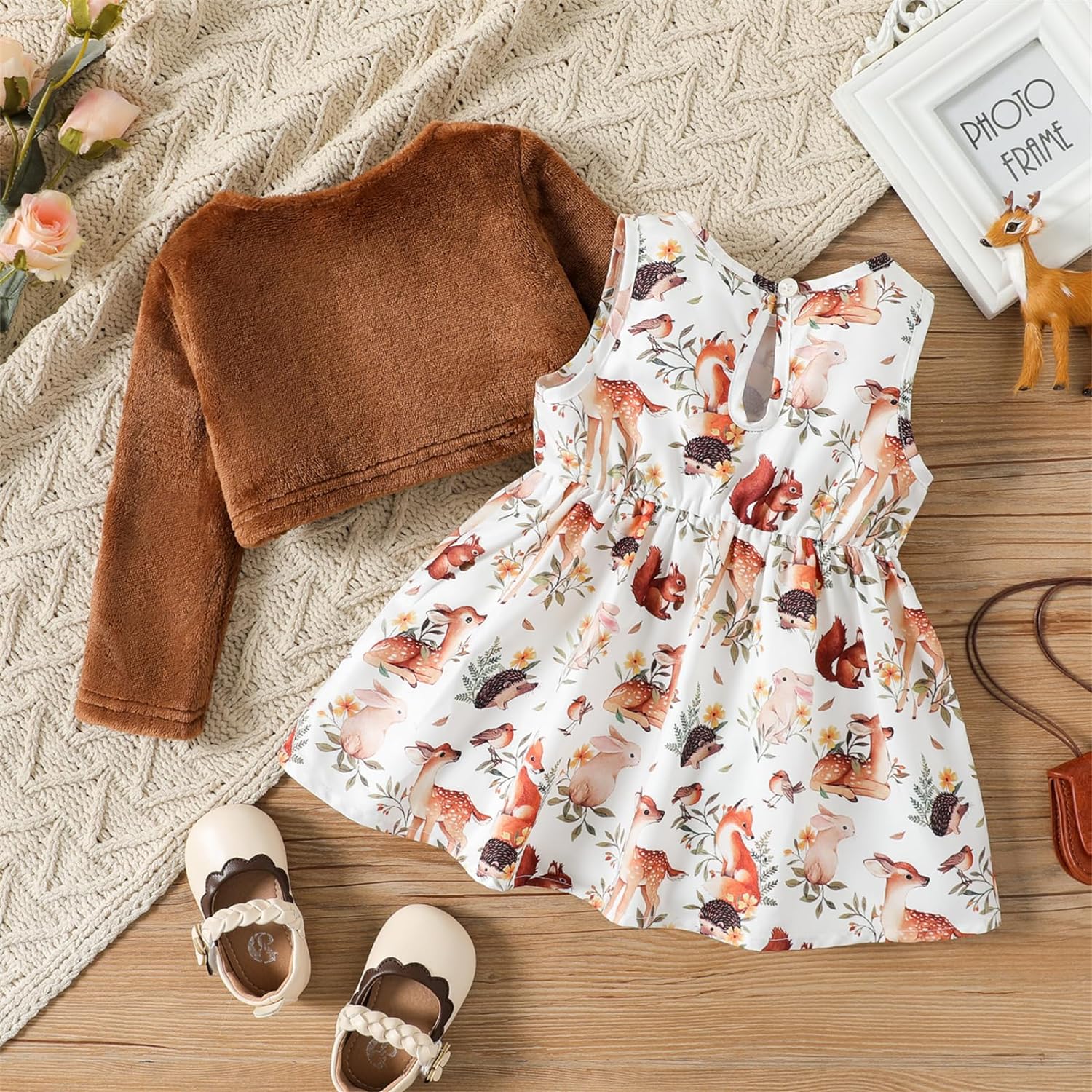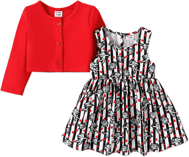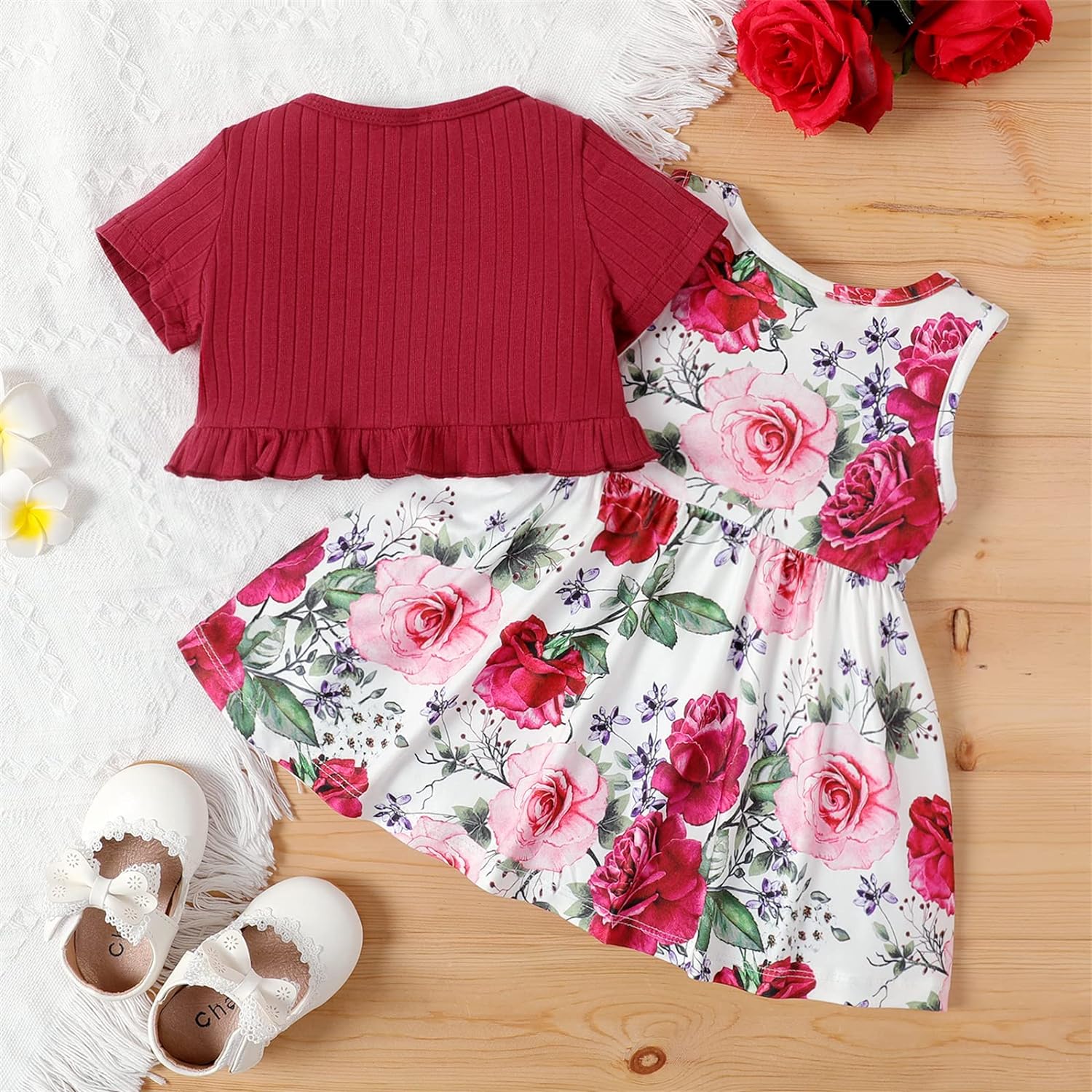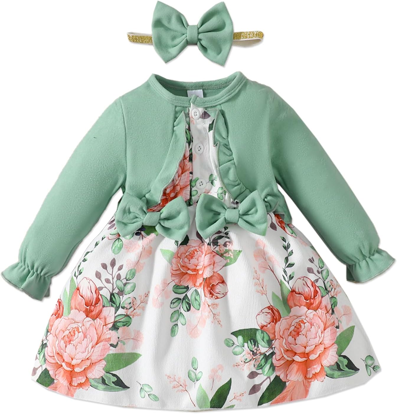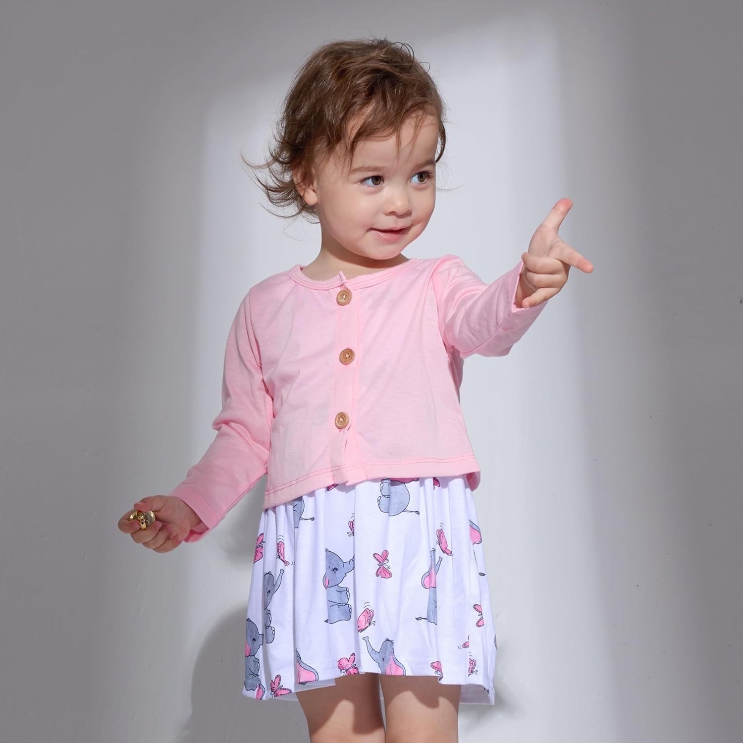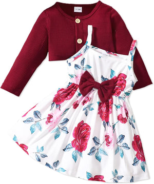 PATPAT Baby Girls Dress and Cardigan Sets 2 PCS Toddler Girl Sunflower Print Sleeveless Dress and Long Sleeve Cardigan Set