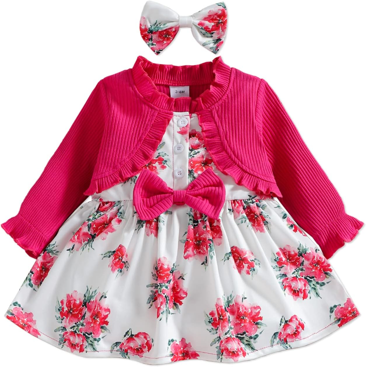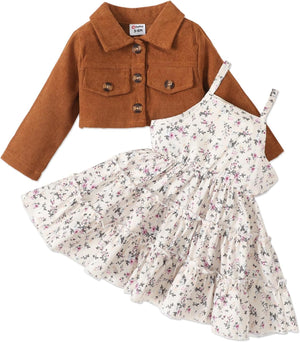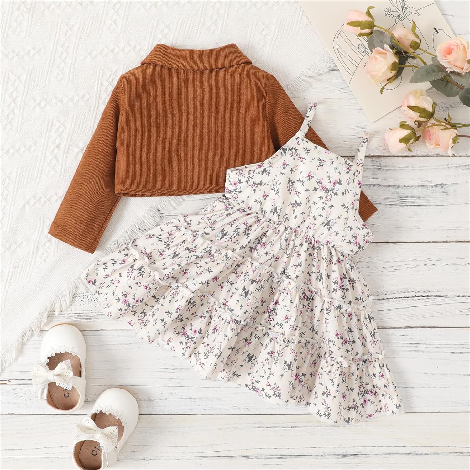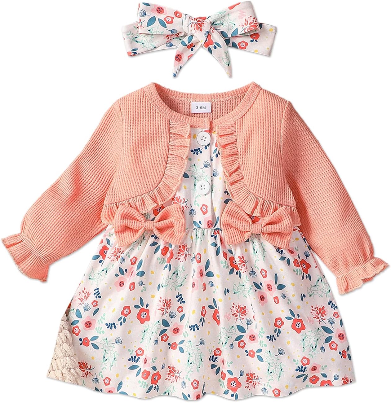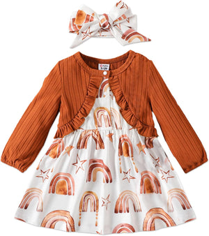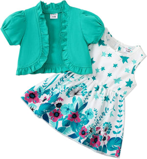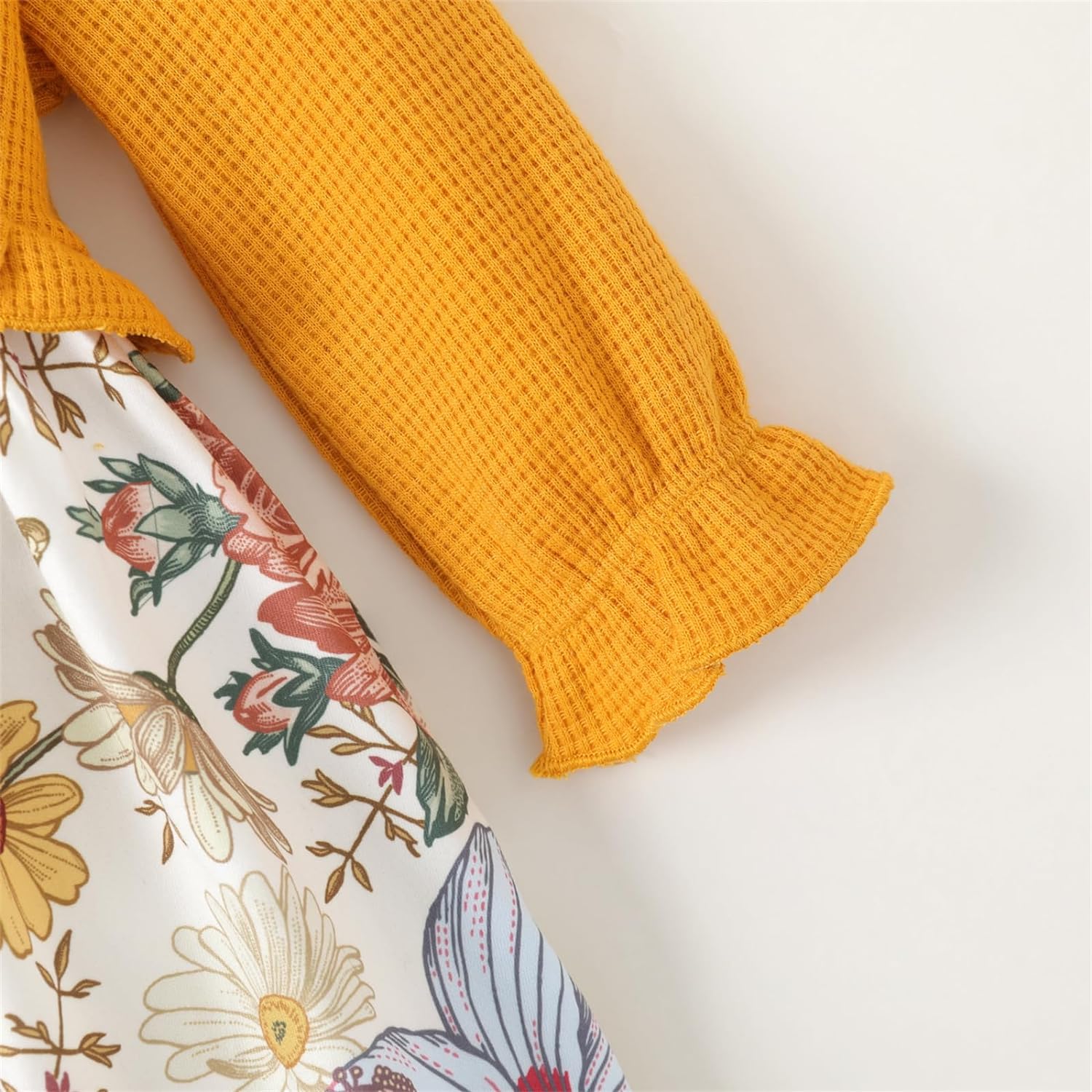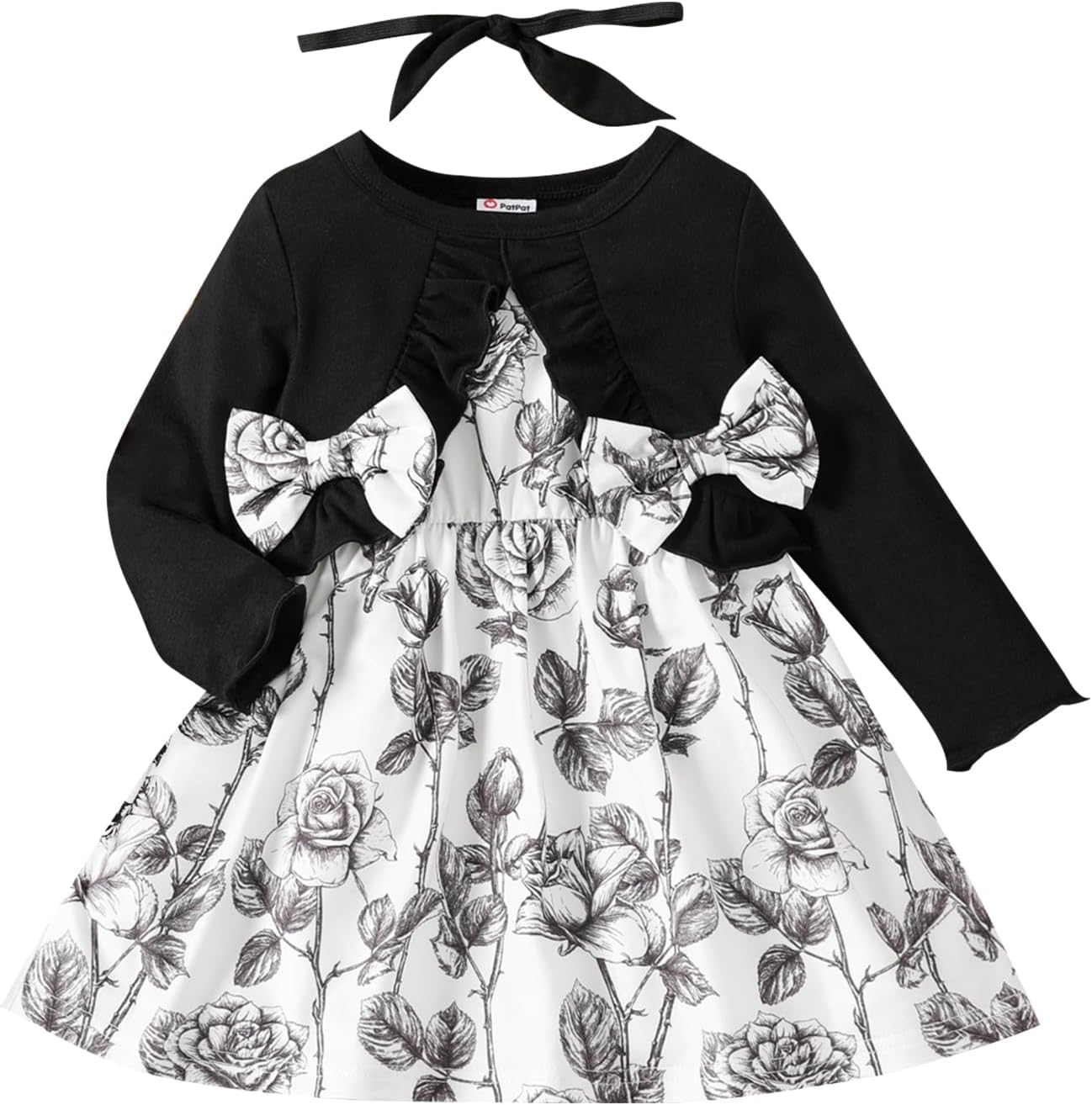 PATPAT Baby Girls Dress and Cardigan Sets 2 PCS Toddler Girl Sunflower Print Sleeveless Dress and Long Sleeve Cardigan Set
