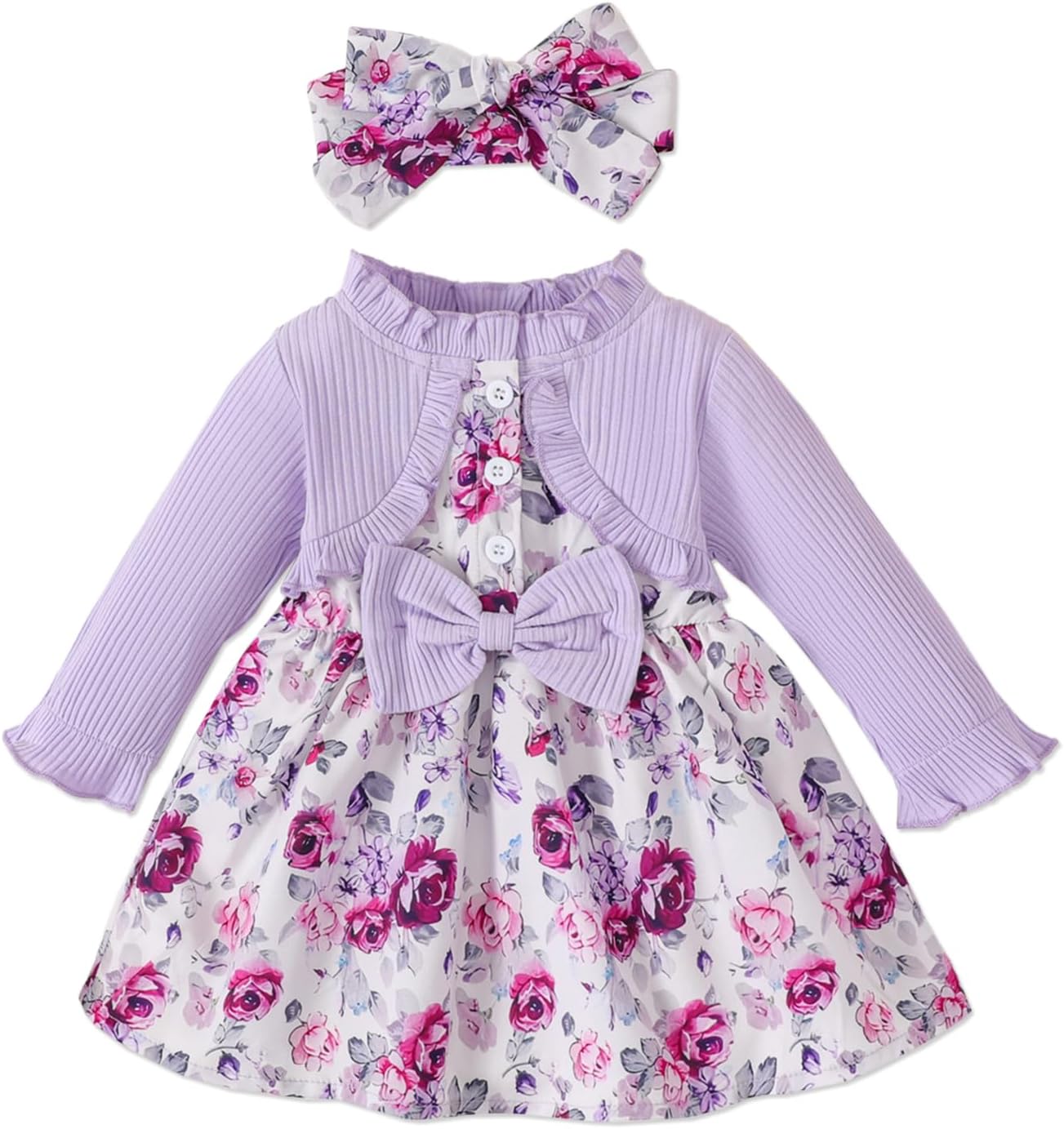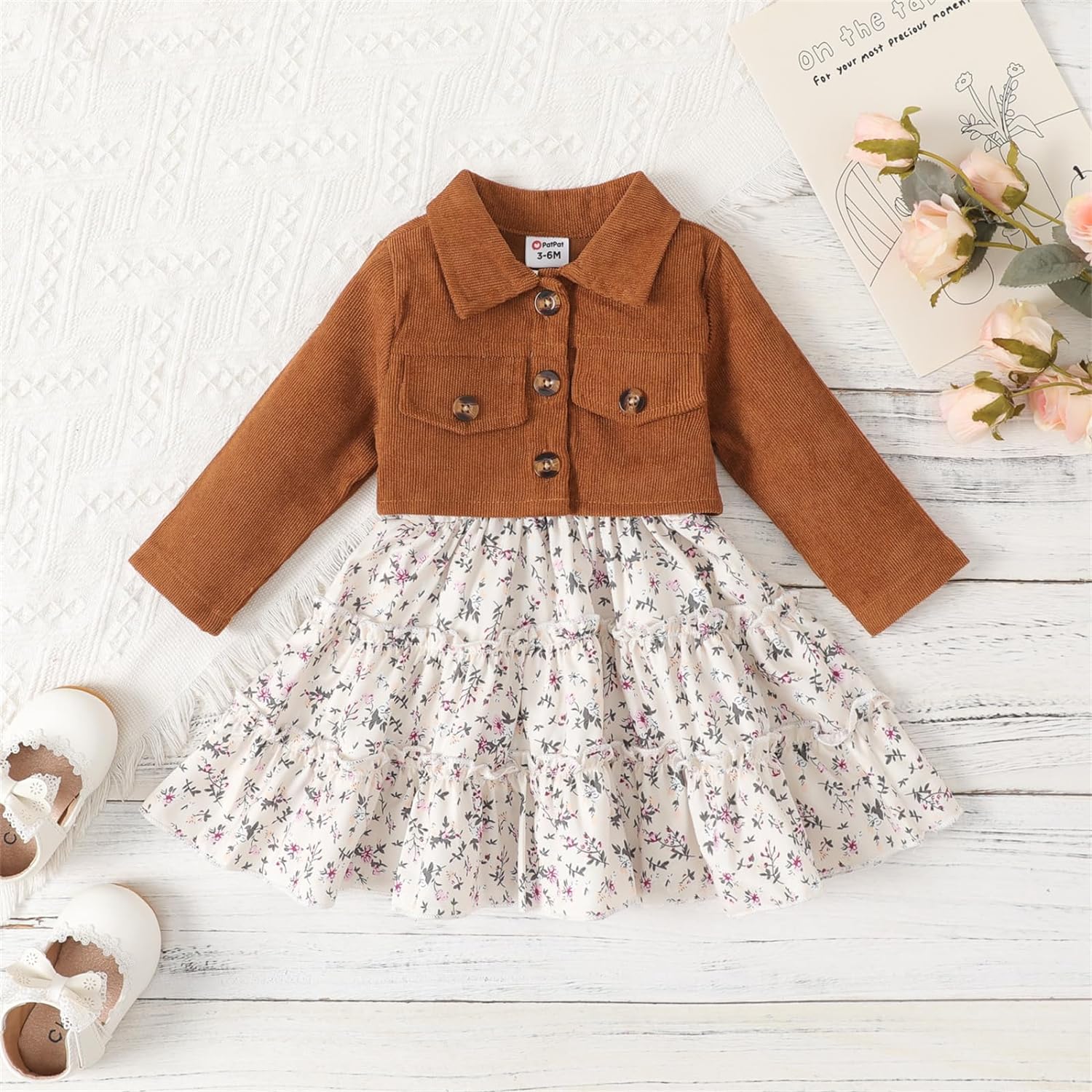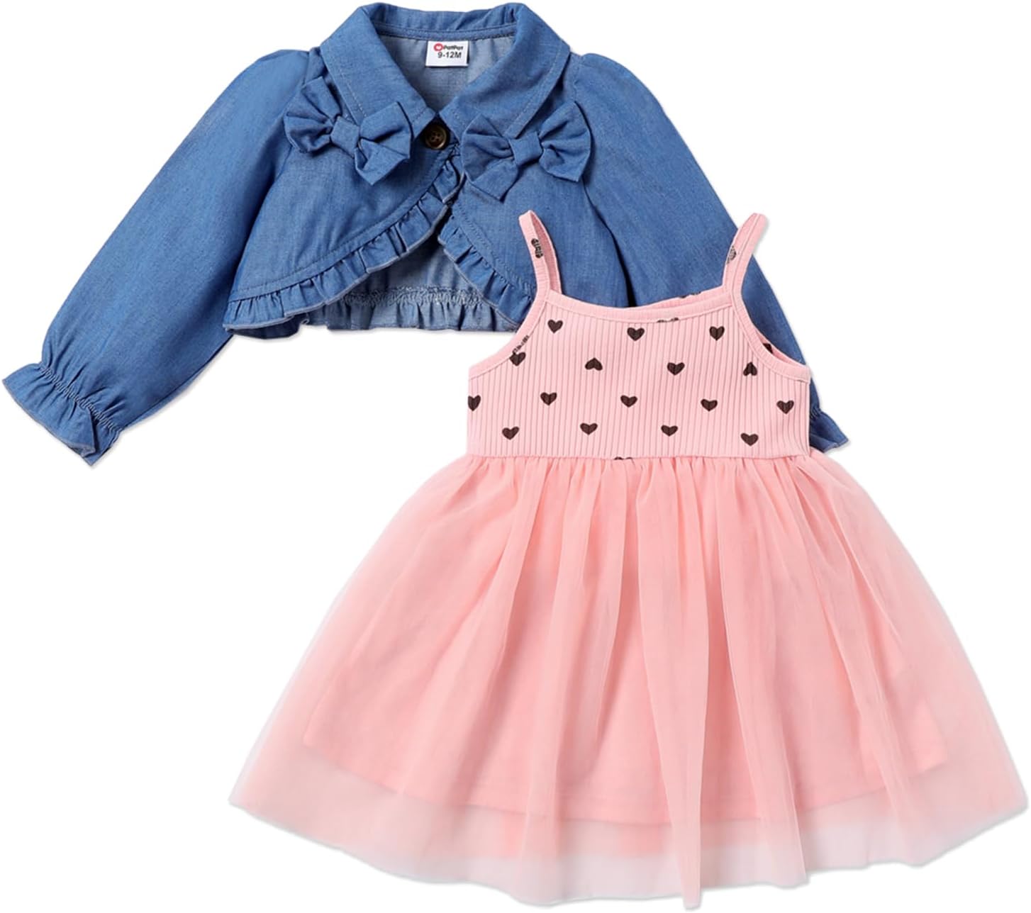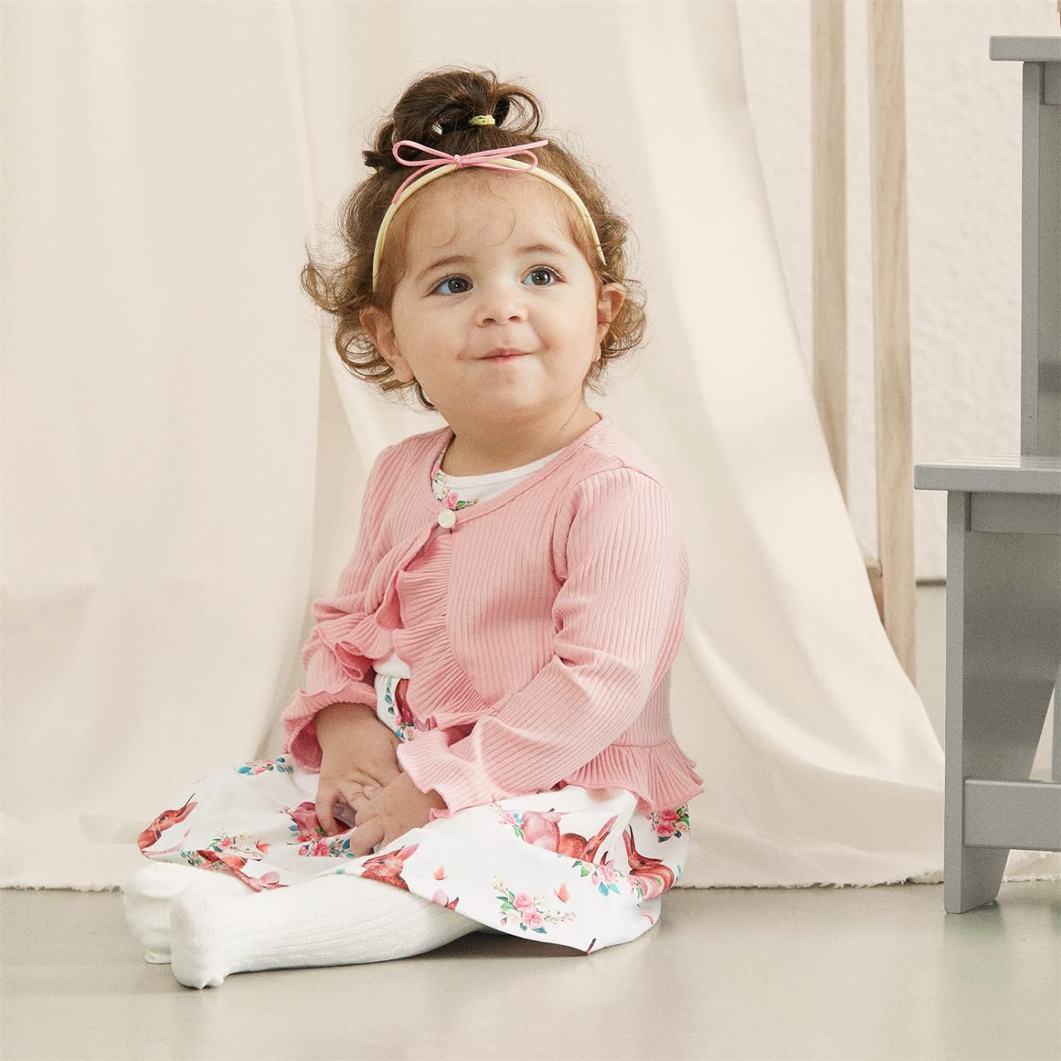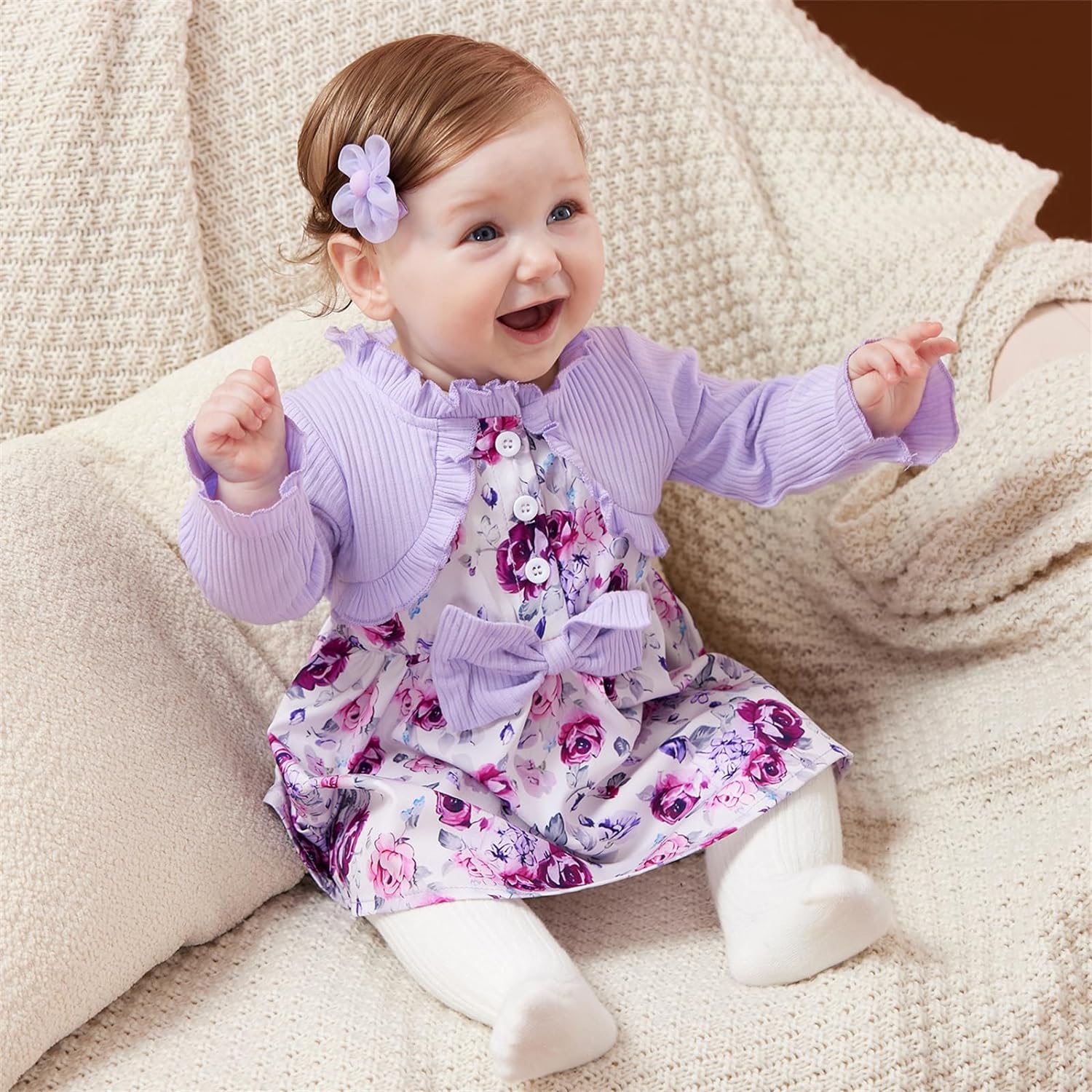 PATPAT Baby Girls Dress and Cardigan Sets 2 PCS Toddler Girl Sunflower Print Sleeveless Dress and Long Sleeve Cardigan Set