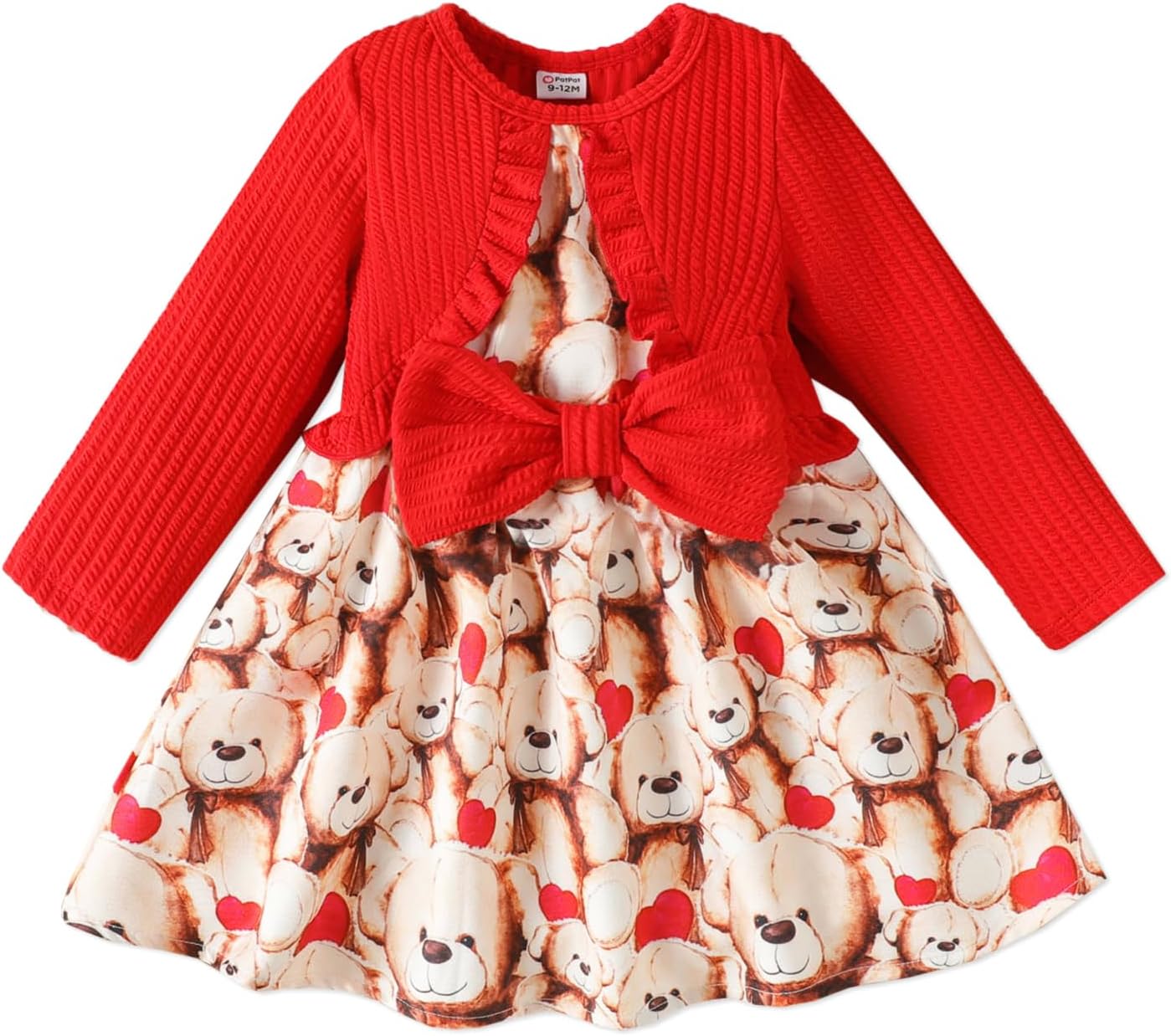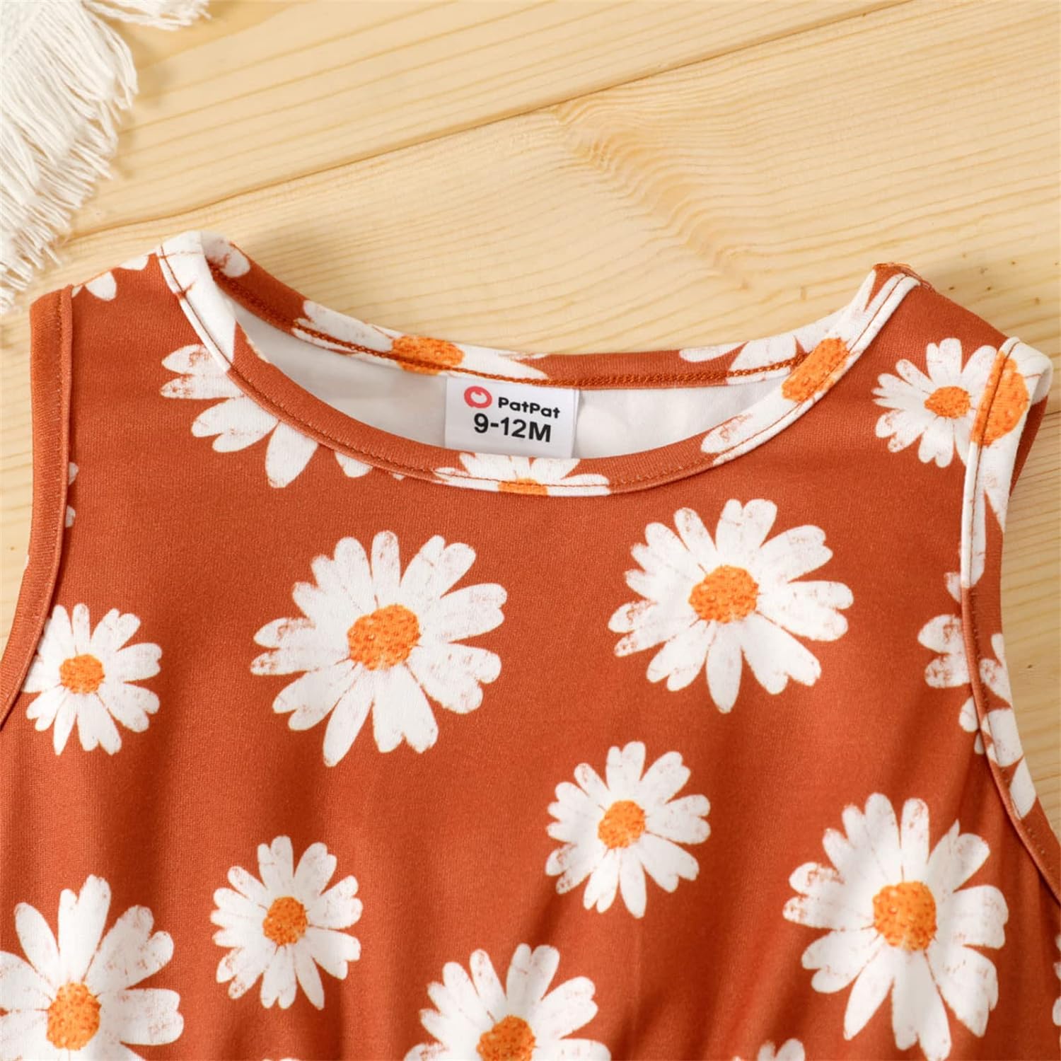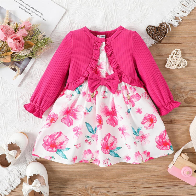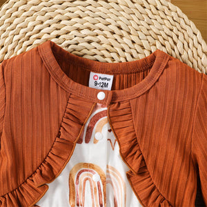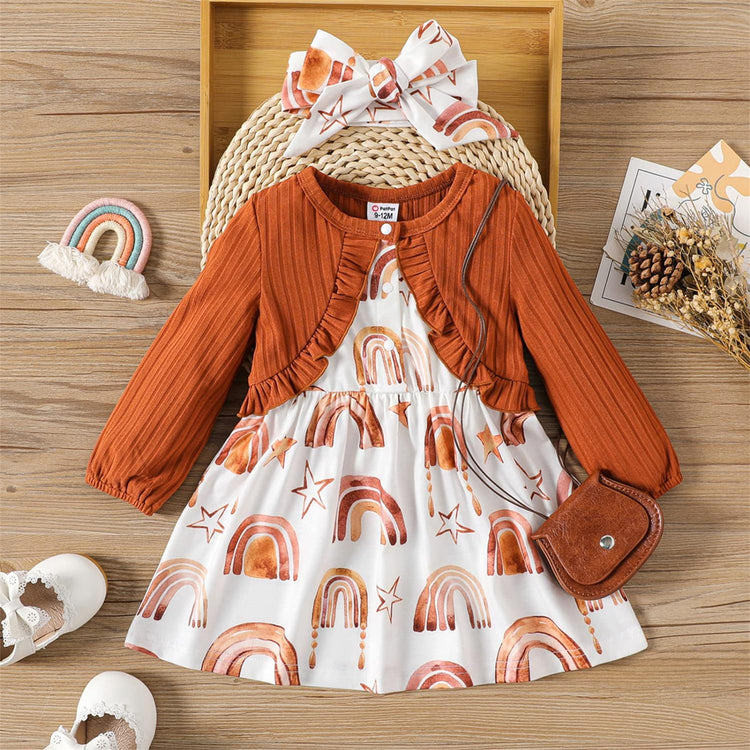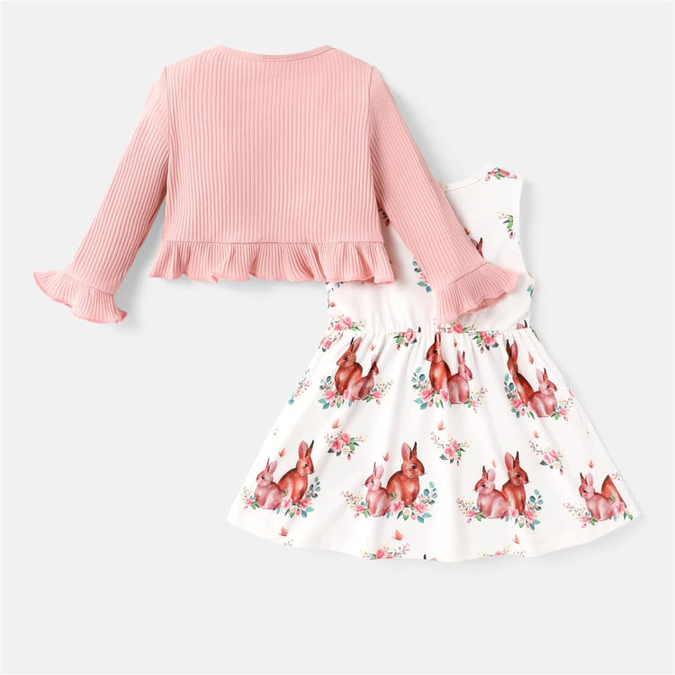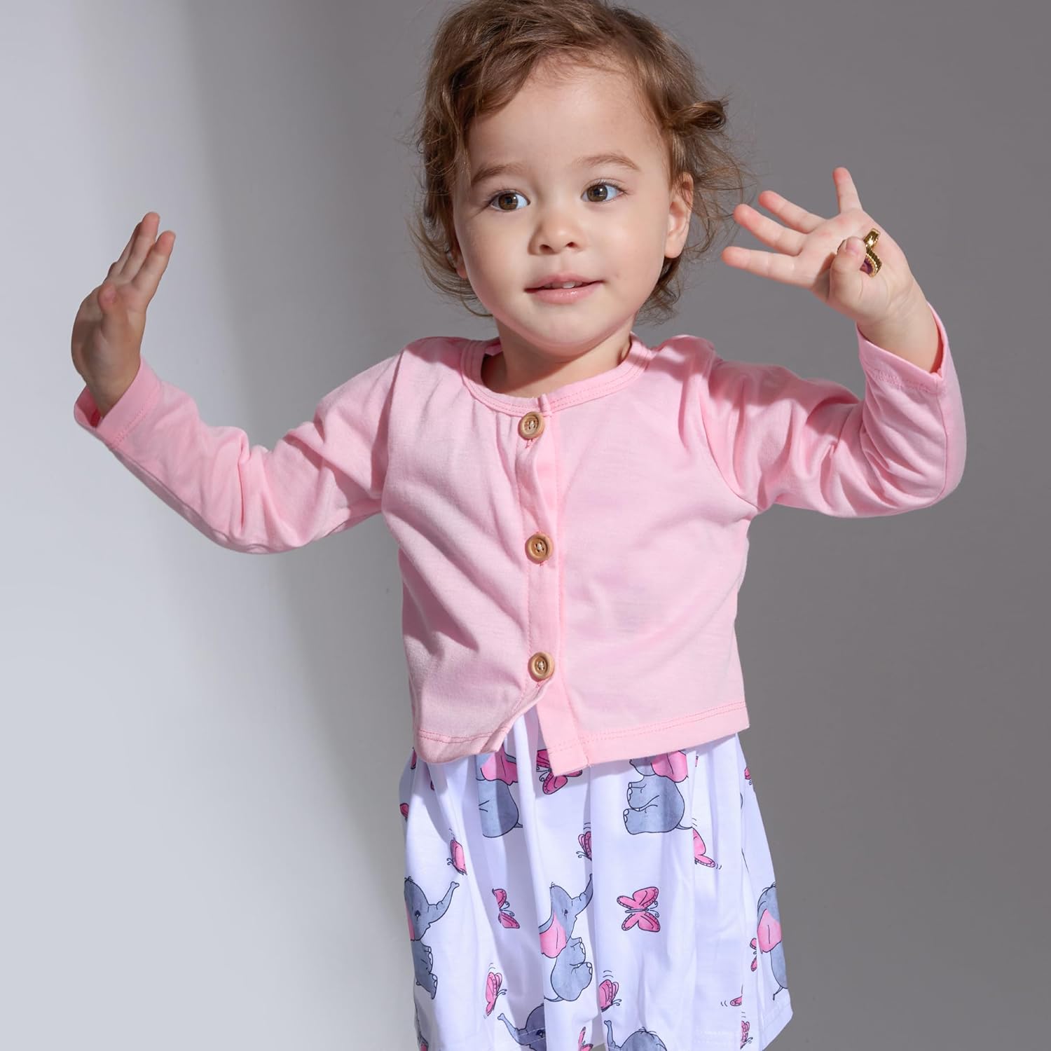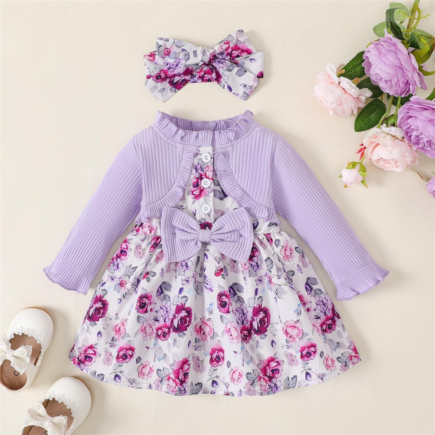 PATPAT Baby Girls Dress and Cardigan Sets 2 PCS Toddler Girl Sunflower Print Sleeveless Dress and Long Sleeve Cardigan Set