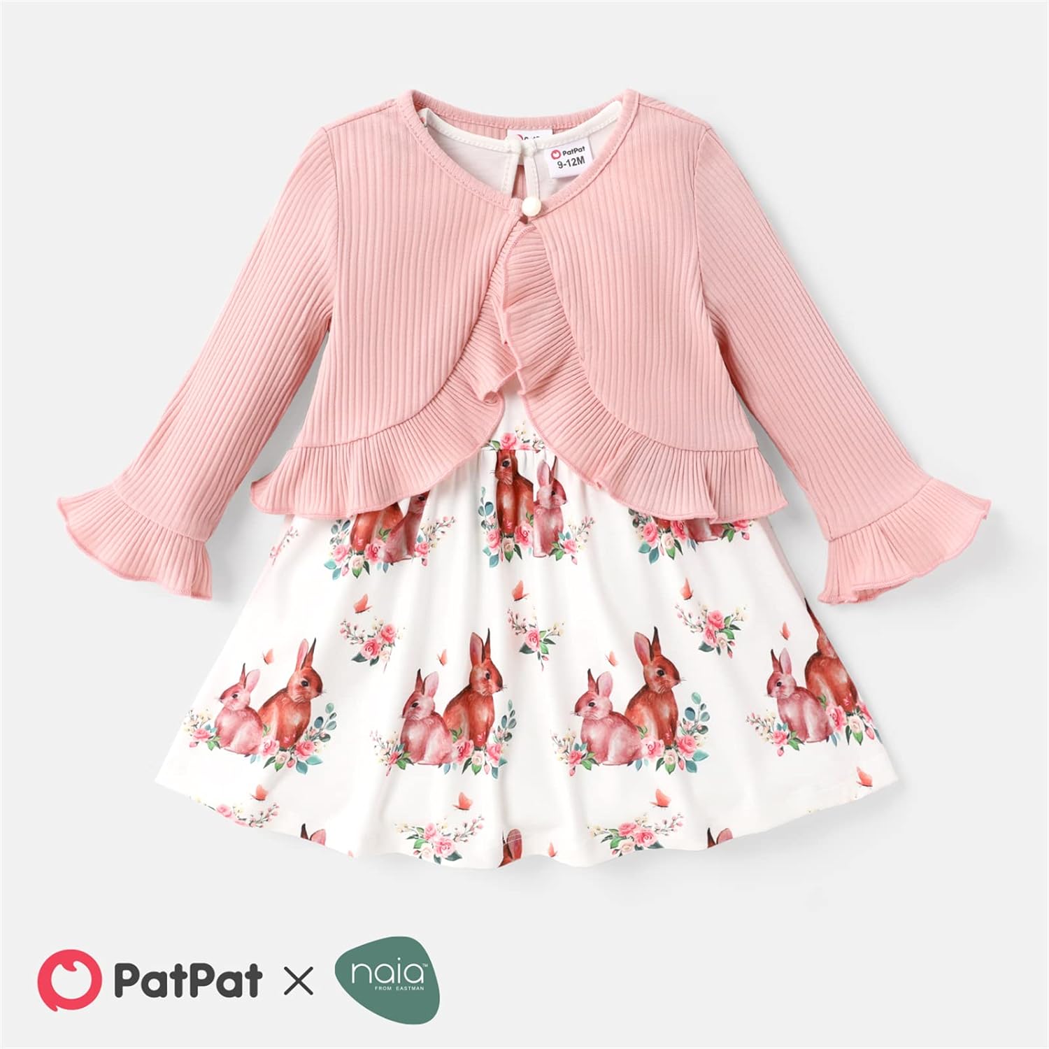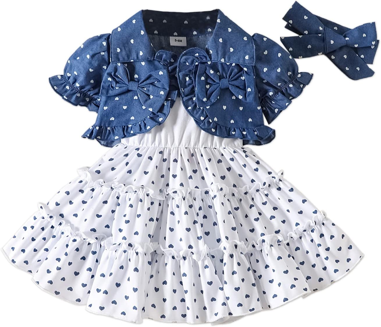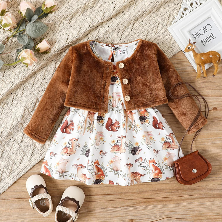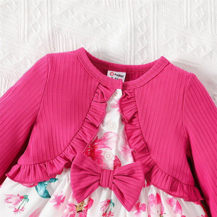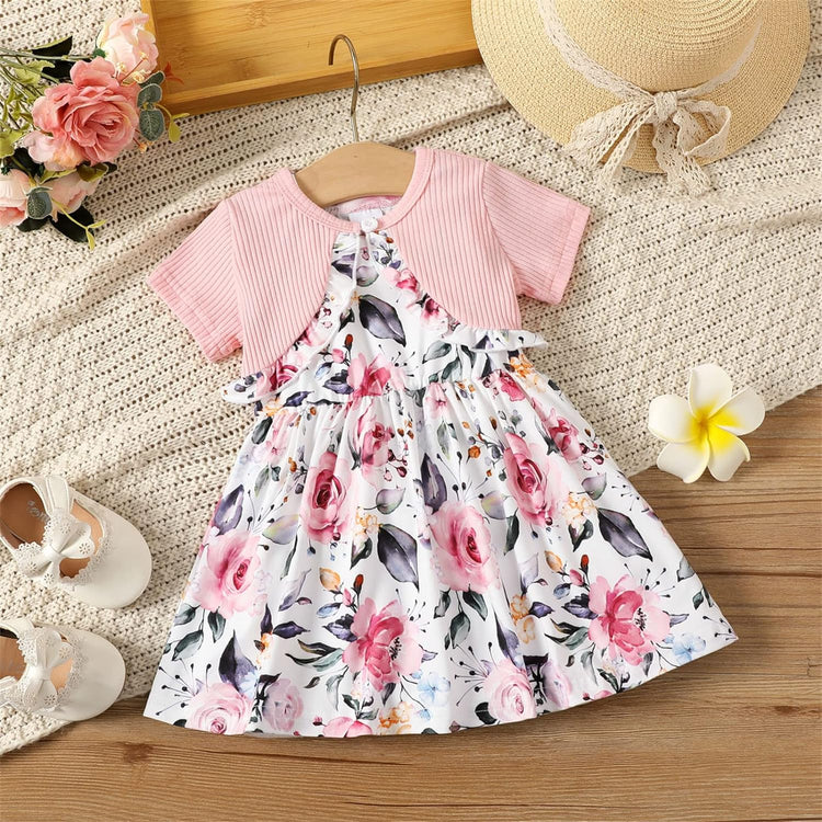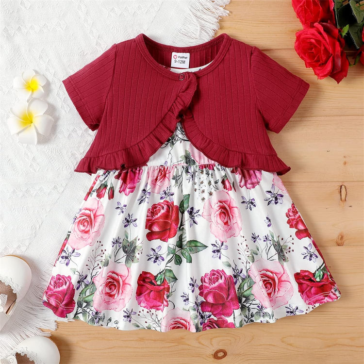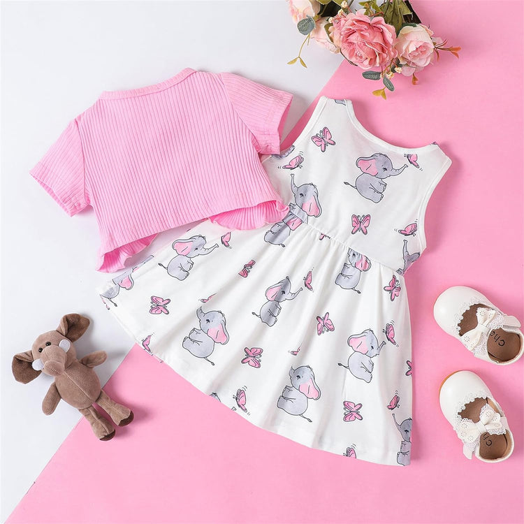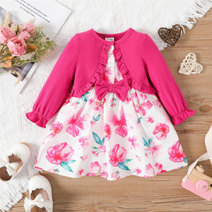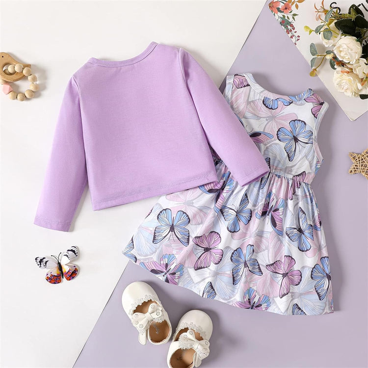 PATPAT Baby Girls Dress and Cardigan Sets 2 PCS Toddler Girl Sunflower Print Sleeveless Dress and Long Sleeve Cardigan Set