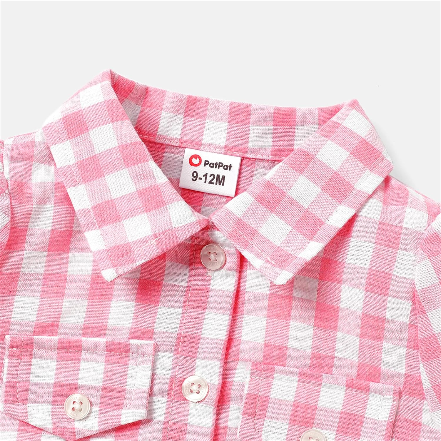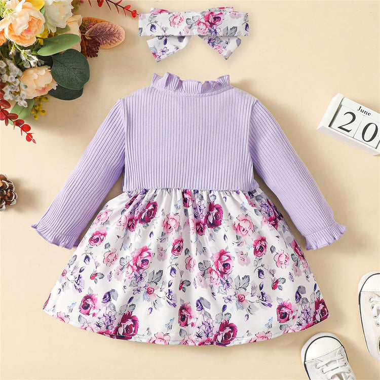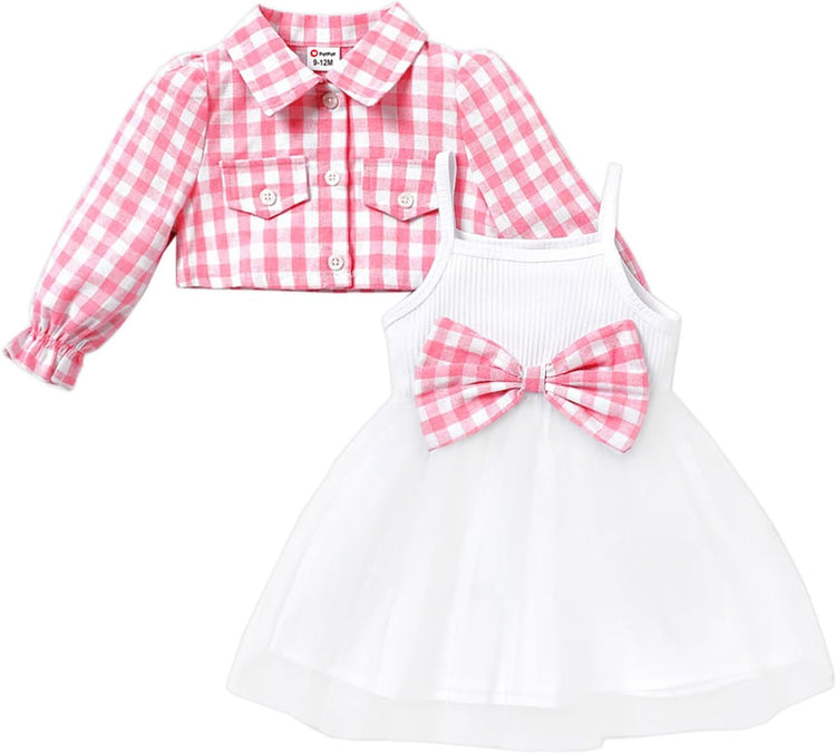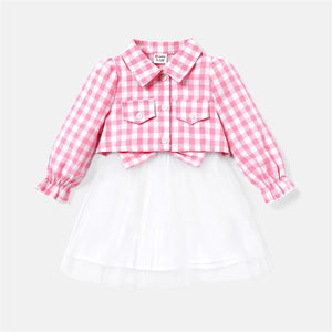 Baby Girl's Long Sleeve Plaid Bowknot Belt A-Line Swing Pocket Dress