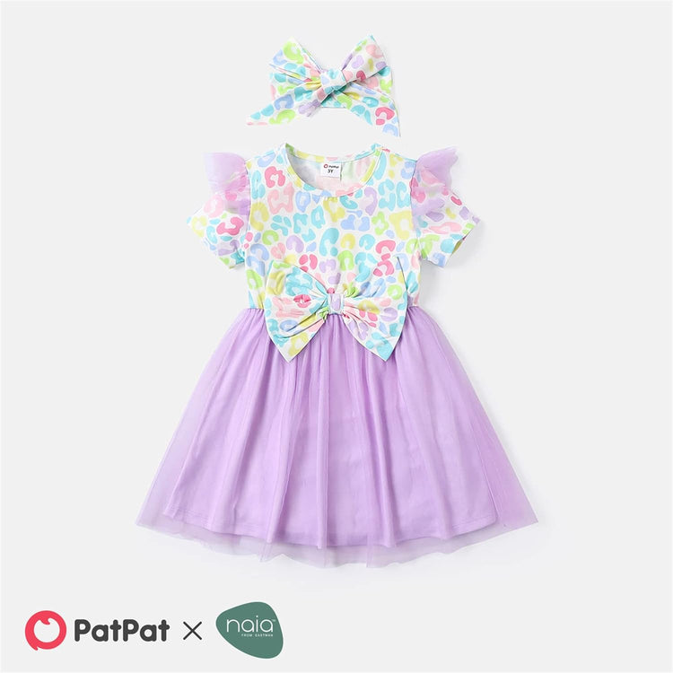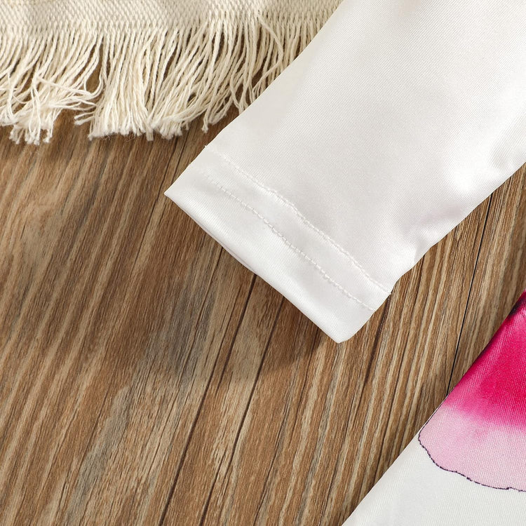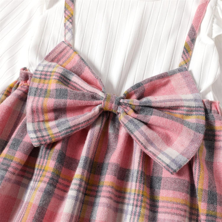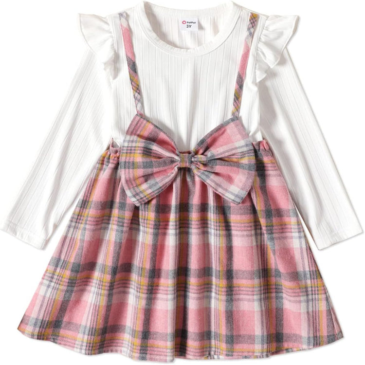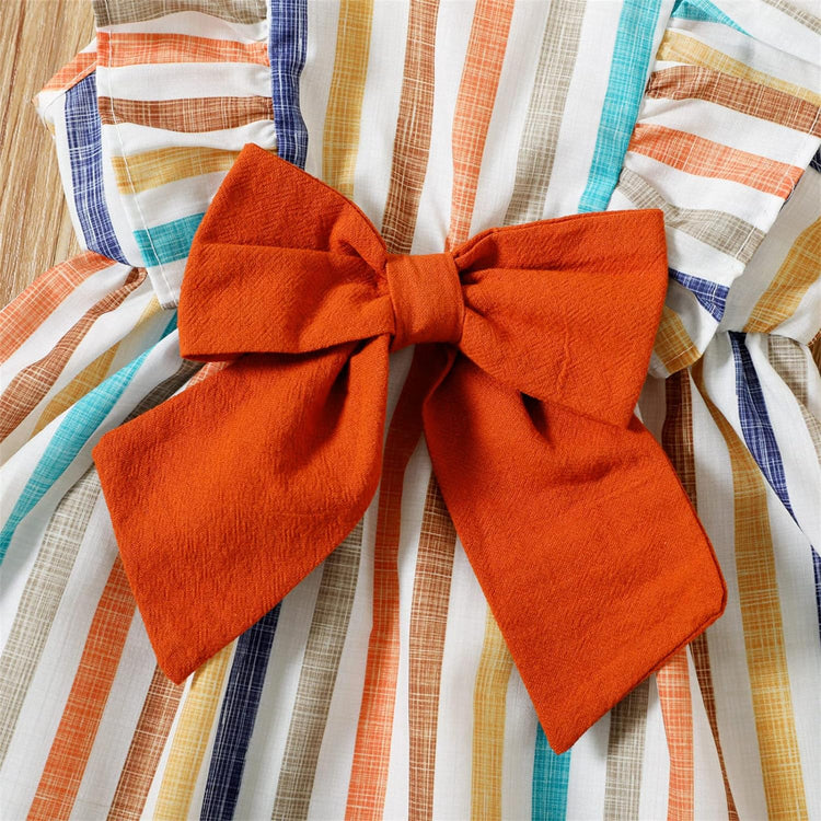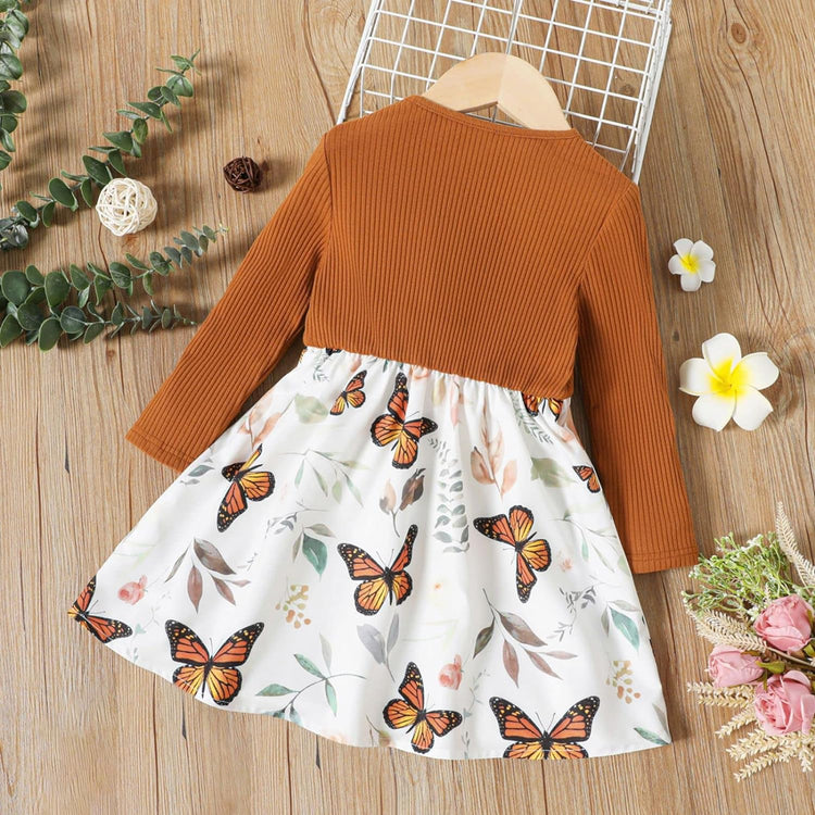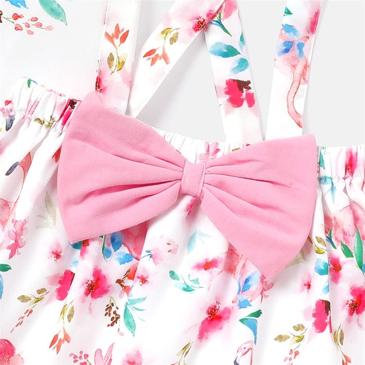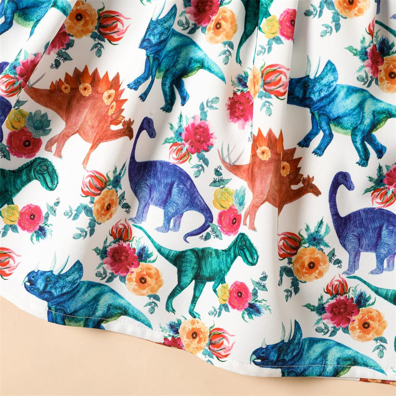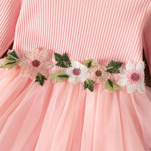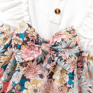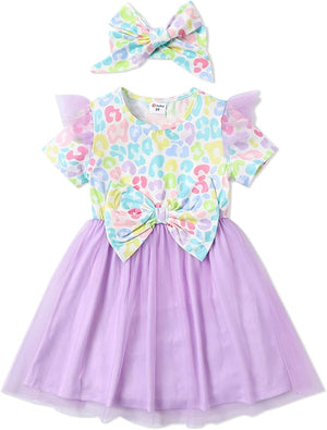 PATPAT Baby Toddler Floral Print Bowknot Dress Colorblock Round Neck Long Sleeves Fall Dress for Girls
