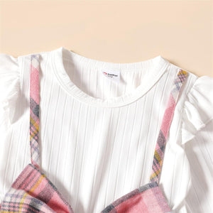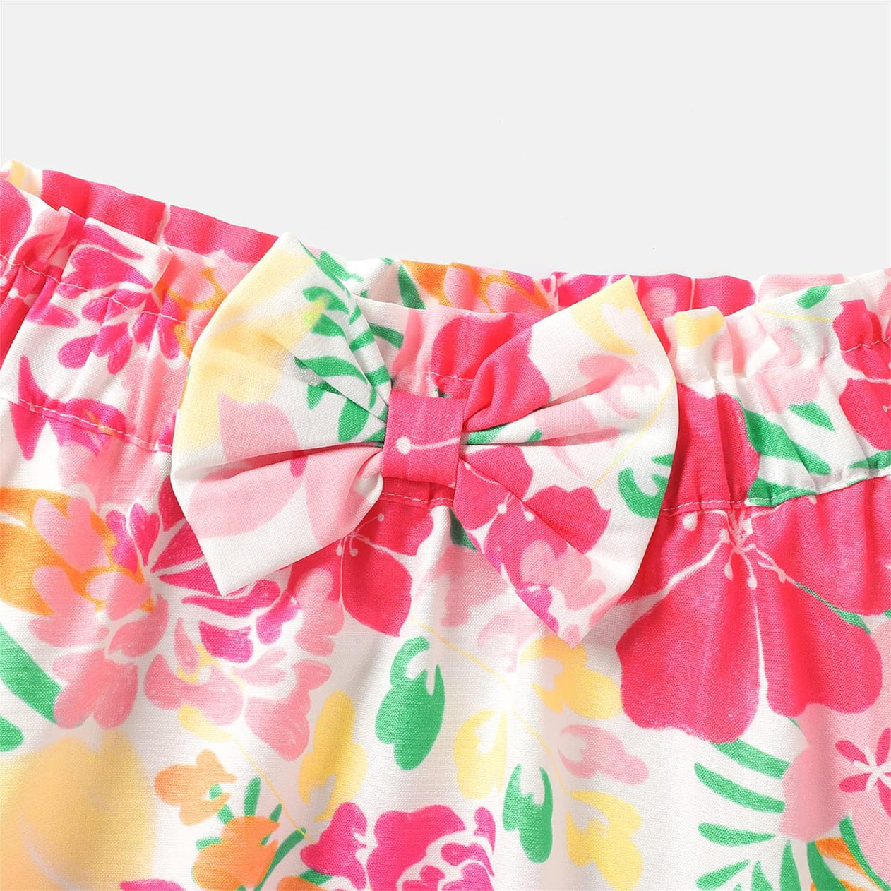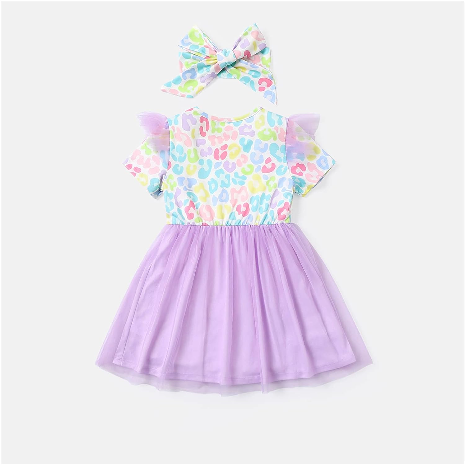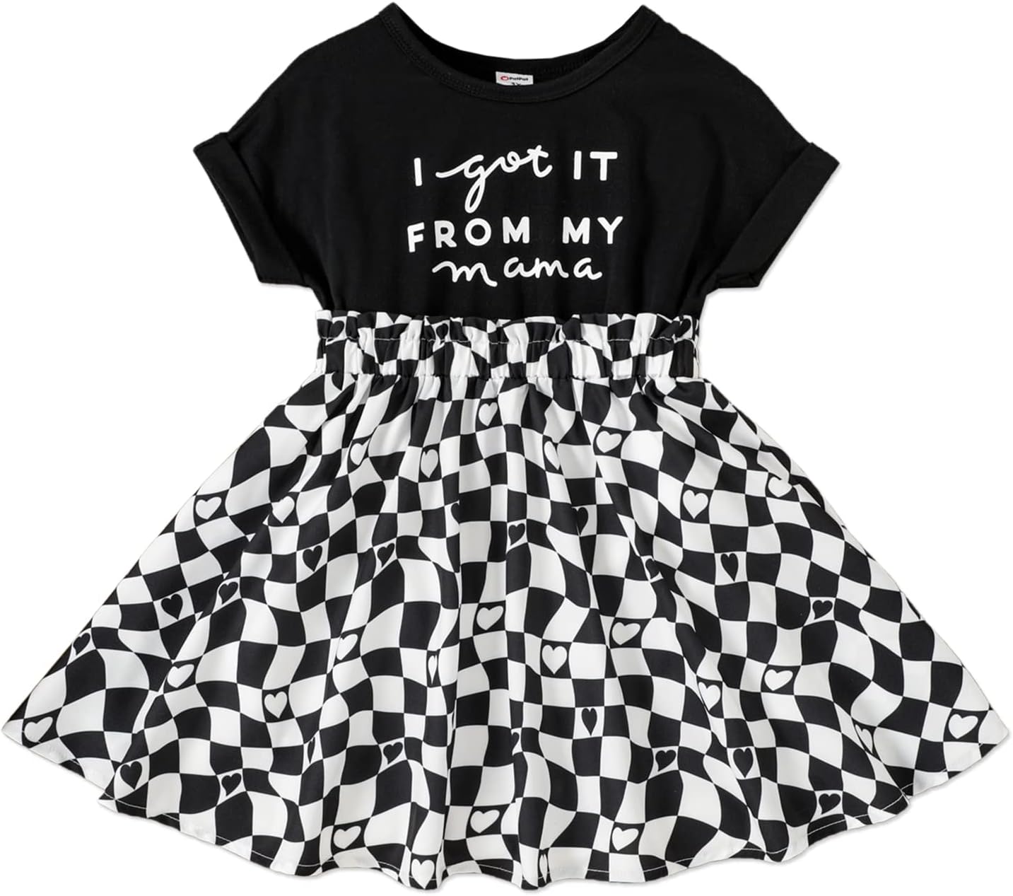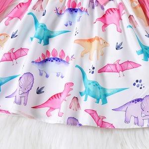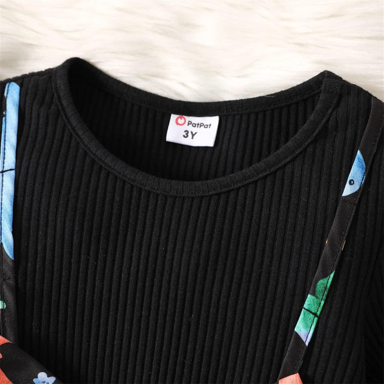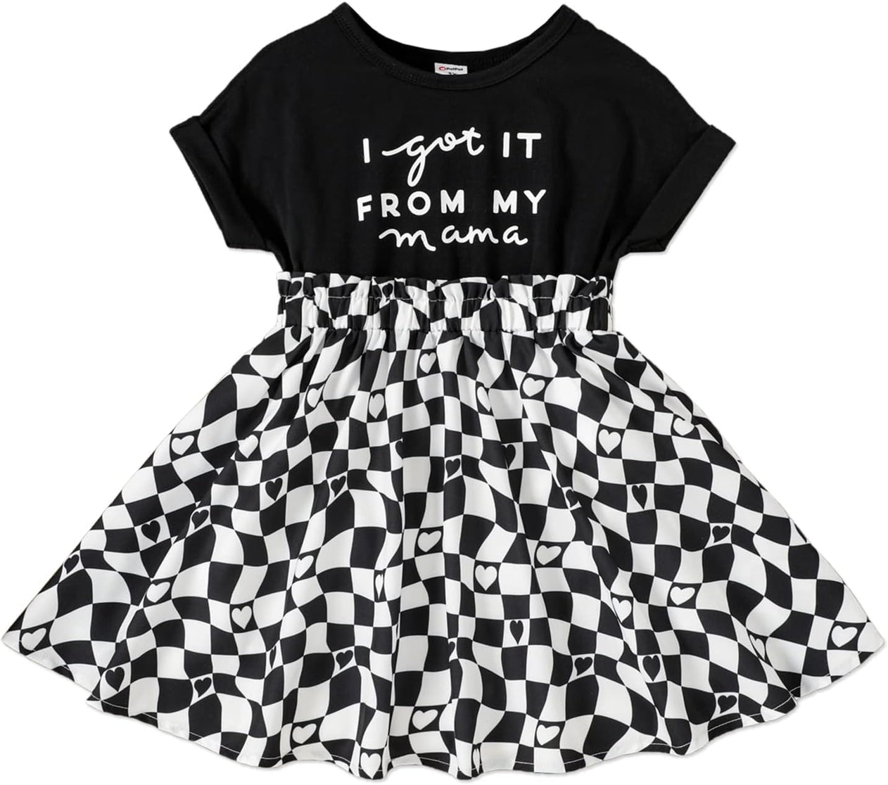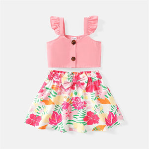 PATPAT Baby Toddler Floral Print Bowknot Dress Colorblock Round Neck Long Sleeves Fall Dress for Girls