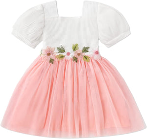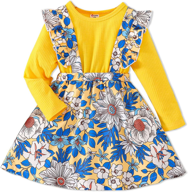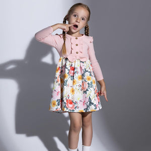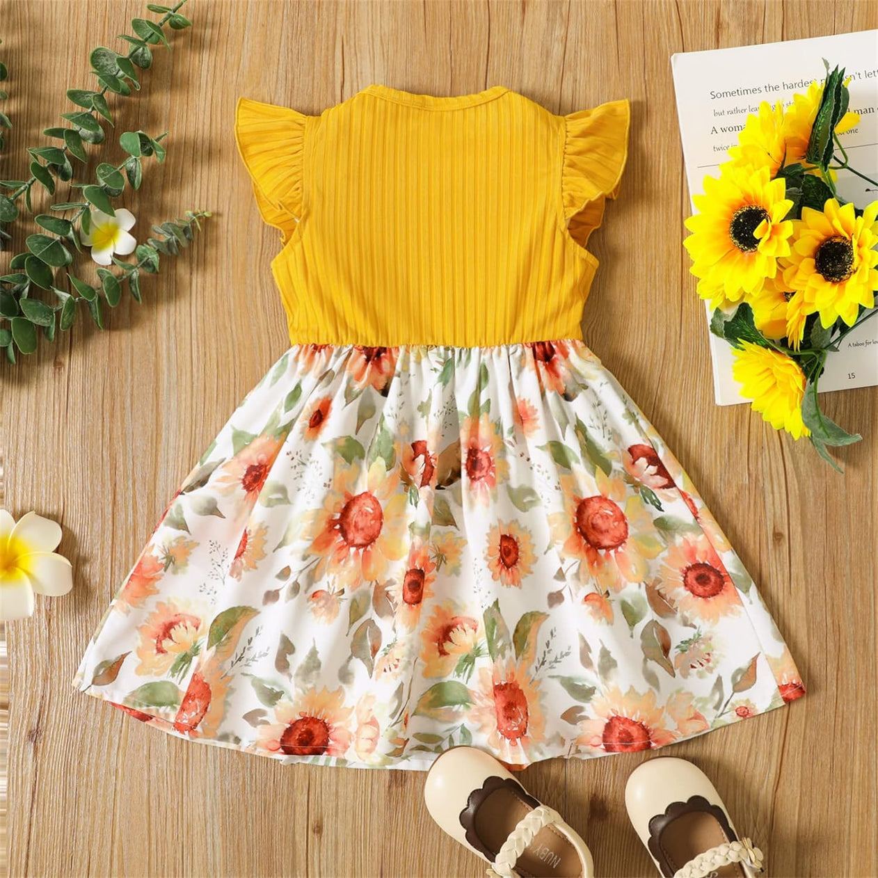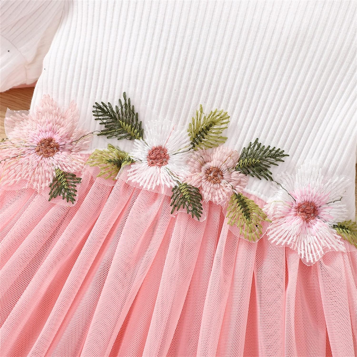 Design features: Baby toddler girls' flower skater dress designed with a-line skirt ,floral tops, long-sleeve, ruffles shoulder and texture fabric. dress up your little girls adorable and appealing in the party .Make this dress perfect for festival or daily.The best choice for fashionable moms.