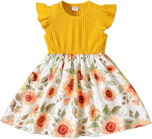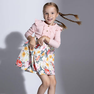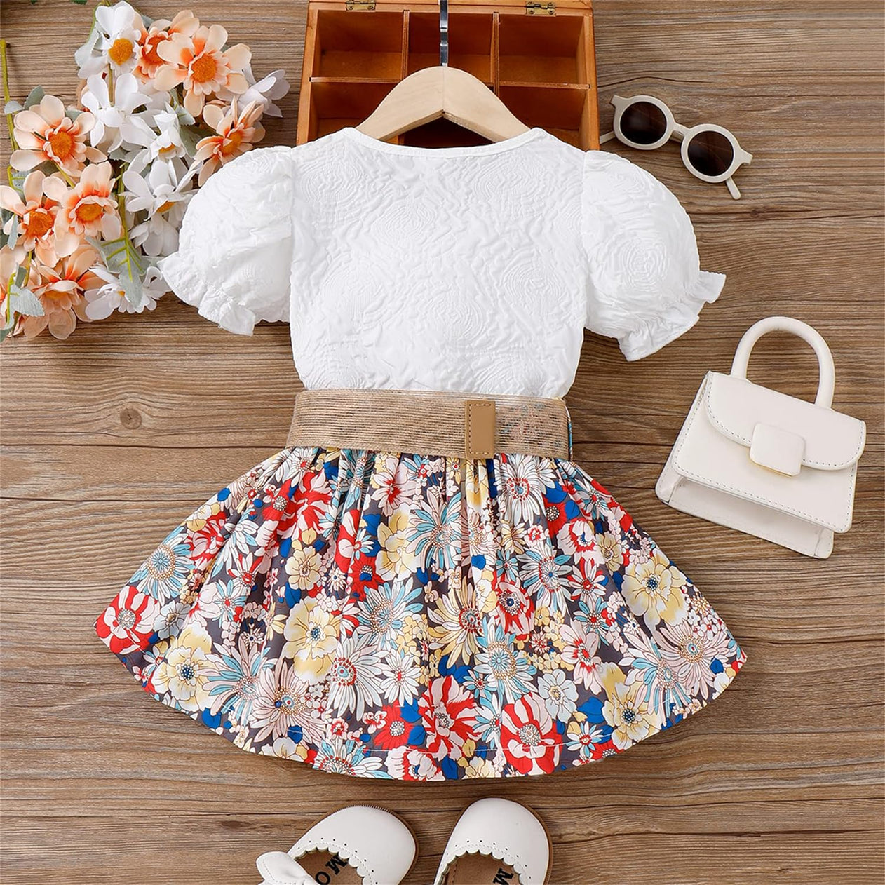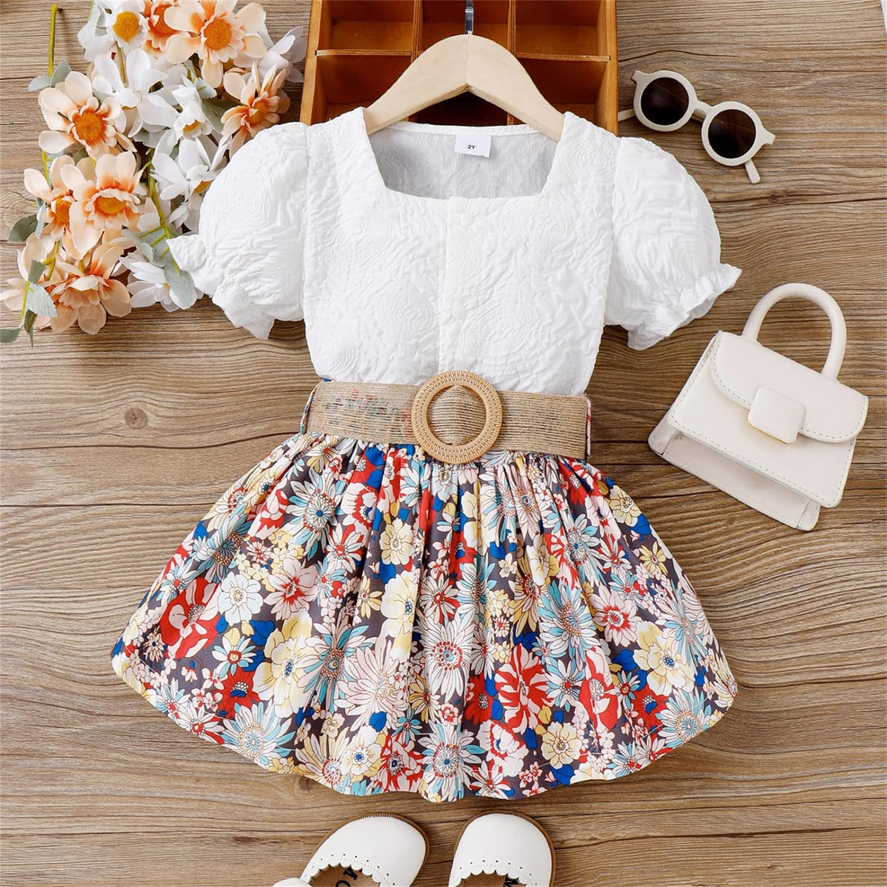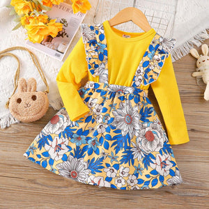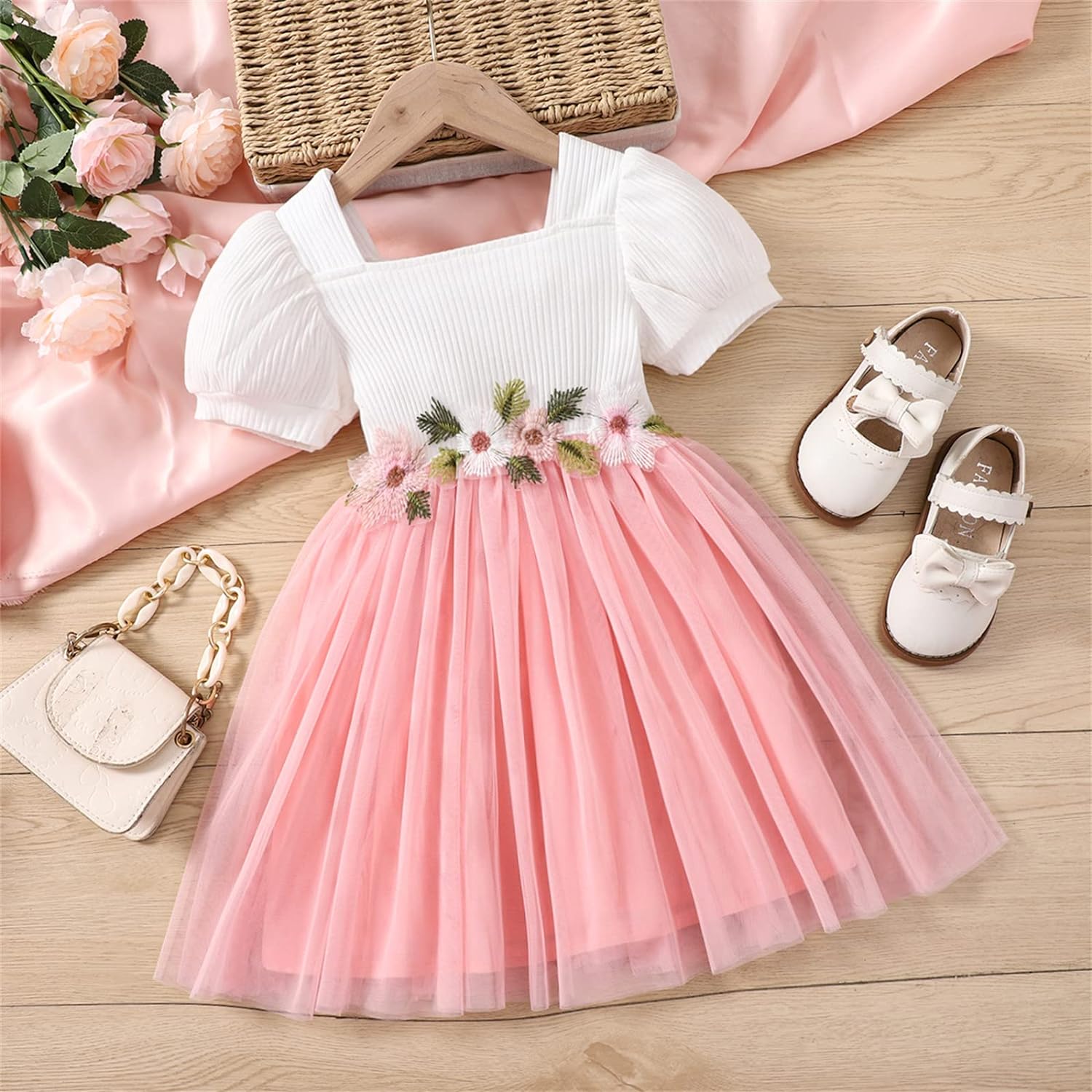 Design features: Baby toddler girls' flower skater dress designed with a-line skirt ,floral tops, long-sleeve, ruffles shoulder and texture fabric. dress up your little girls adorable and appealing in the party .Make this dress perfect for festival or daily.The best choice for fashionable moms.
