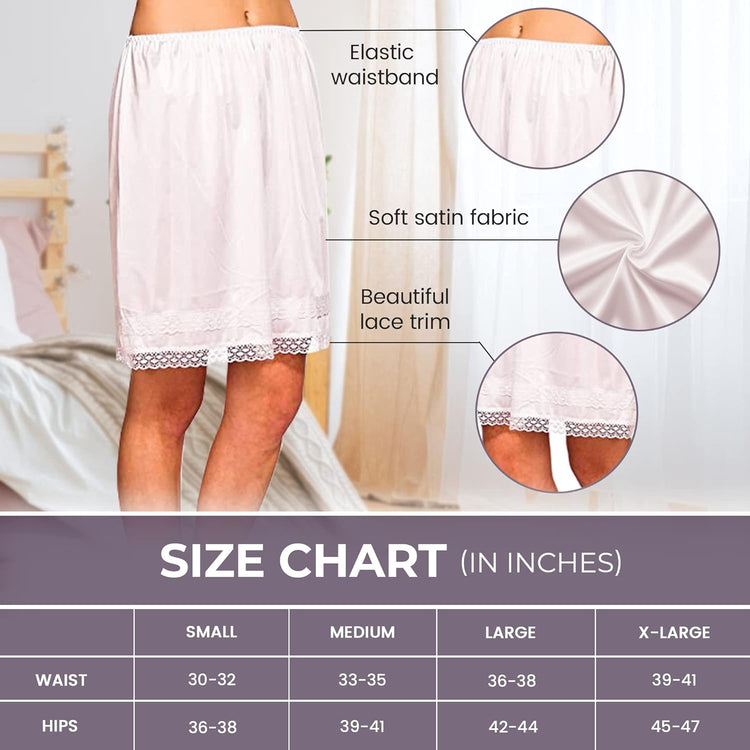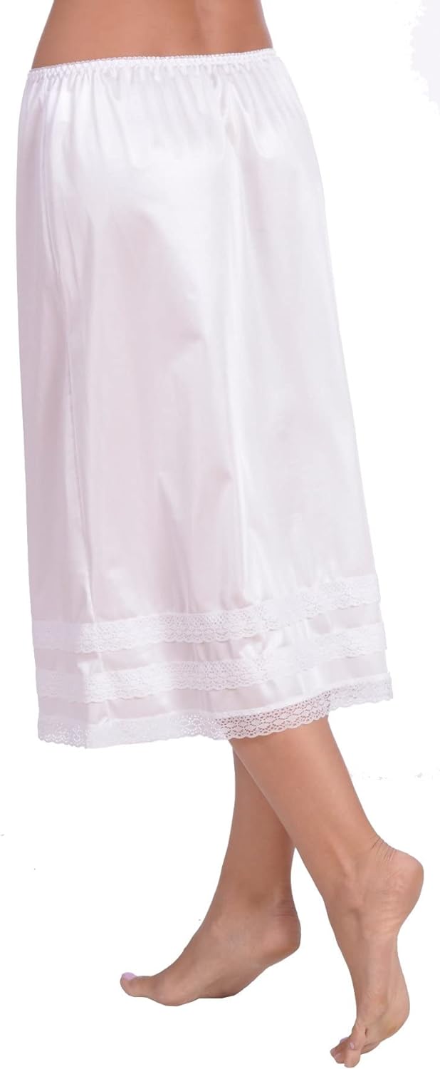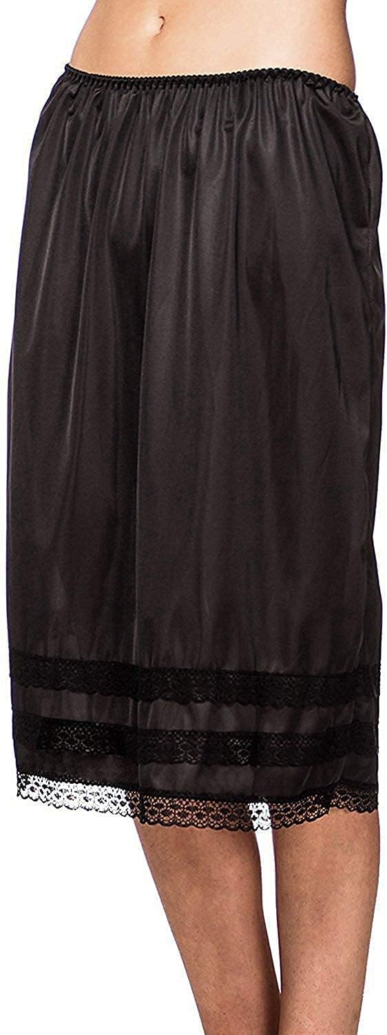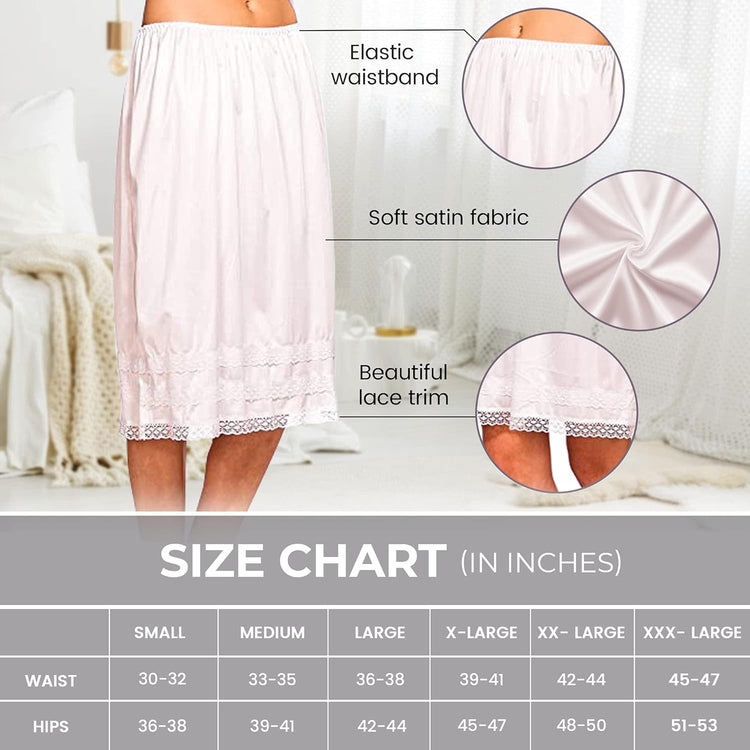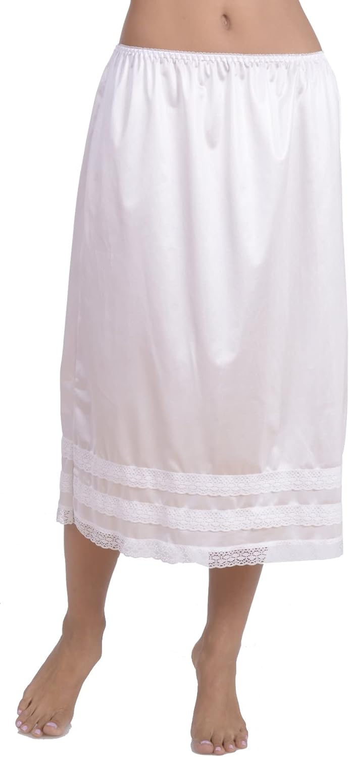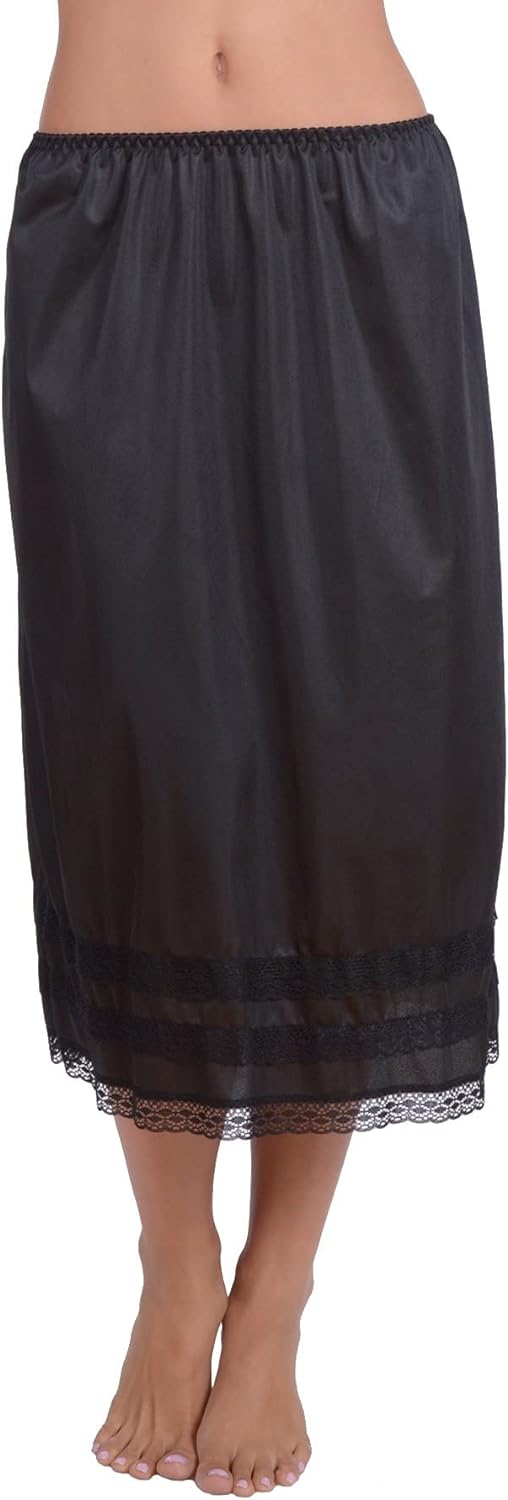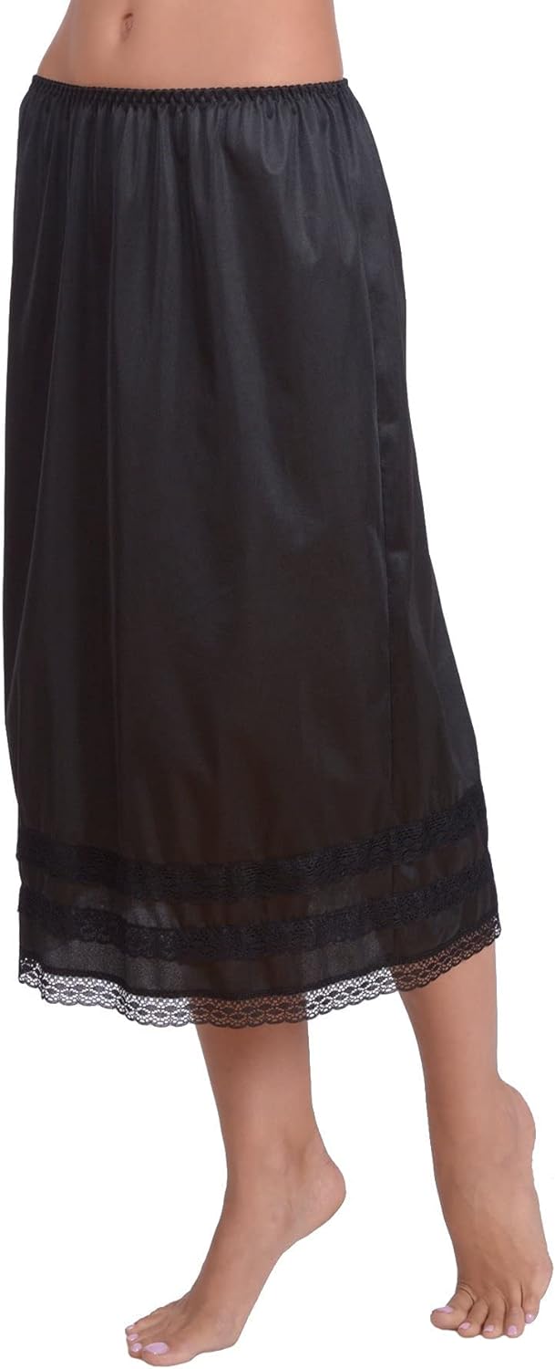 Patricia Lingerie Women's Soft Satin Snip It Half Slip Custom Length Cling Free with Lace Trim, Elastic Waistband