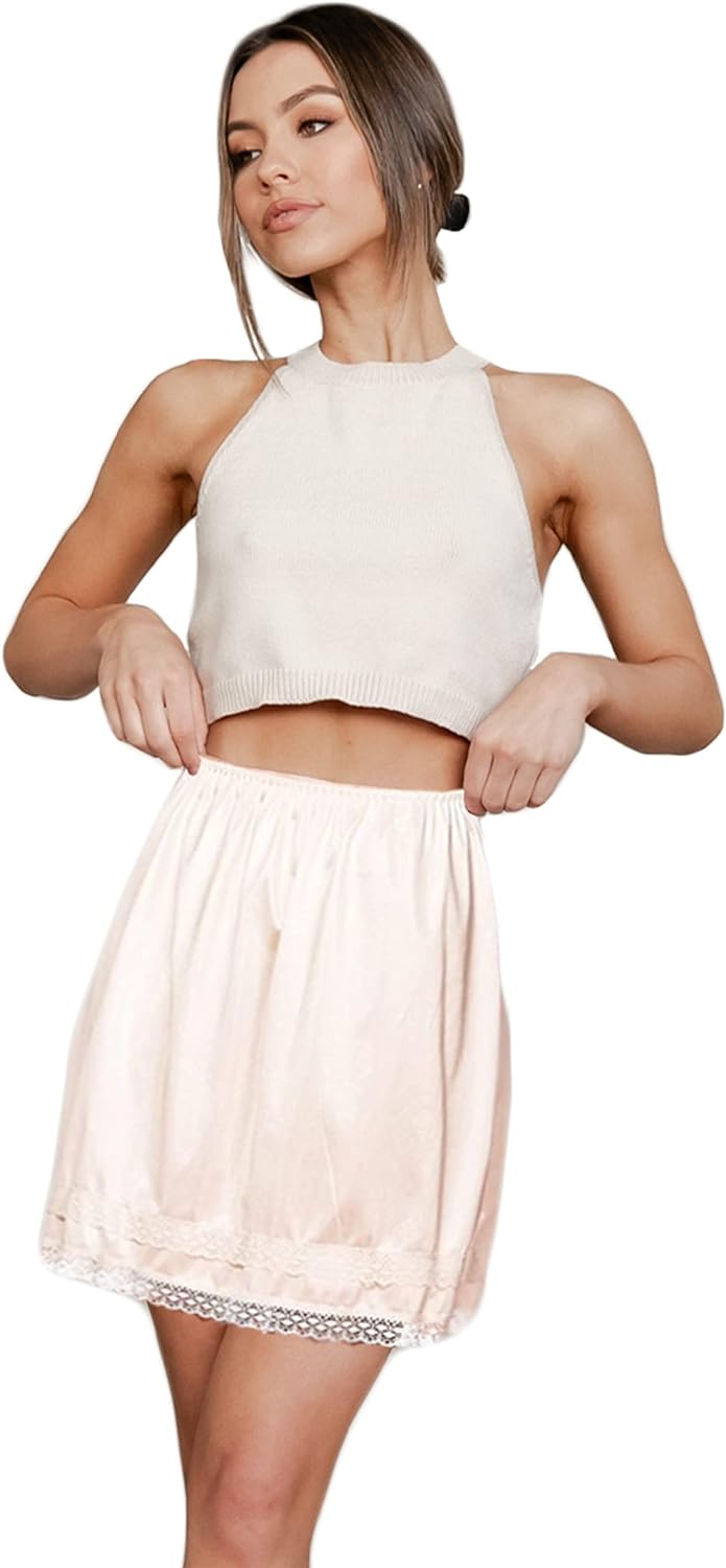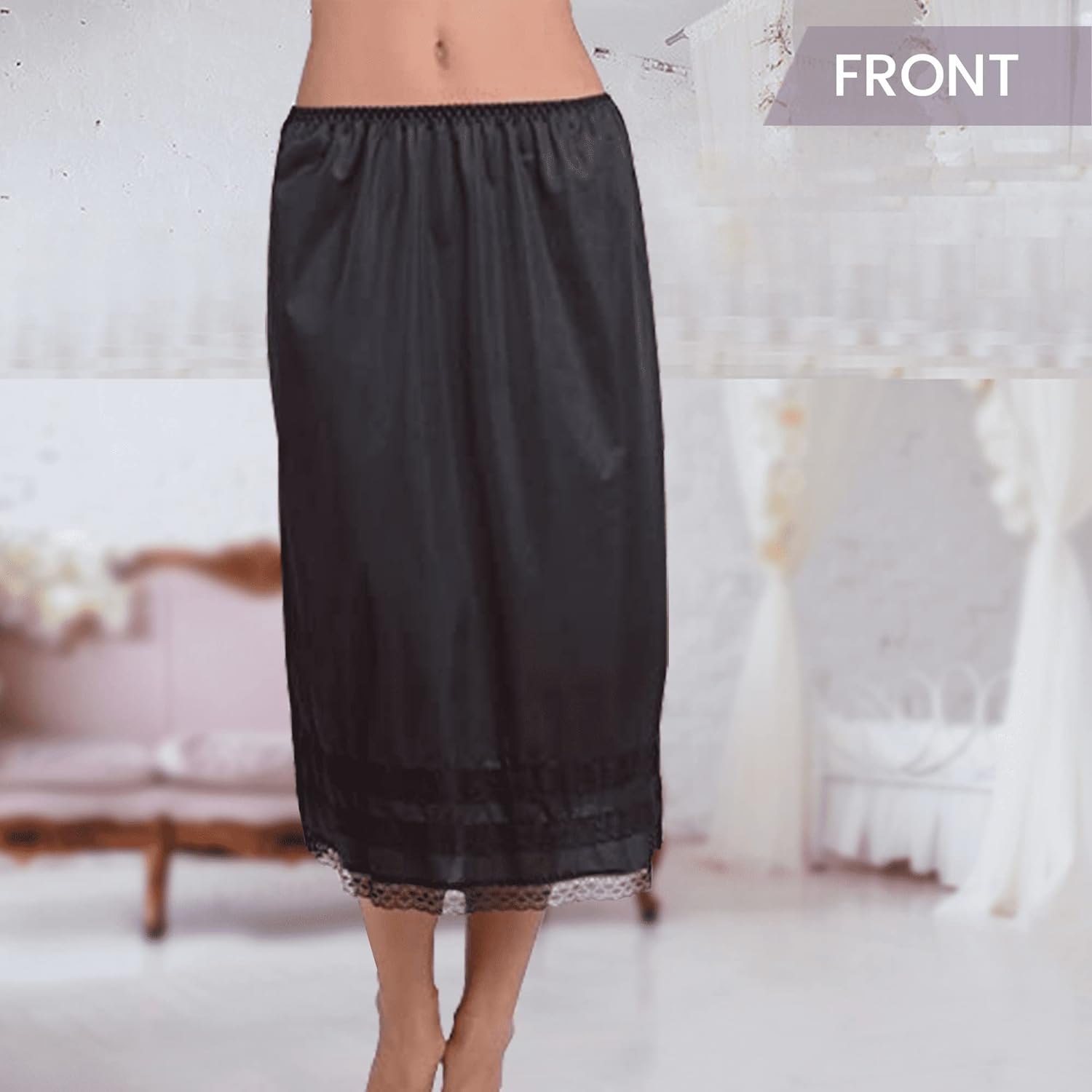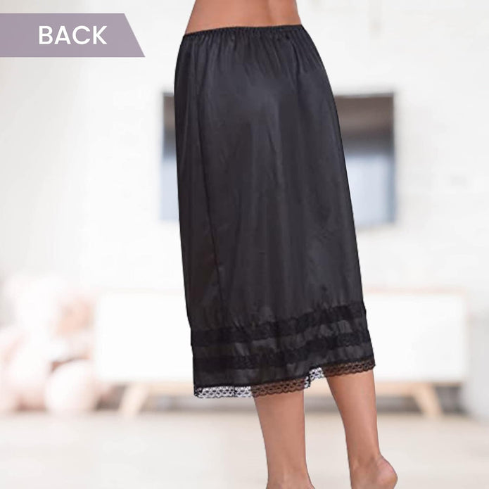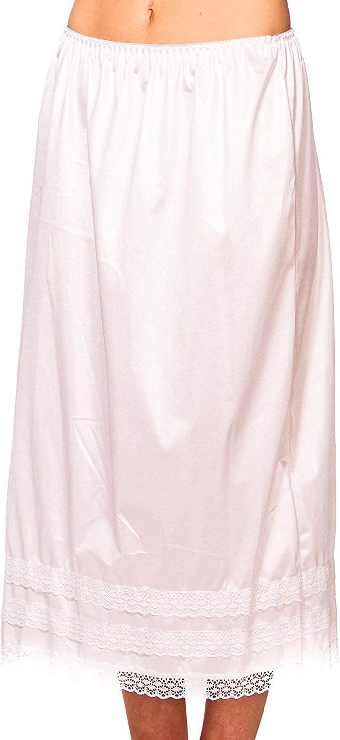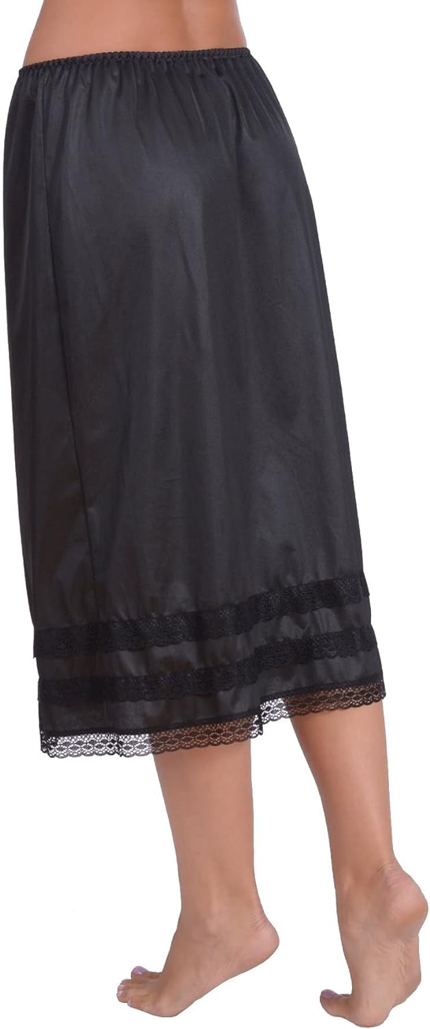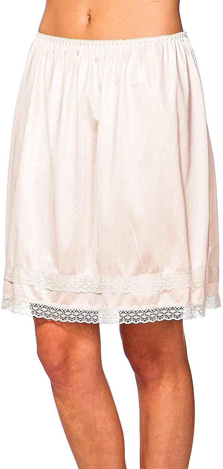 Patricia Lingerie Women's Soft Satin Snip It Half Slip Custom Length Cling Free with Lace Trim, Elastic Waistband