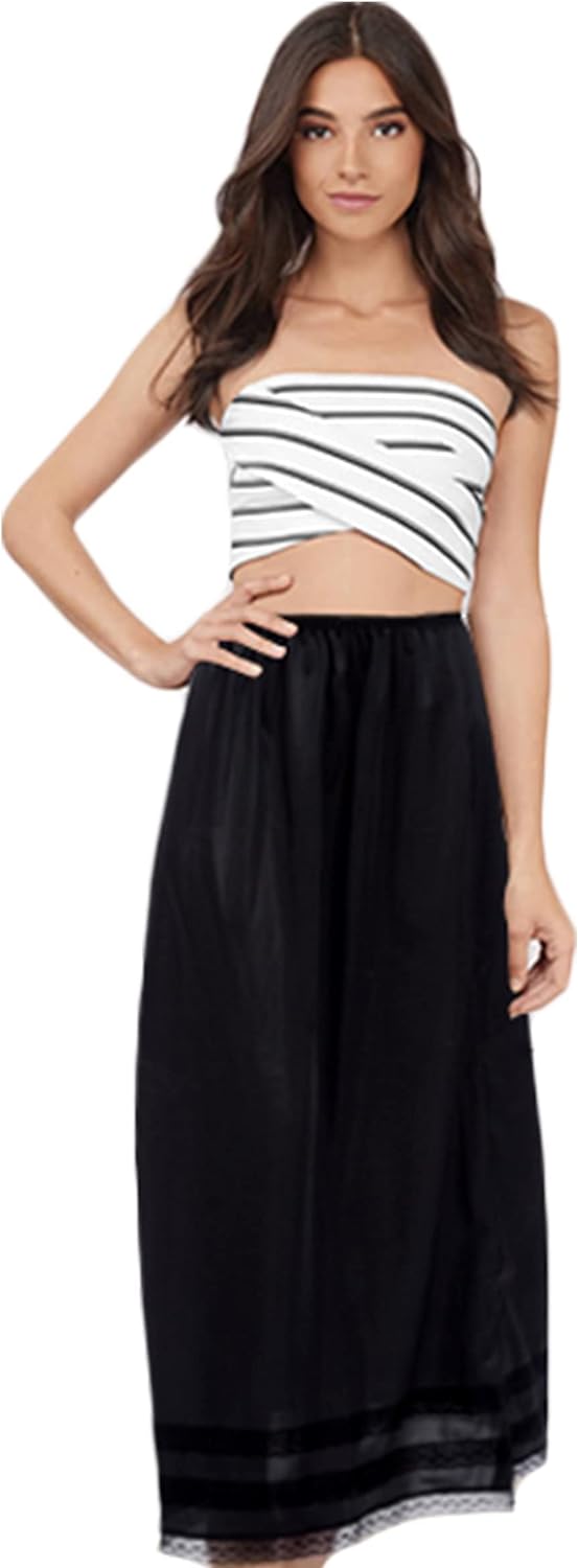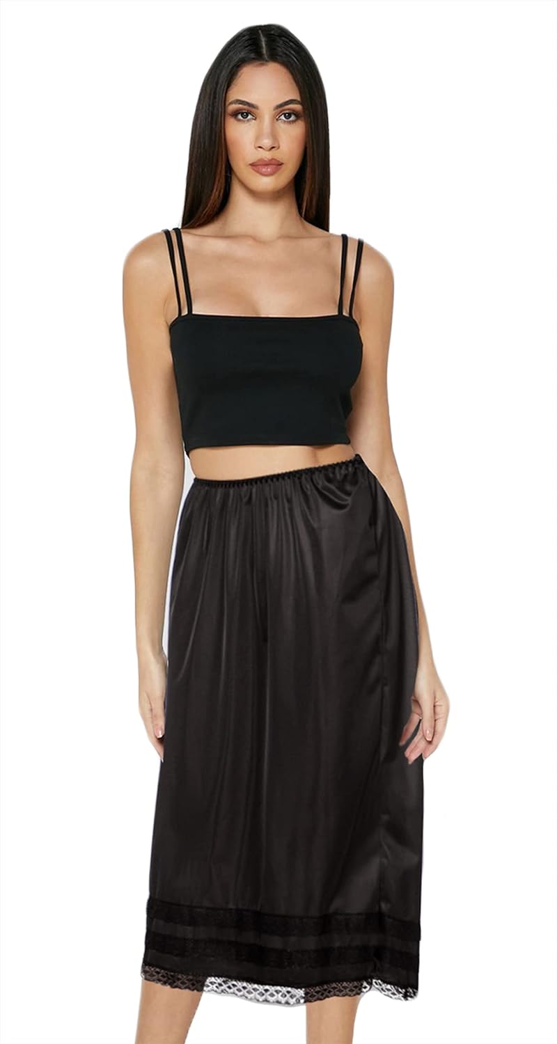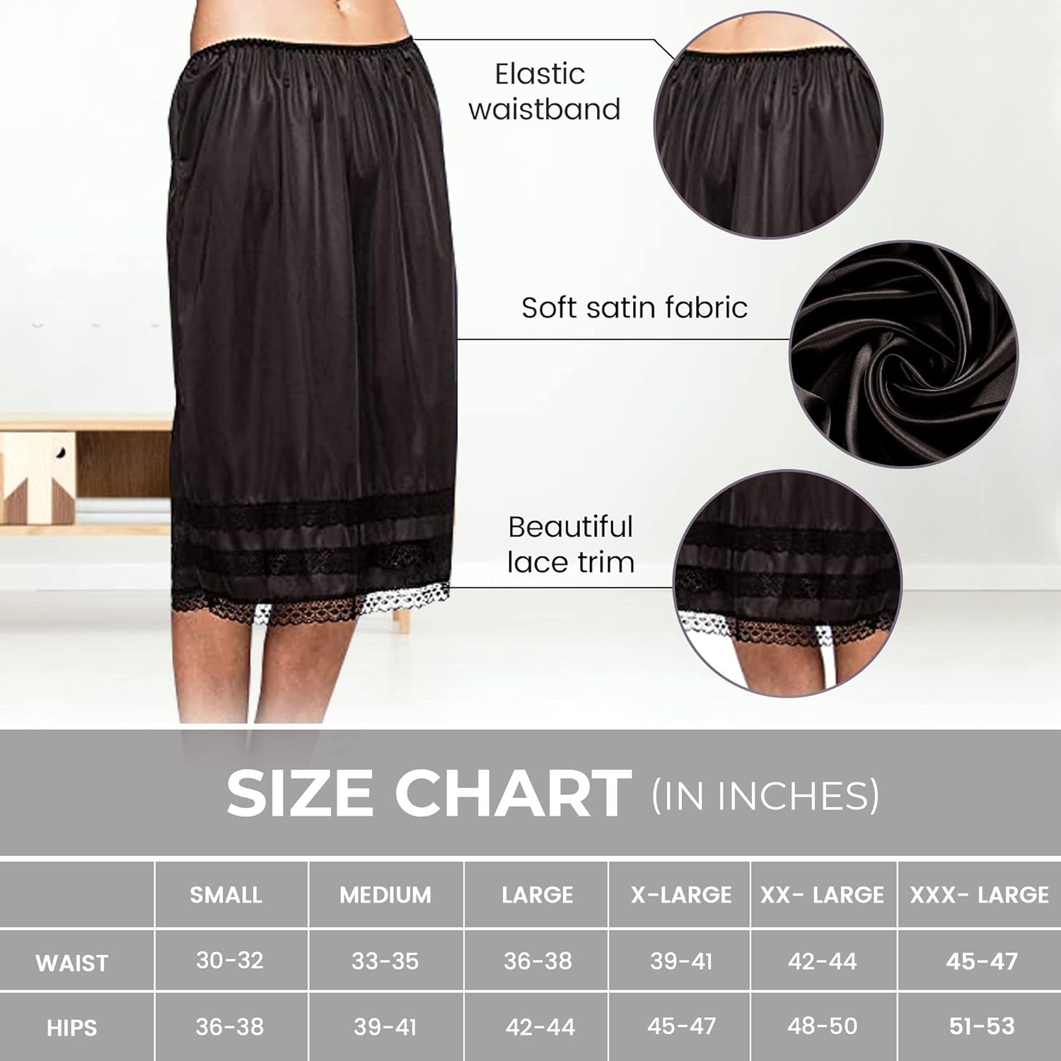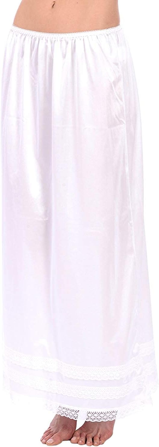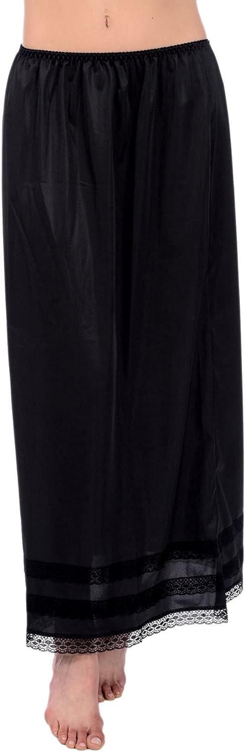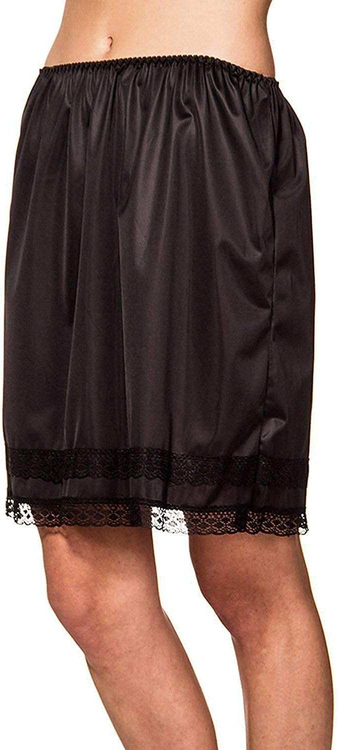 Patricia Lingerie Women's Soft Satin Snip It Half Slip Custom Length Cling Free with Lace Trim, Elastic Waistband
