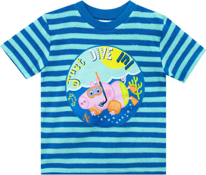 Introducing our Boys George Pig T-Shirt and Shorts Set – the ultimate summer ensemble for young fans of George Pig! This officially licensed George Pig clothing is designed to keep your little adventurer comfortable, stylish, and ready for some sunny fun. Crafted with care, this set features a vibrant George Pig beach shirt adorned with a playful design and paired with coordinating shorts. The t-shirt and shorts are made from a soft and breathable fabric that's perfect for boys' summer clothing. Whether your child is playing in the backyard or hitting the beach, this outfit will keep them cool and comfortable all day long. The quick-drying properties of the fabric make it ideal for beach adventures. Your little one can splash in the waves, build sandcastles, or explore rock pools without worrying about damp clothes. Plus, the easy-care nature of this Boys George Pig clothing ensures effortless maintenance, allowing you to spend more quality time with your child. Versatile and adaptable, this set is not only suitable for beach outings but also great for everyday wear. Let your child show off their love for George Pig while enjoying playdates, family outings, or simply relaxing at home. The comfortable fit and durable construction make it perfect for boys' summer clothing, providing freedom of movement and long-lasting quality. This George Pig T Shirt and Shorts is a must-have addition to your child's wardrobe. It's time to make your little one's summer adventures even more memorable with George Pig as their trusty companion. Order now and let the fun begin!