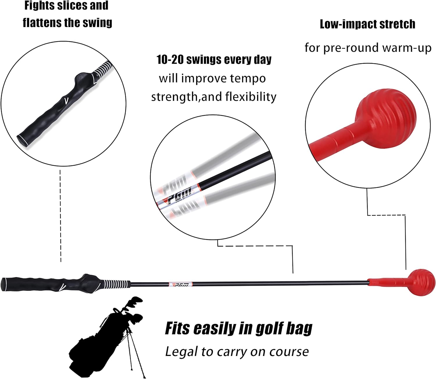 - 【STRENGTHEN SWING】 PGM golf swing improves and trains swing strength and muscle memory with its heavier head and counterweight system. Golfers can maximize their training with the power stick for all the speed and distance of the golf training stick! When you swing correct and strengthen enough, magnet will lose and hit the bottom to create sound
