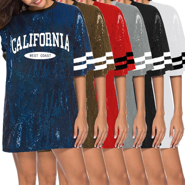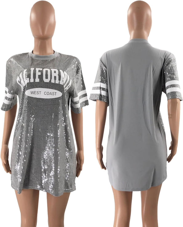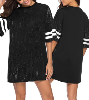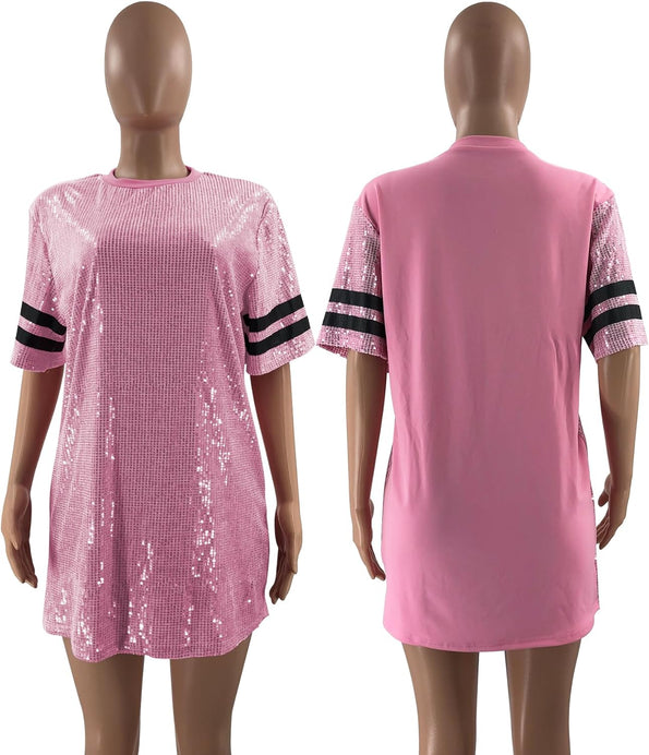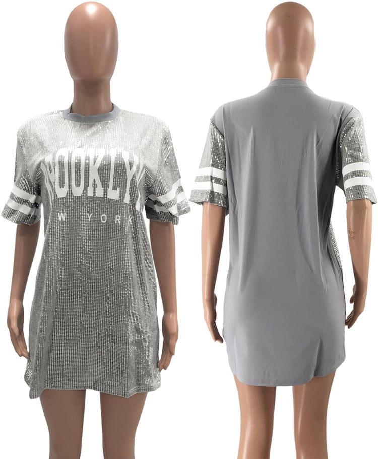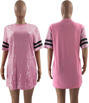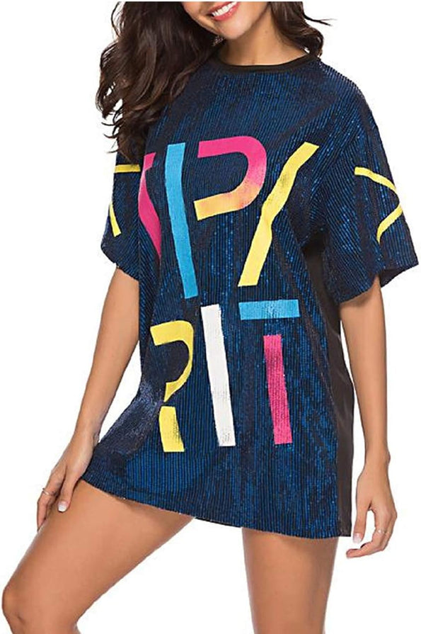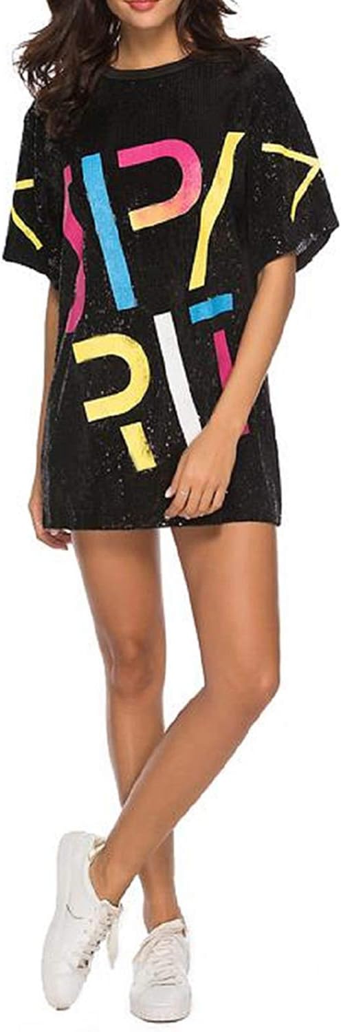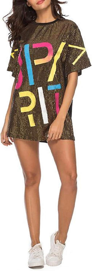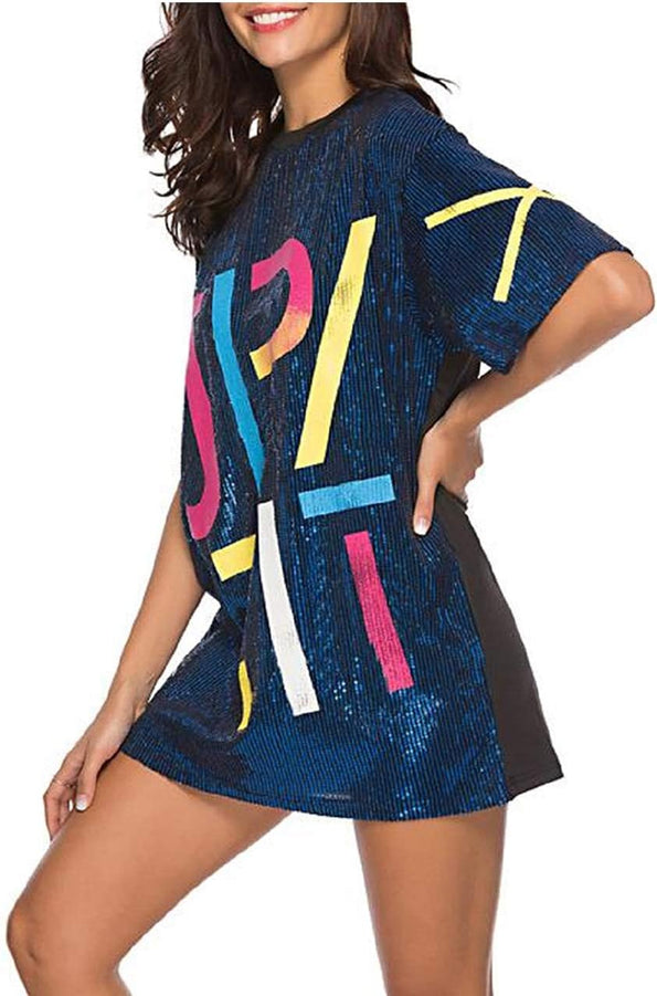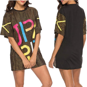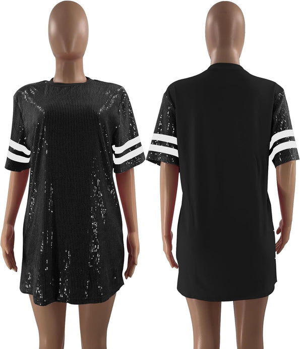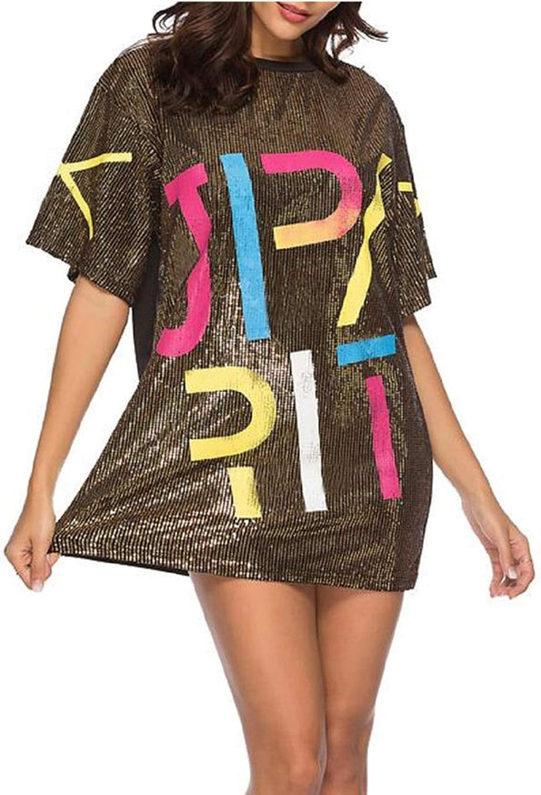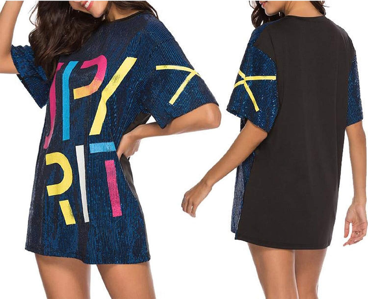 Sparkle sequin dress for women,fashionable tunic t shirt tops,loose style,clubwear short sleeve t shirt dress