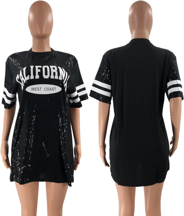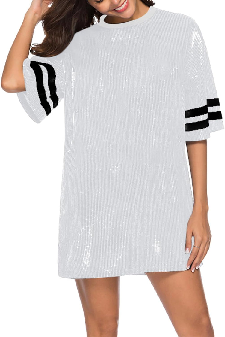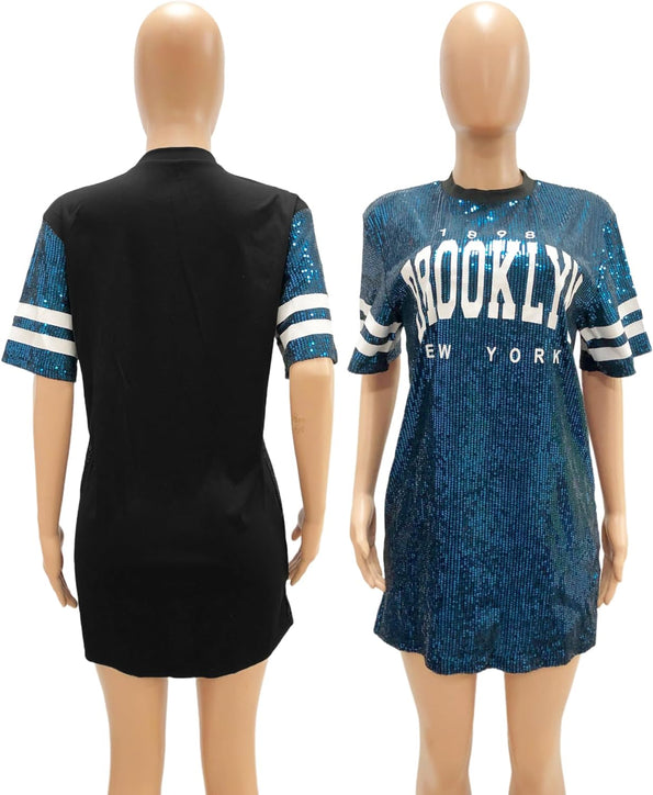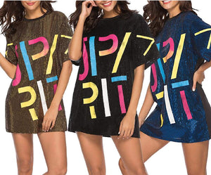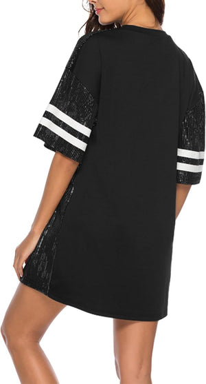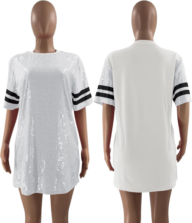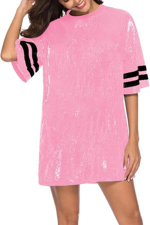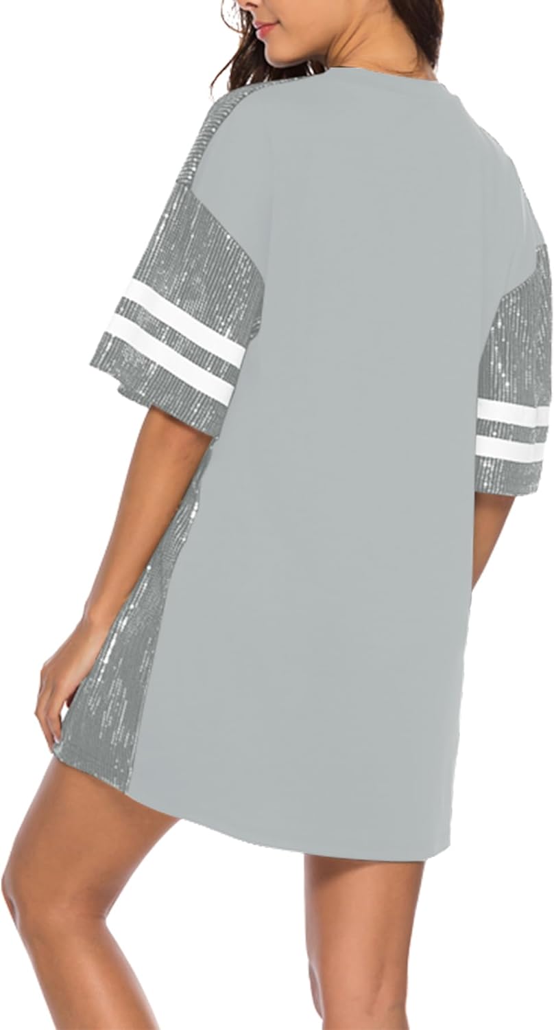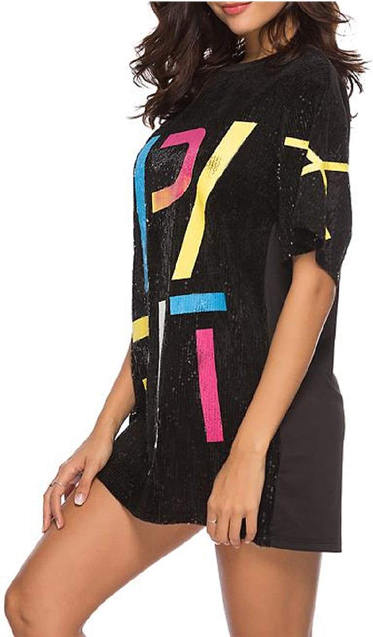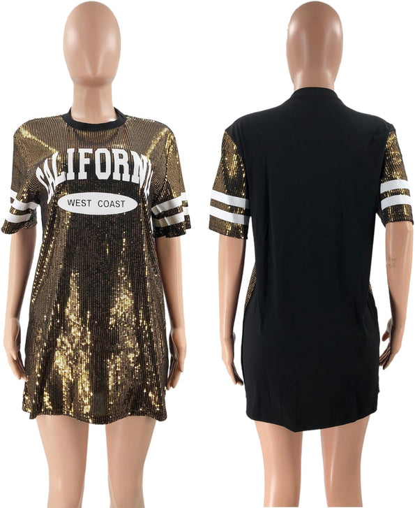 Sparkle sequin dress for women,fashionable tunic t shirt tops,loose style,clubwear short sleeve t shirt dress