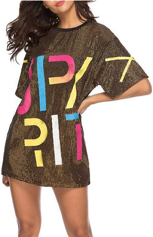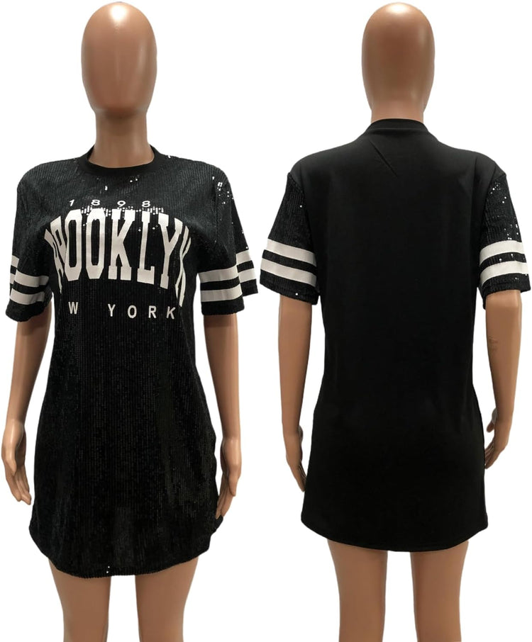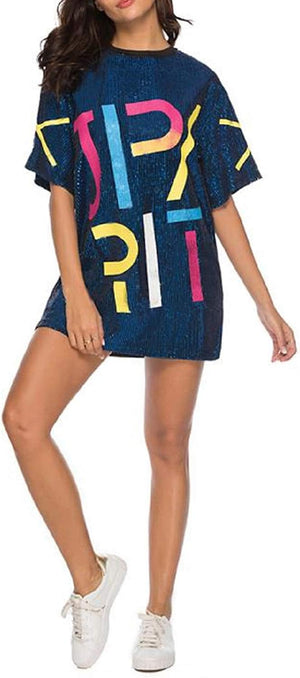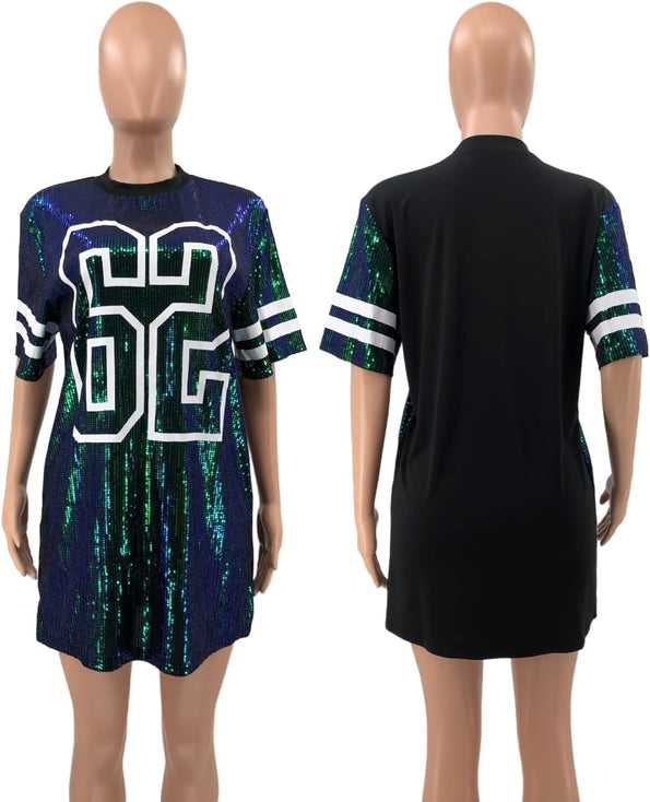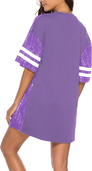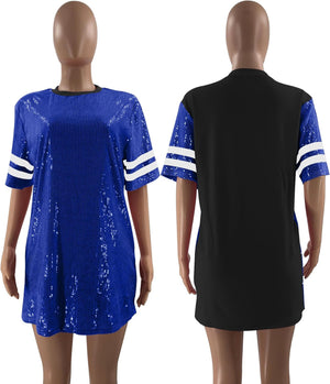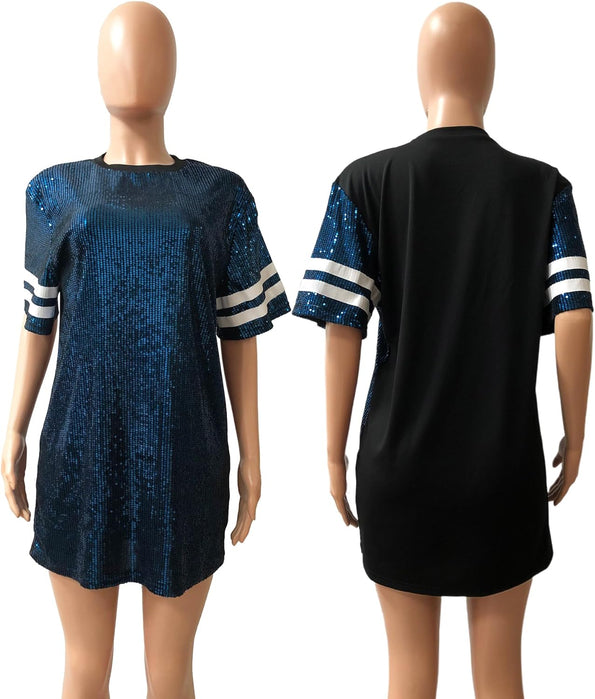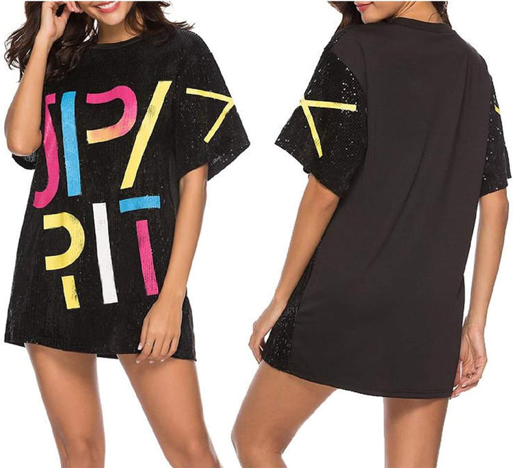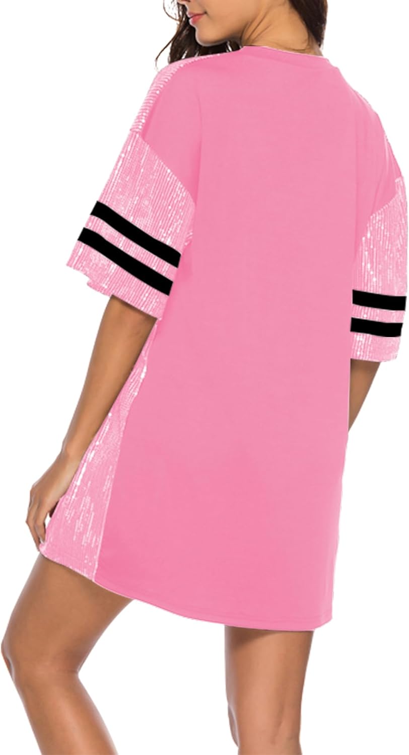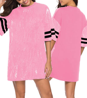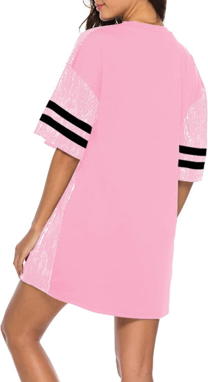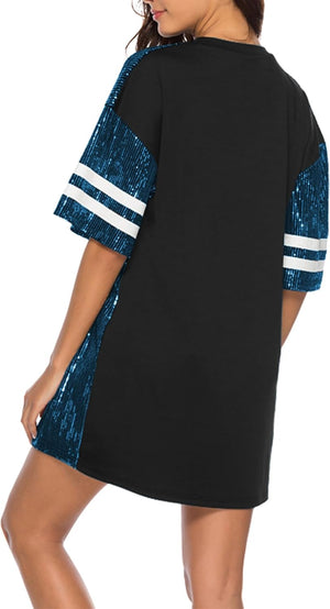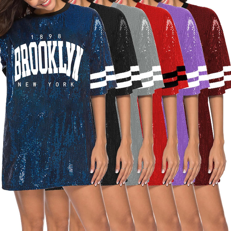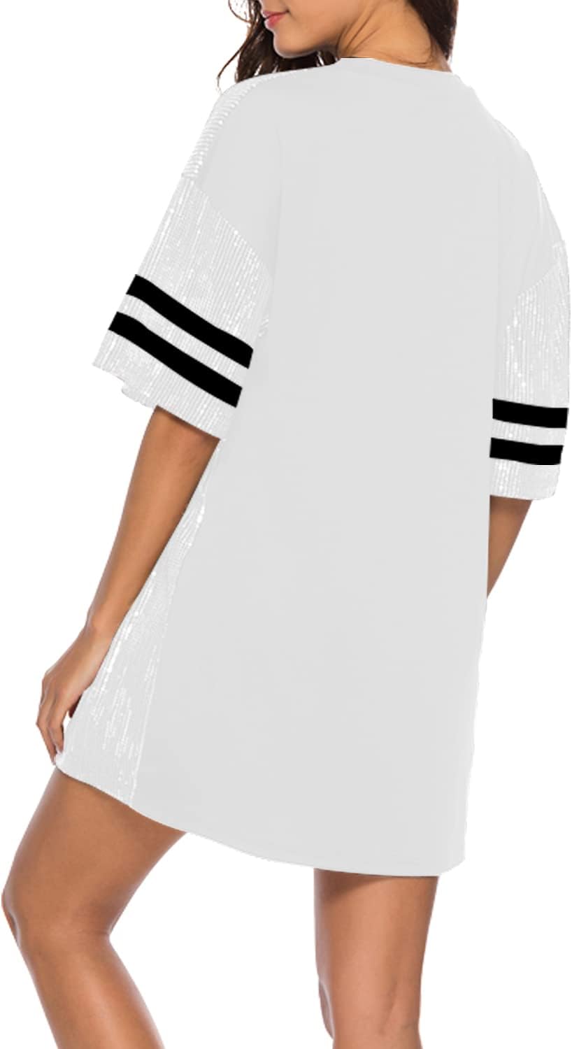 Sparkle sequin dress for women,fashionable tunic t shirt tops,loose style,clubwear short sleeve t shirt dress