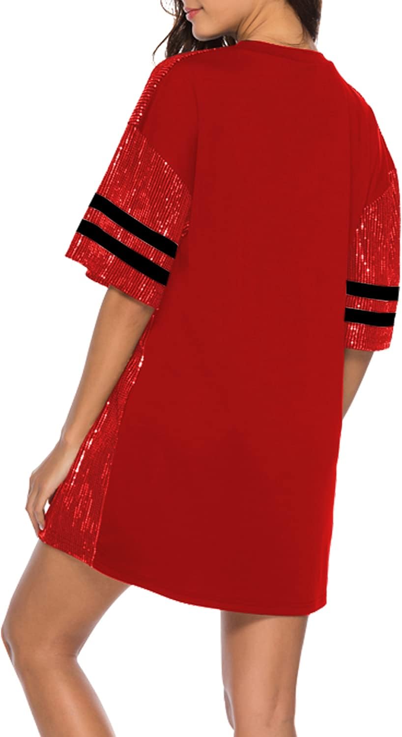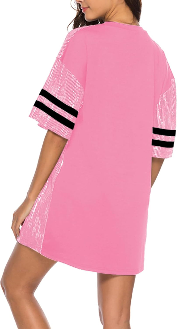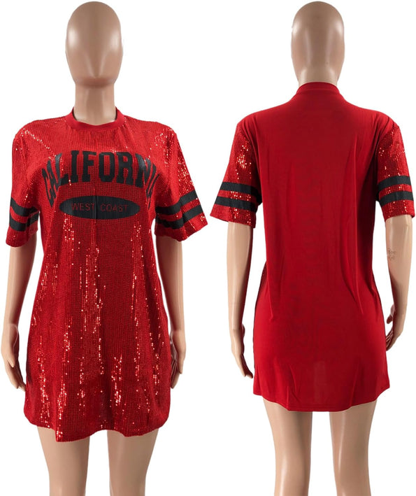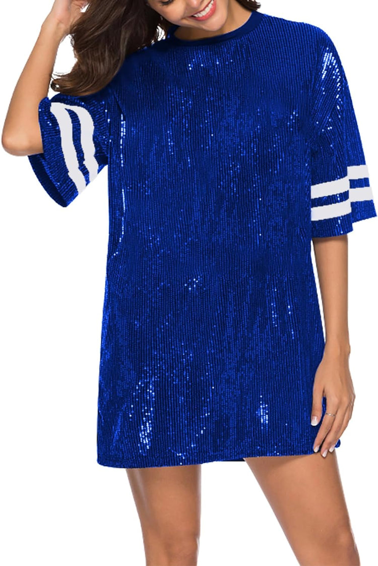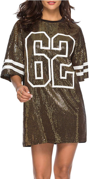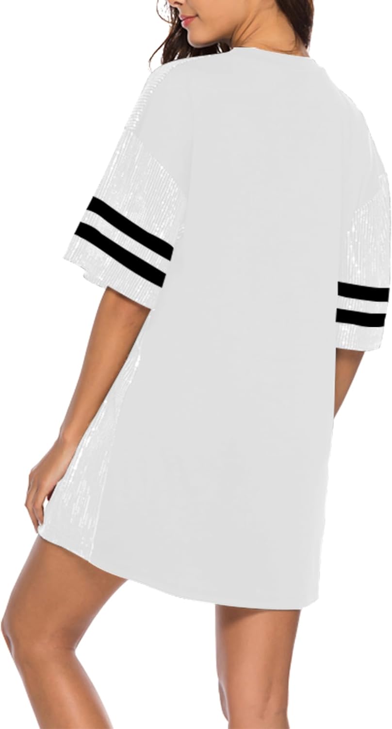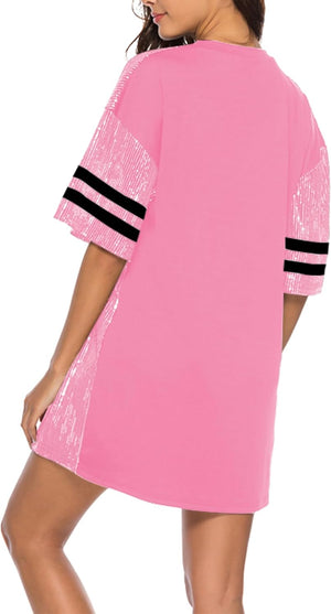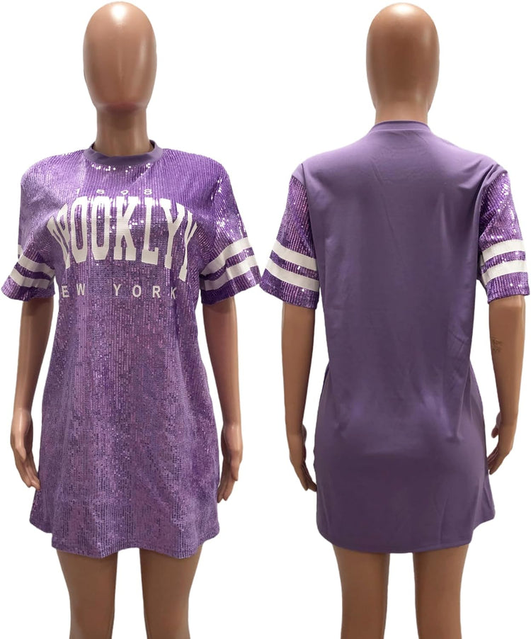 Sparkle sequin dress for women,fashionable tunic t shirt tops,loose style,clubwear short sleeve t shirt dress
