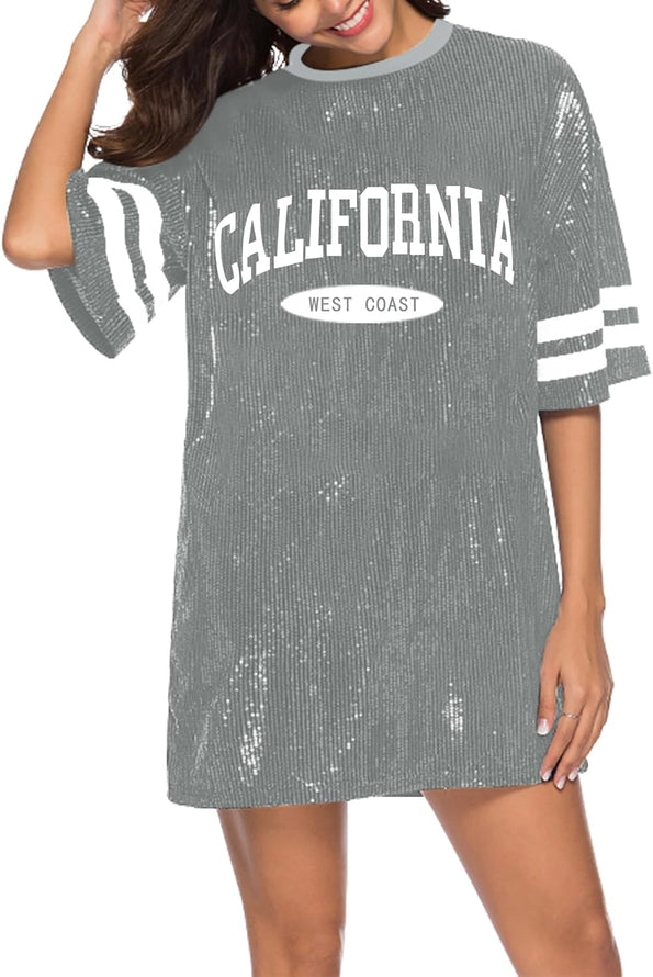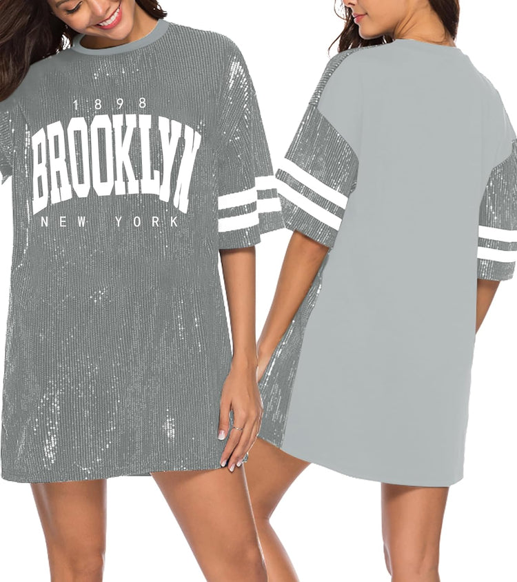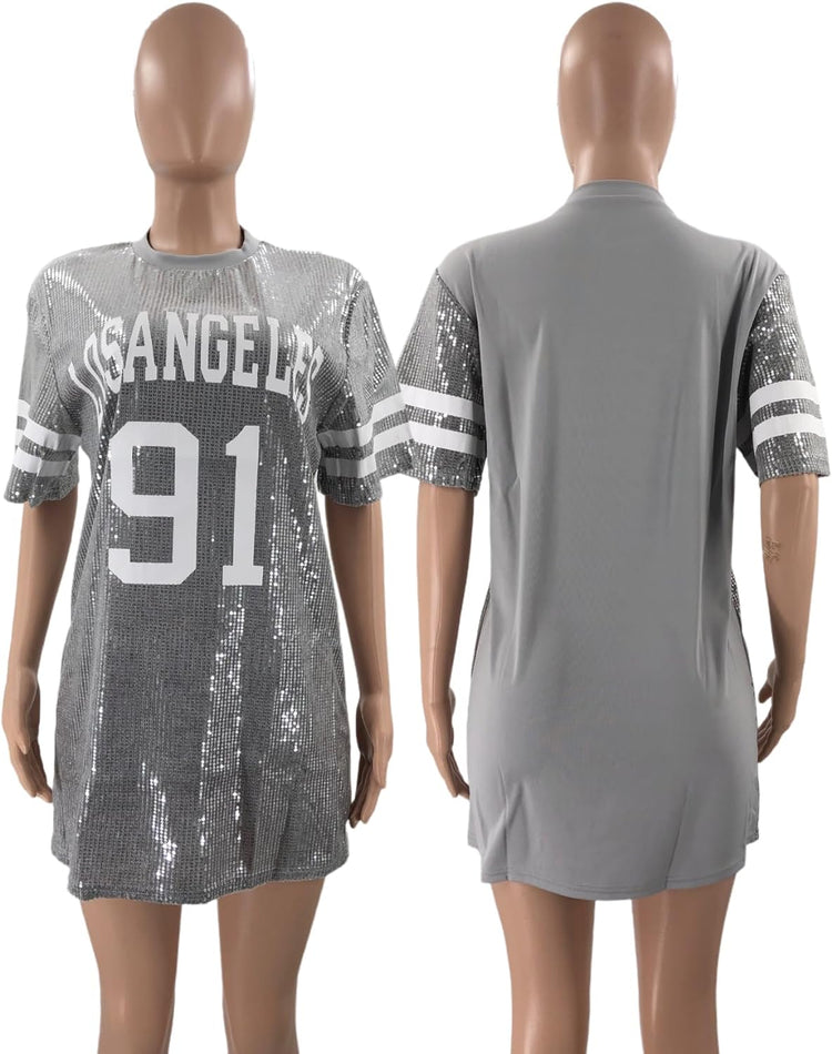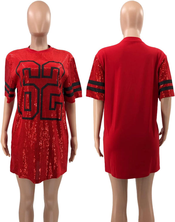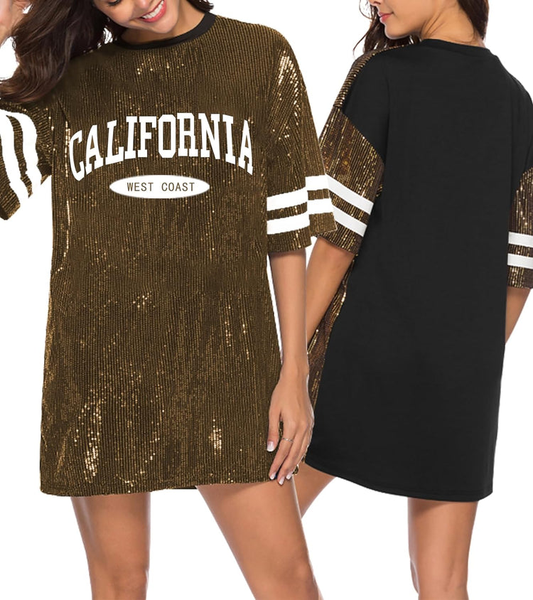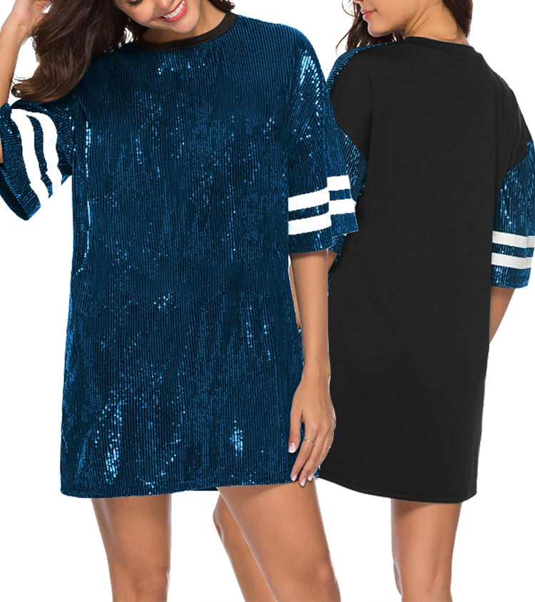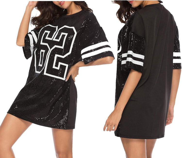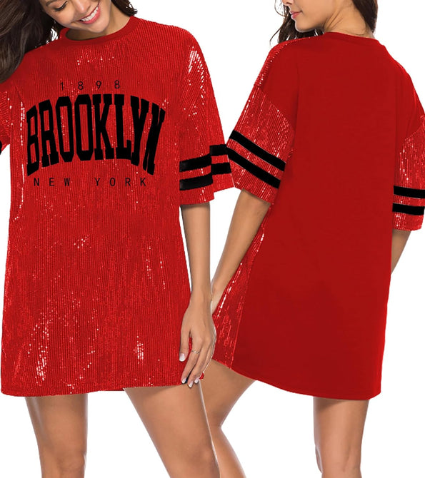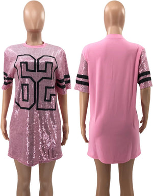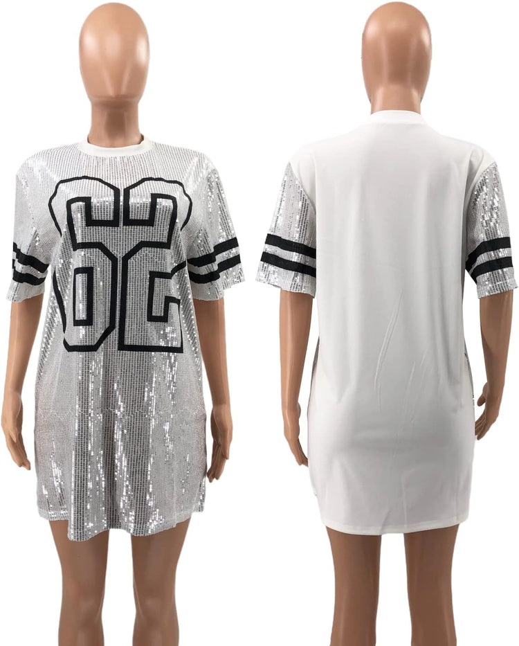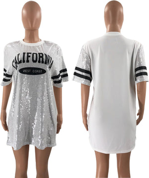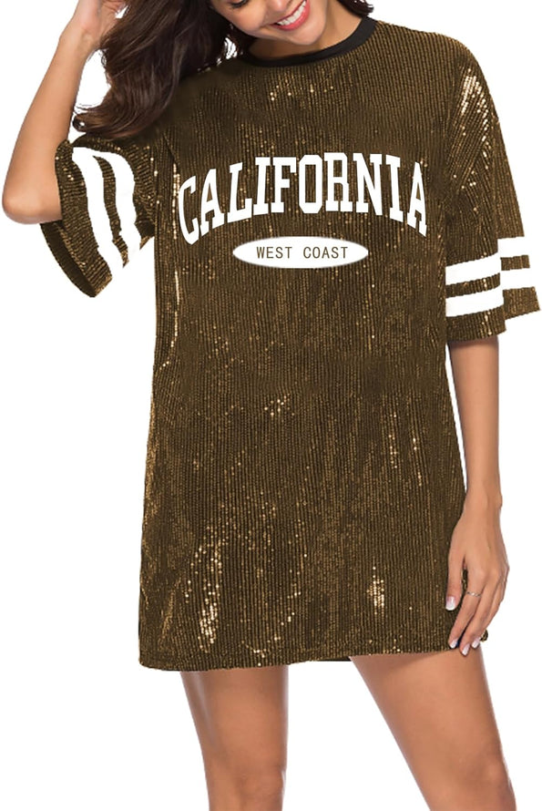 Sparkle sequin dress for women,fashionable tunic t shirt tops,loose style,clubwear short sleeve t shirt dress
