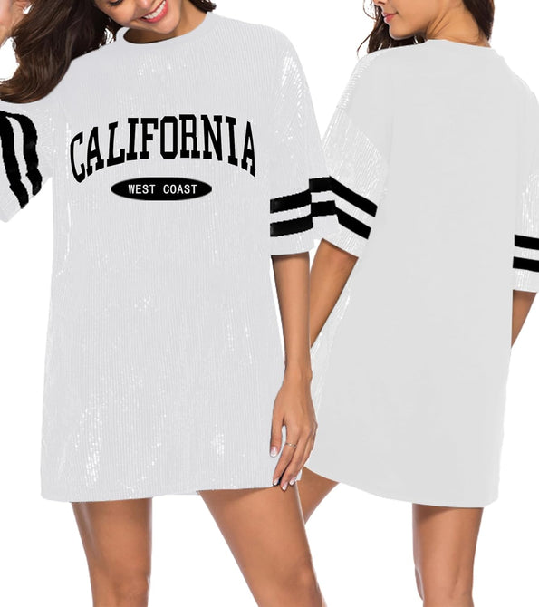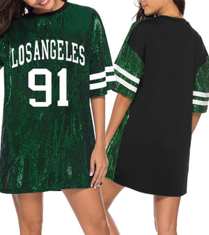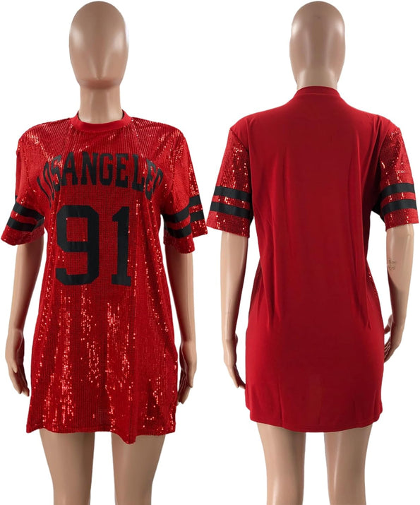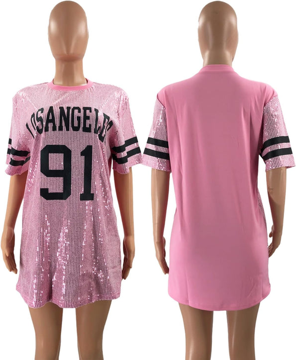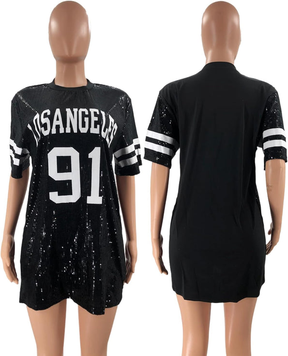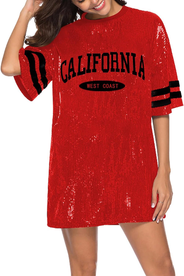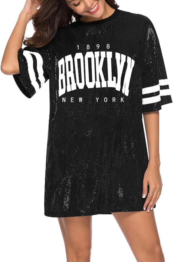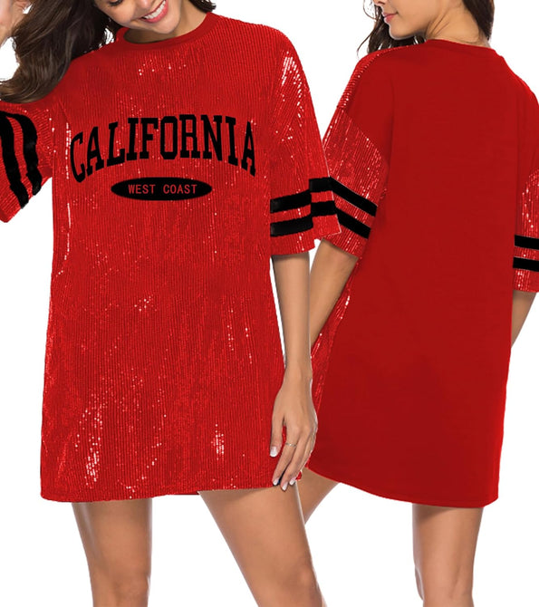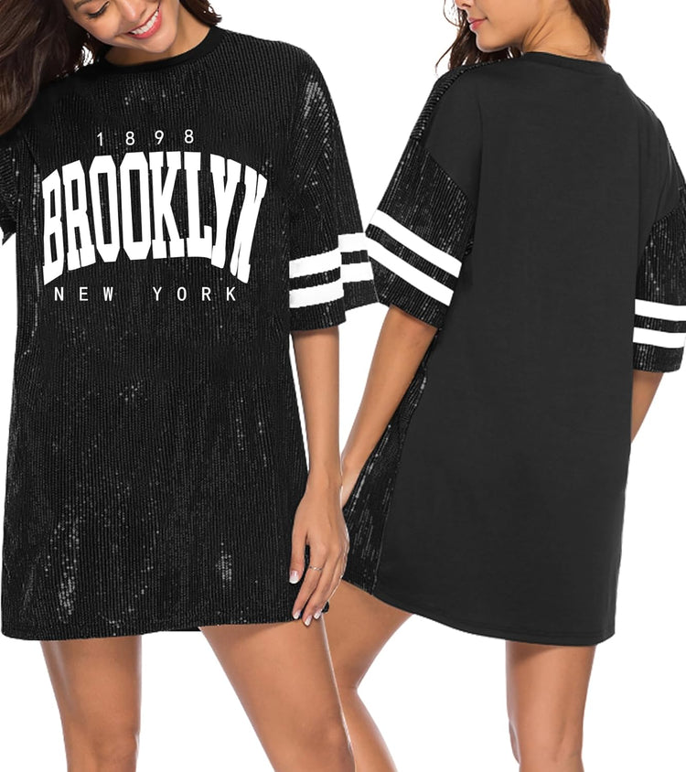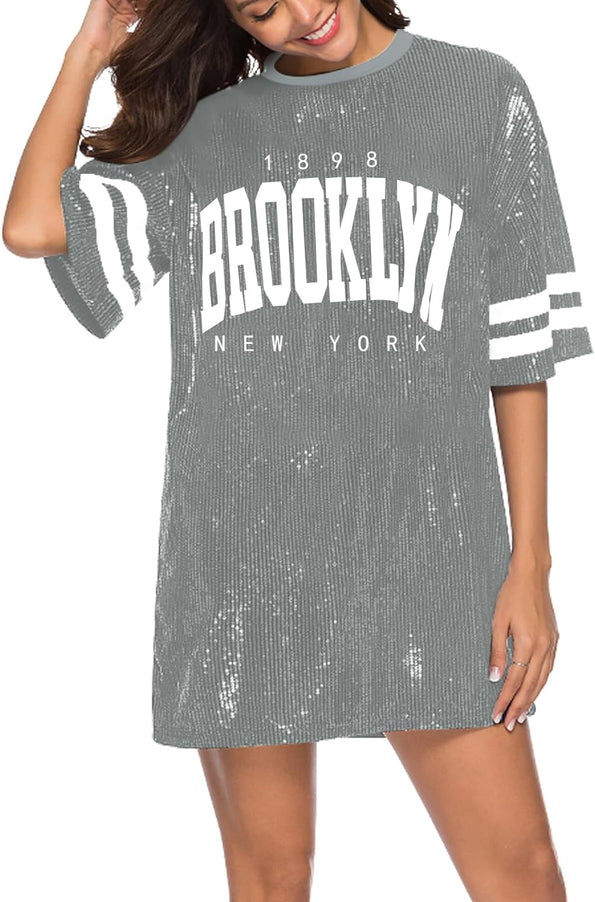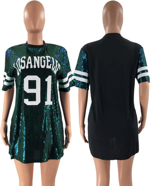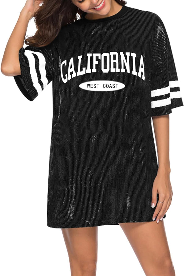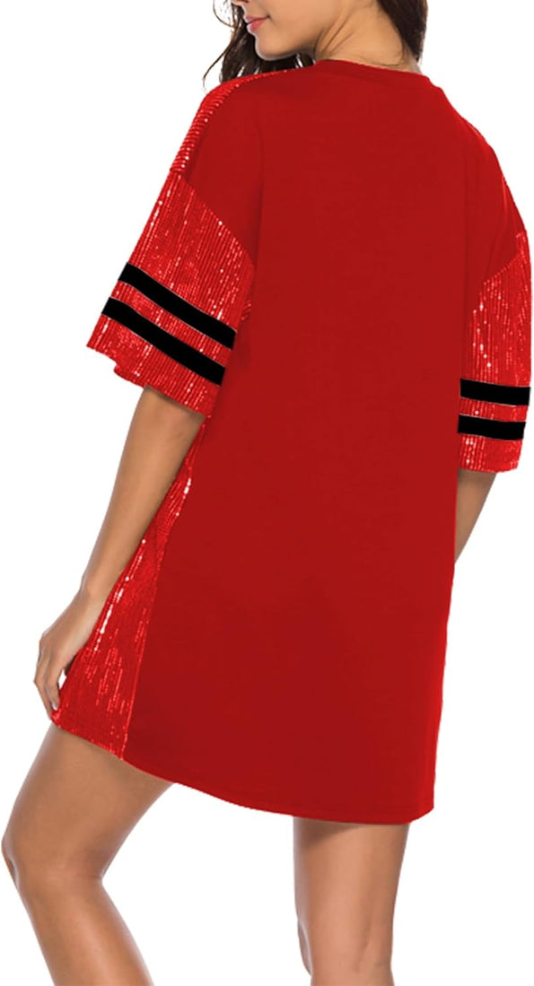 Sparkle sequin dress for women,fashionable tunic t shirt tops,loose style,clubwear short sleeve t shirt dress
